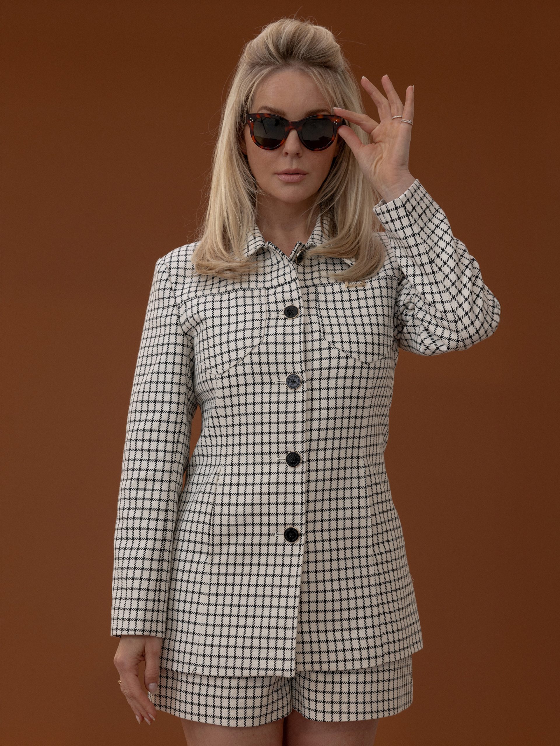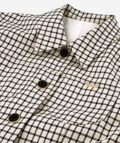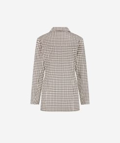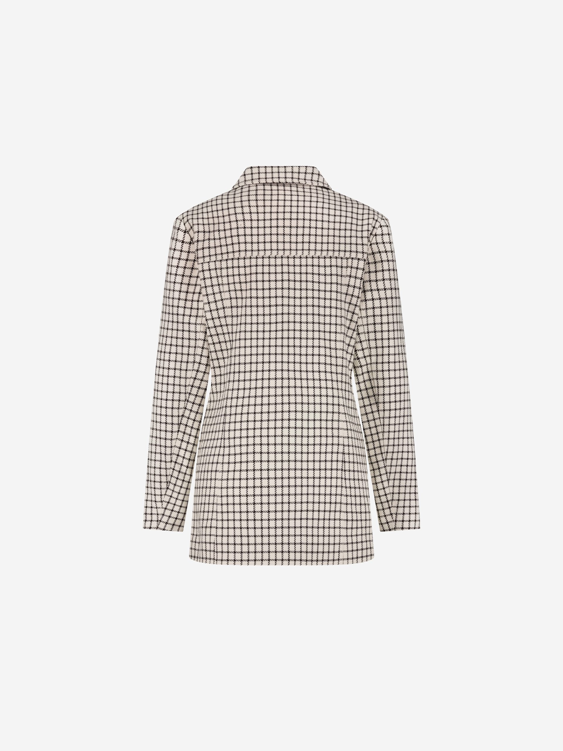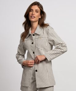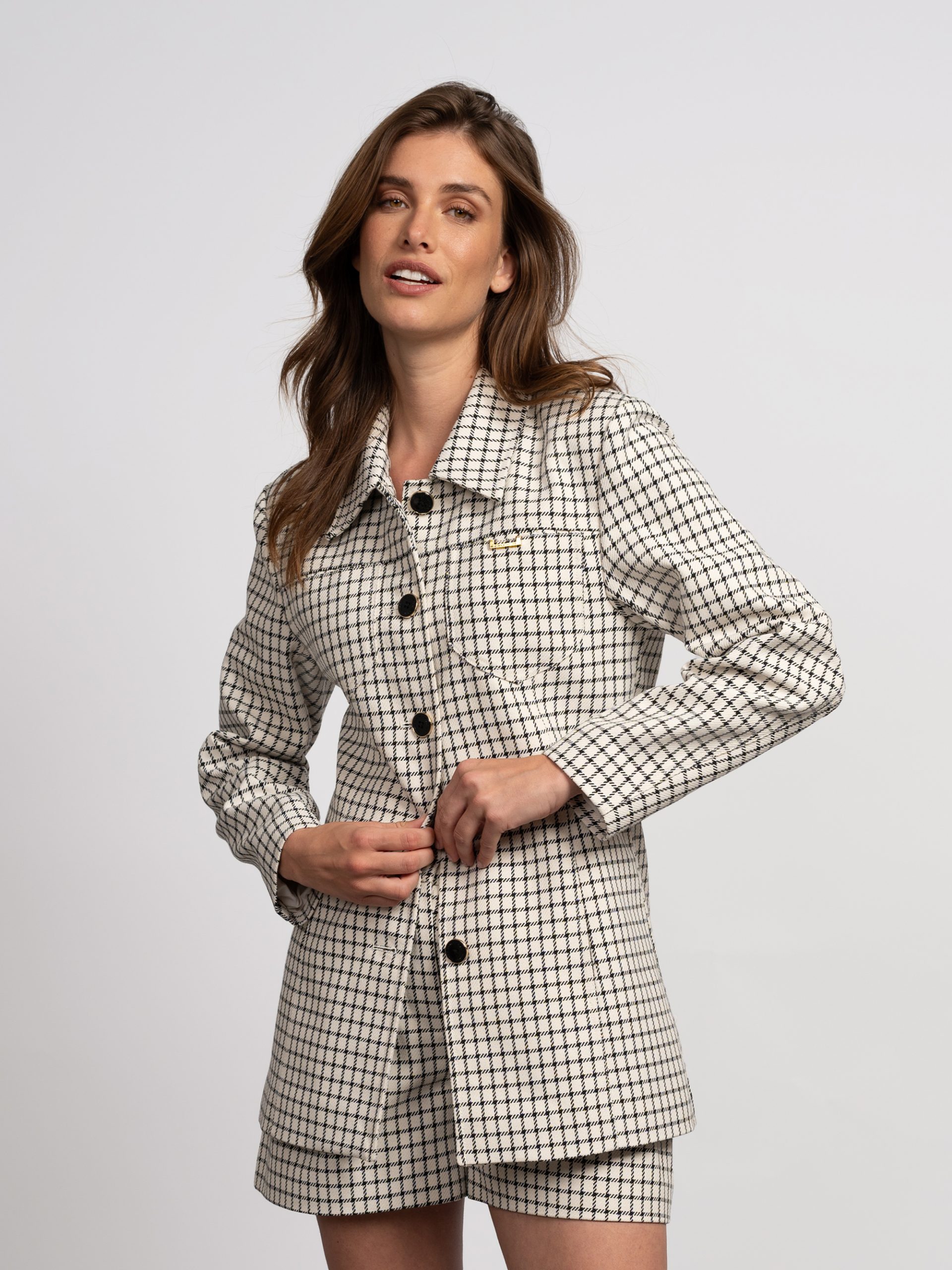 NIKKIE Women’s Long Checked Jacket | Soft White & Black