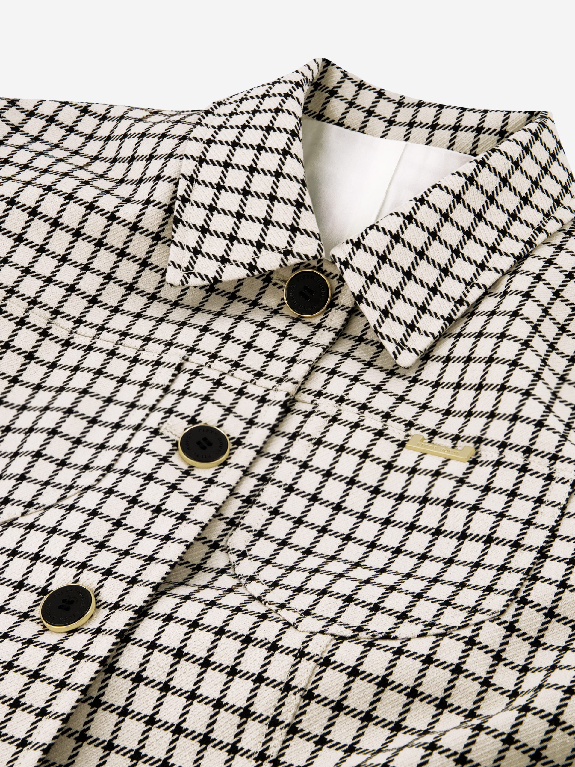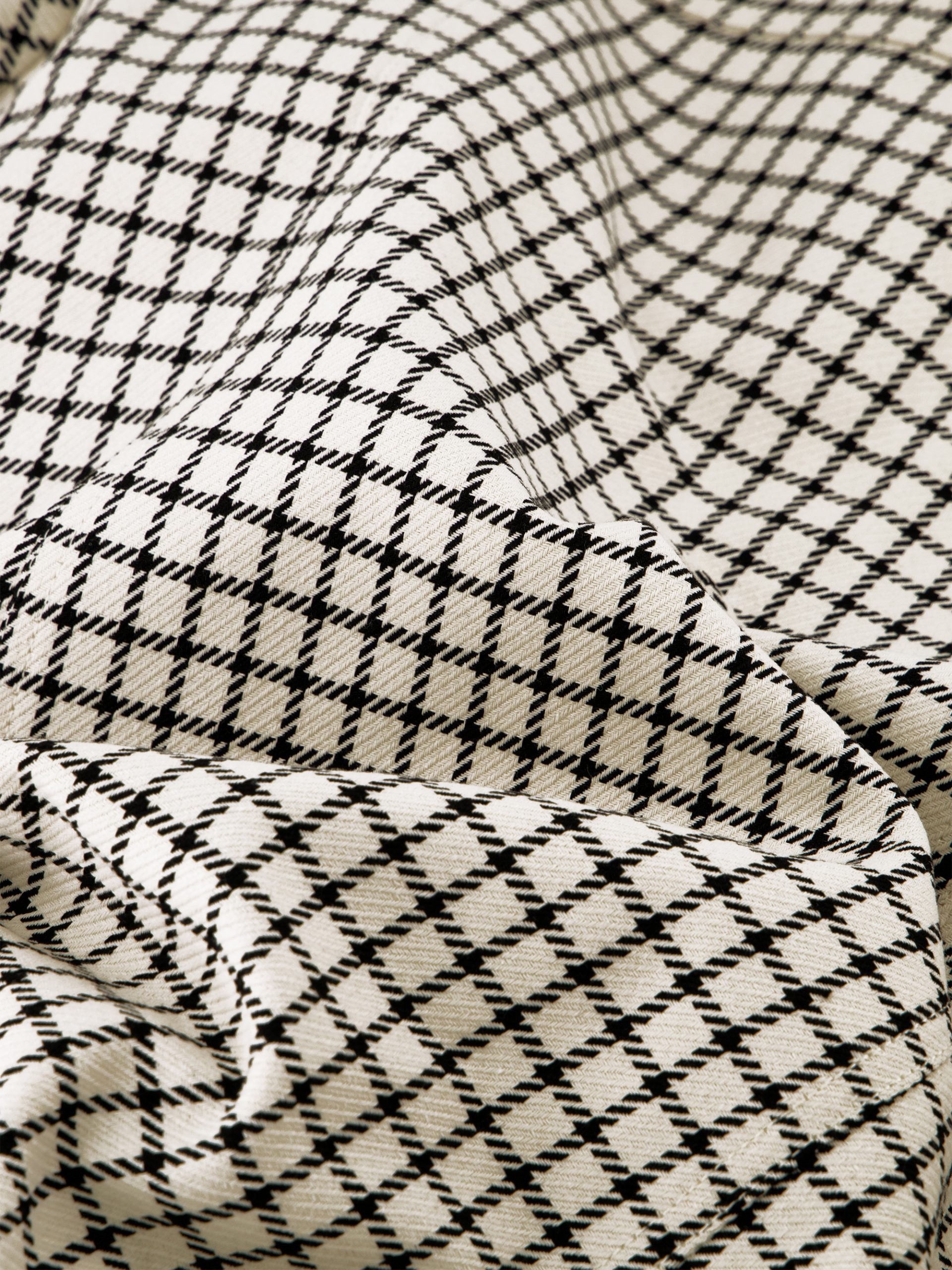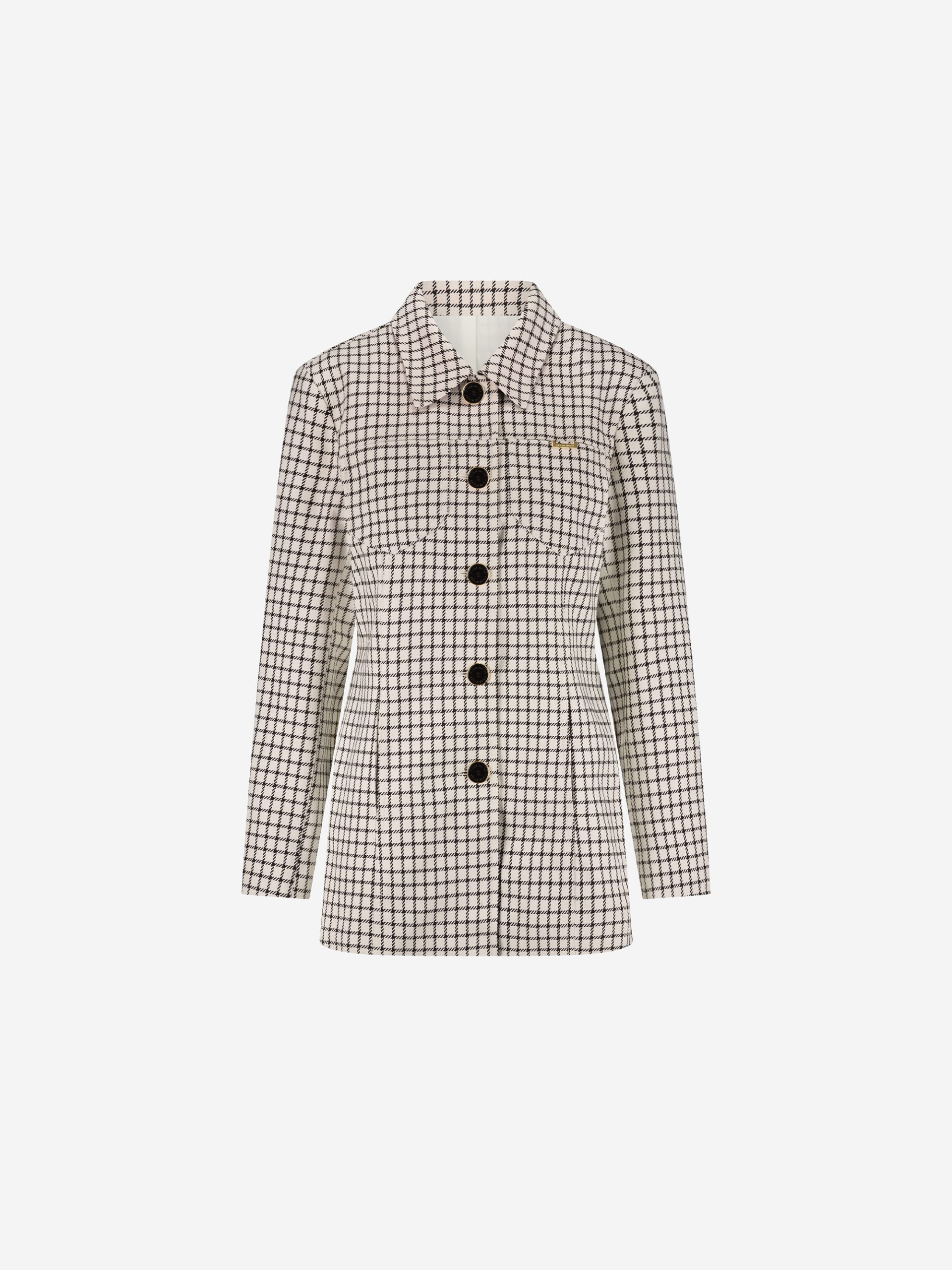 NIKKIE Women’s Long Checked Jacket | Soft White & Black