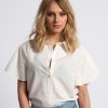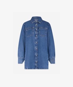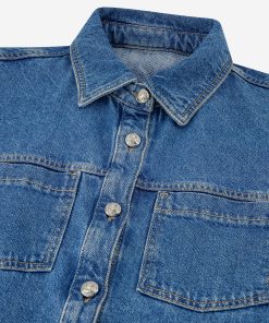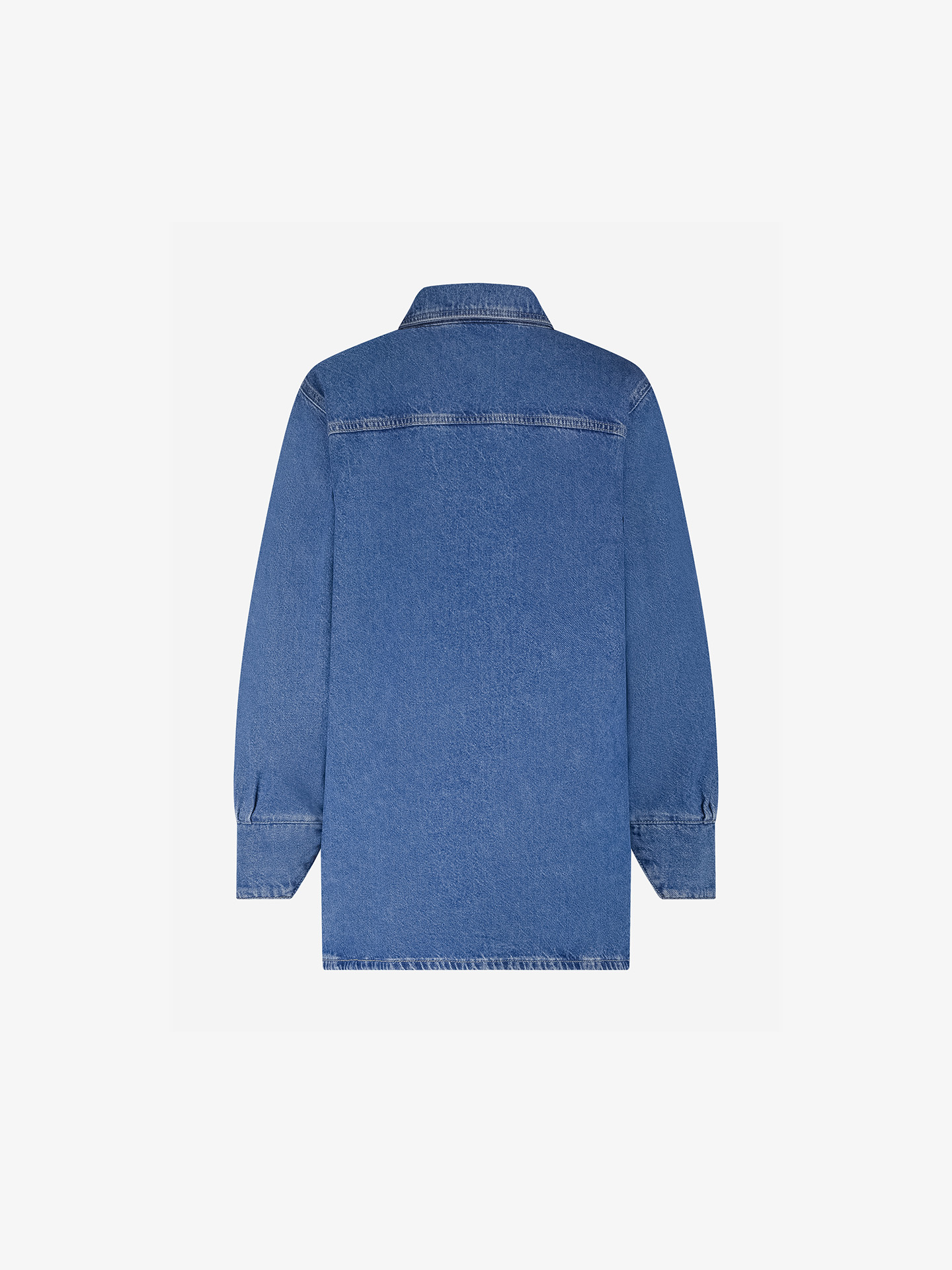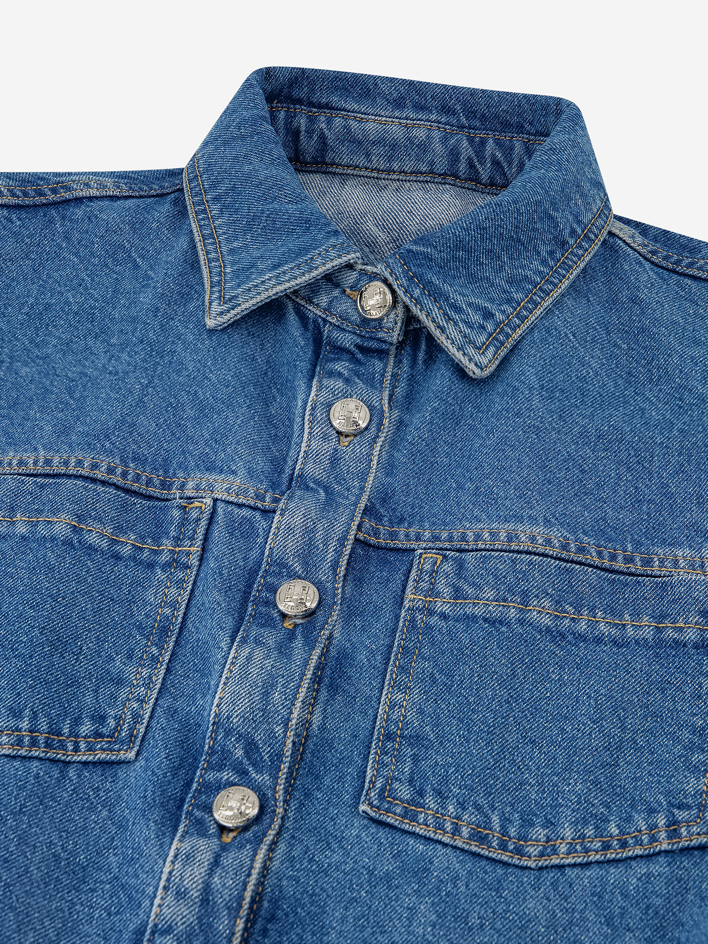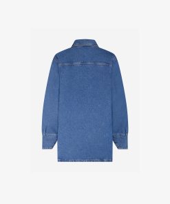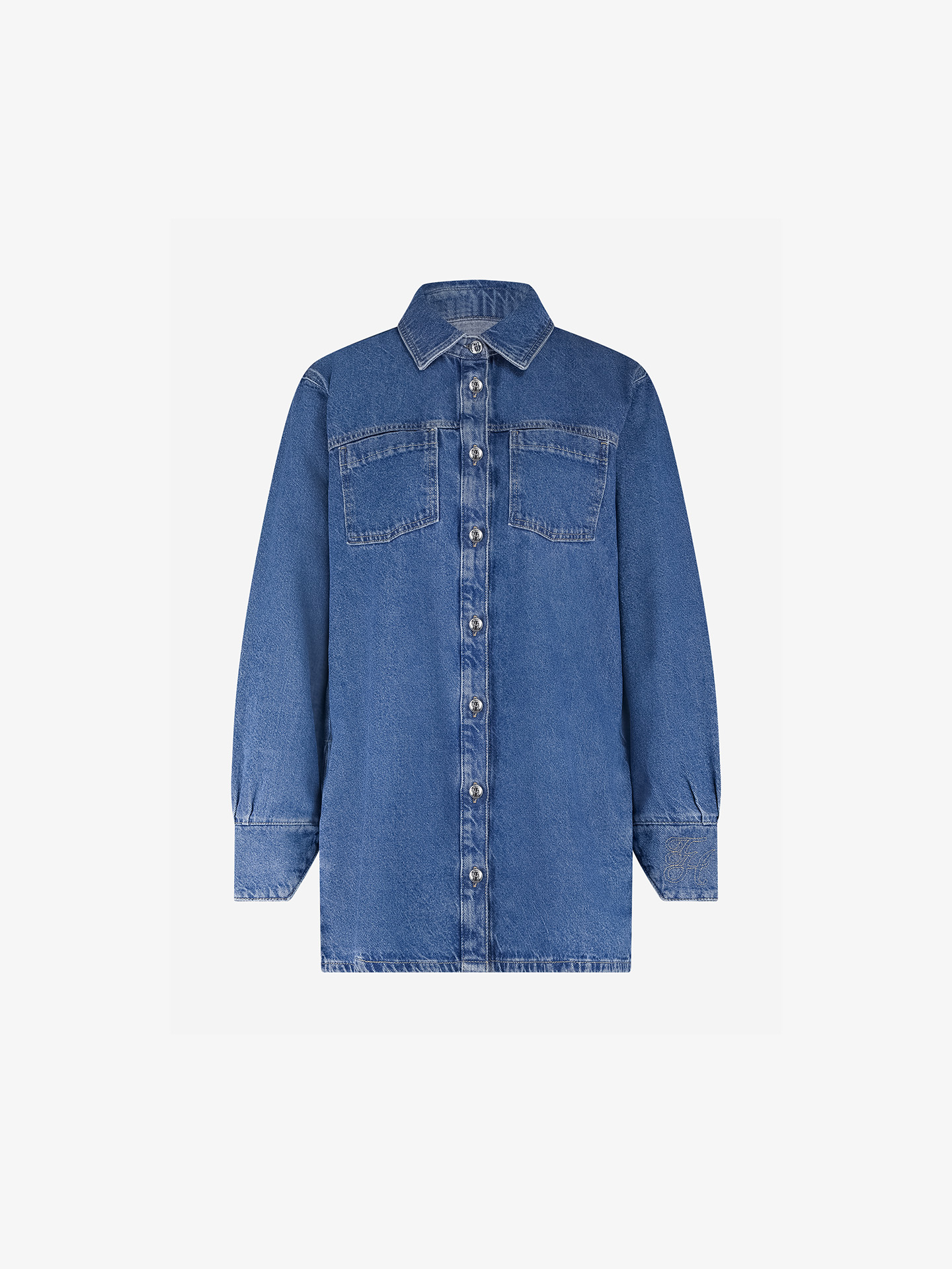 Product descriptionLong denim blouse with a collar, a full-length button placket, and a subtle logo detail on the sleeves. The blouse features chest pockets and a loose fit.