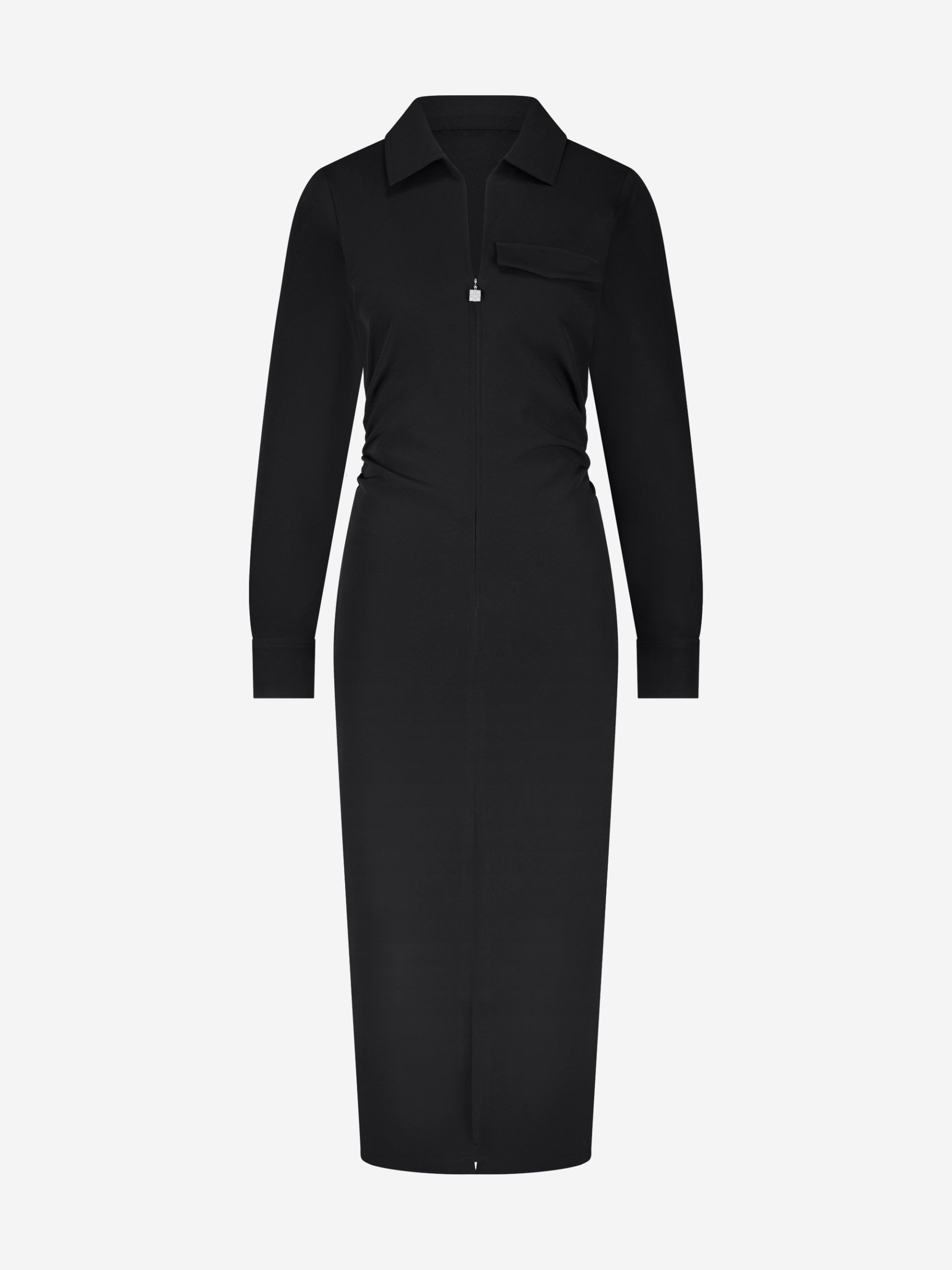 Product descriptionLong dress with a slit at the front, a V-neck and a zipper with FH detail. The dress has a regular fit, stretch and a chest pocket.