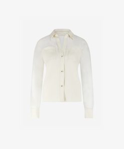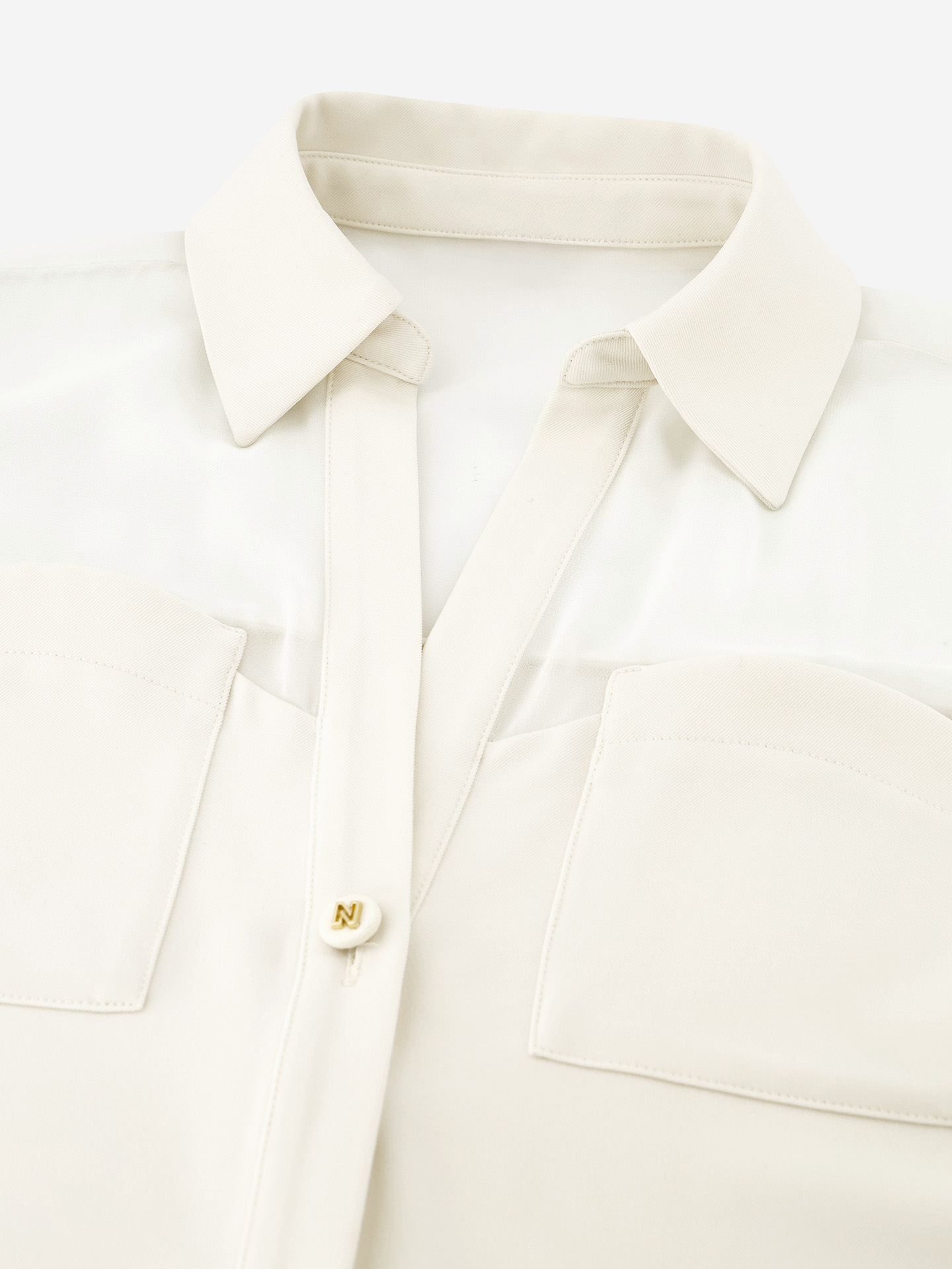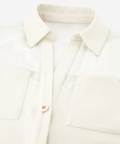 Product descriptionLoose-fitting blouse with a deep V-neck, button closure, and chest pockets.