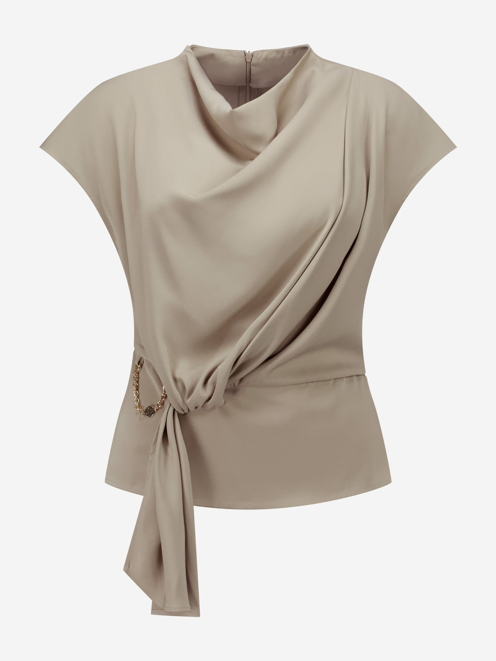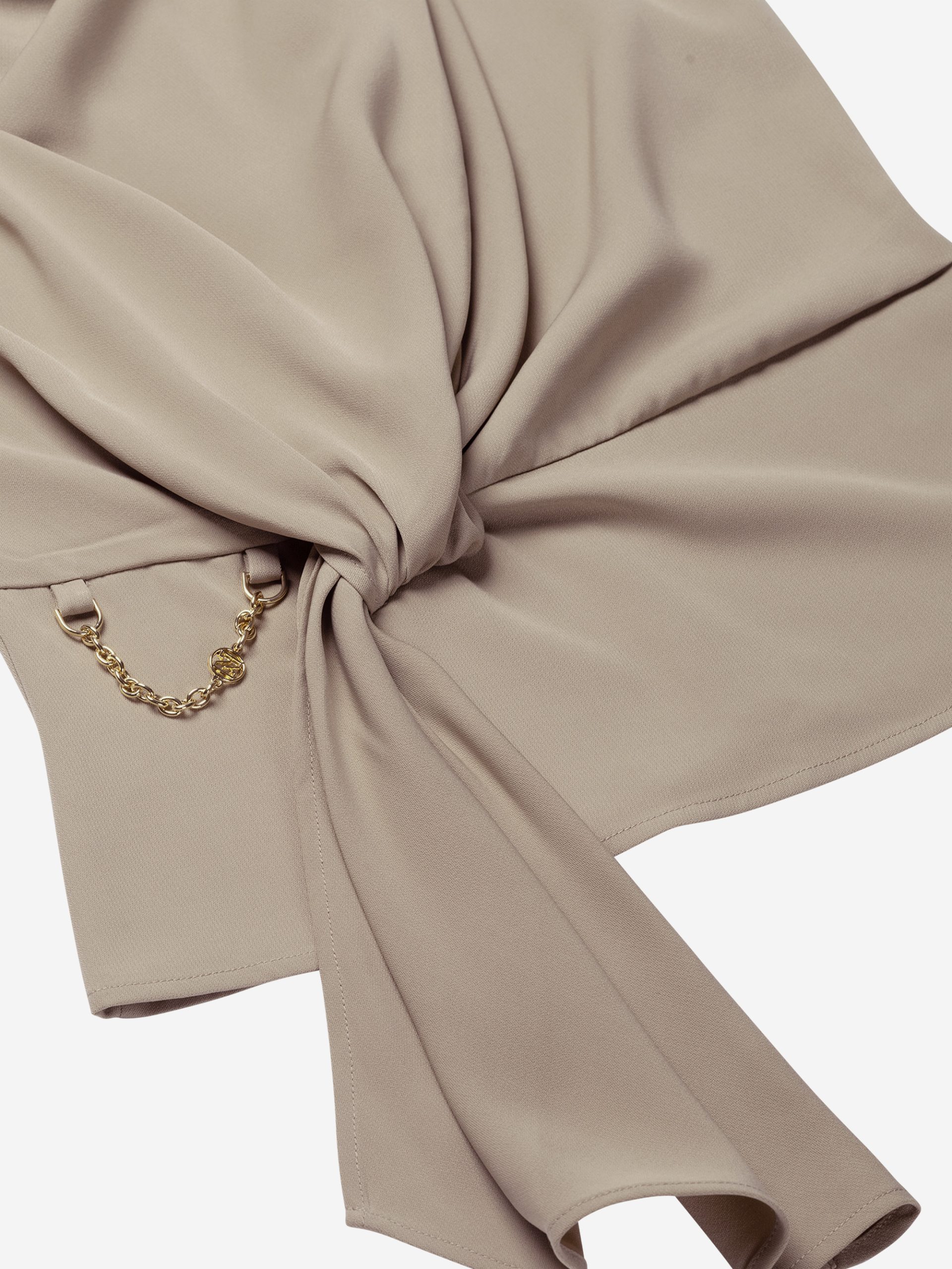 Product descriptionLoose-fitting top with a twisted knot detail and a subtle chain accent. The top is made of a soft fabric, has a high neck and contains no stretch.