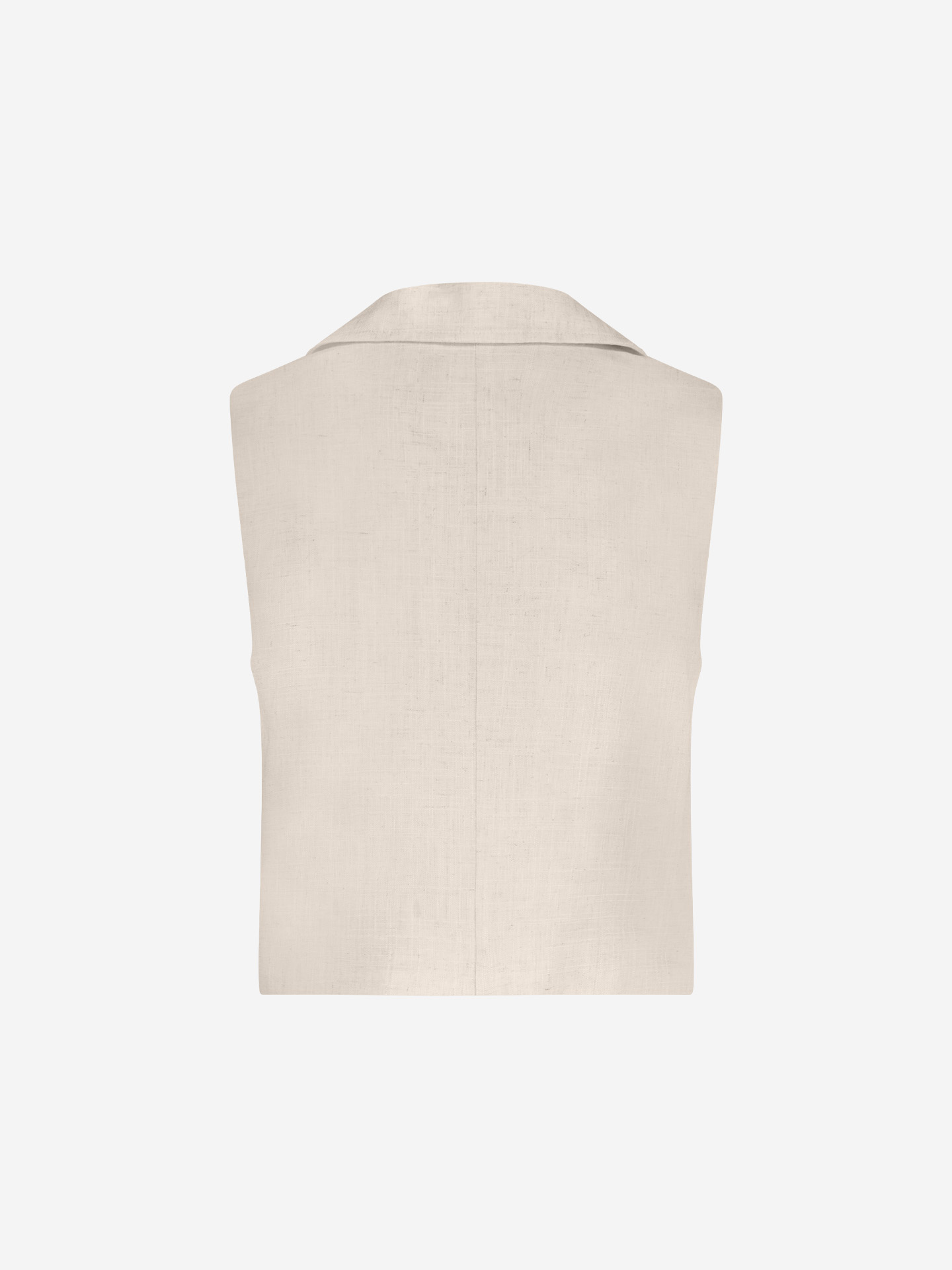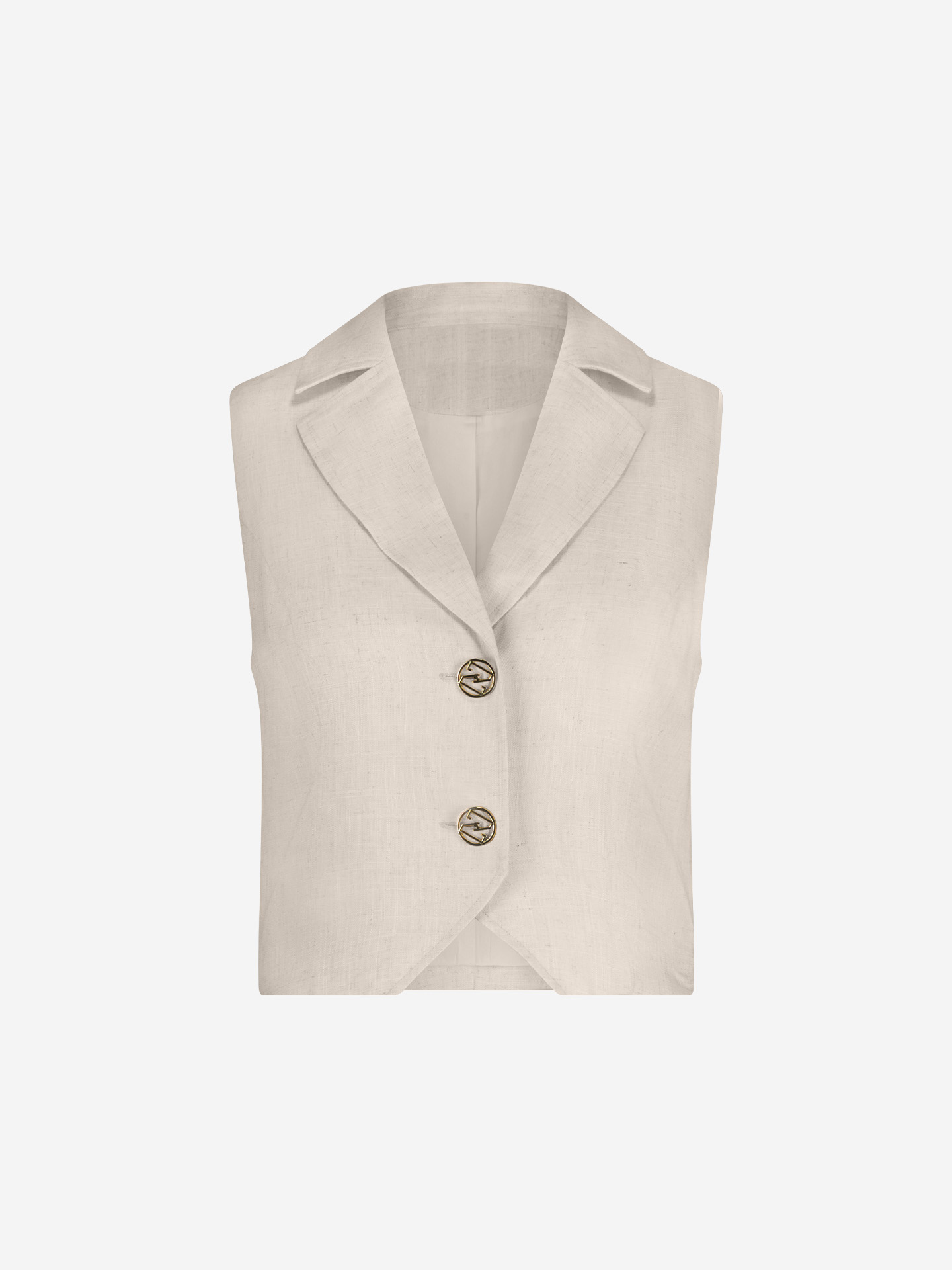 Product descriptionCropped waistcoat with a mixed texture, V-neck, classic collar and a closure with decorative N-buttons.