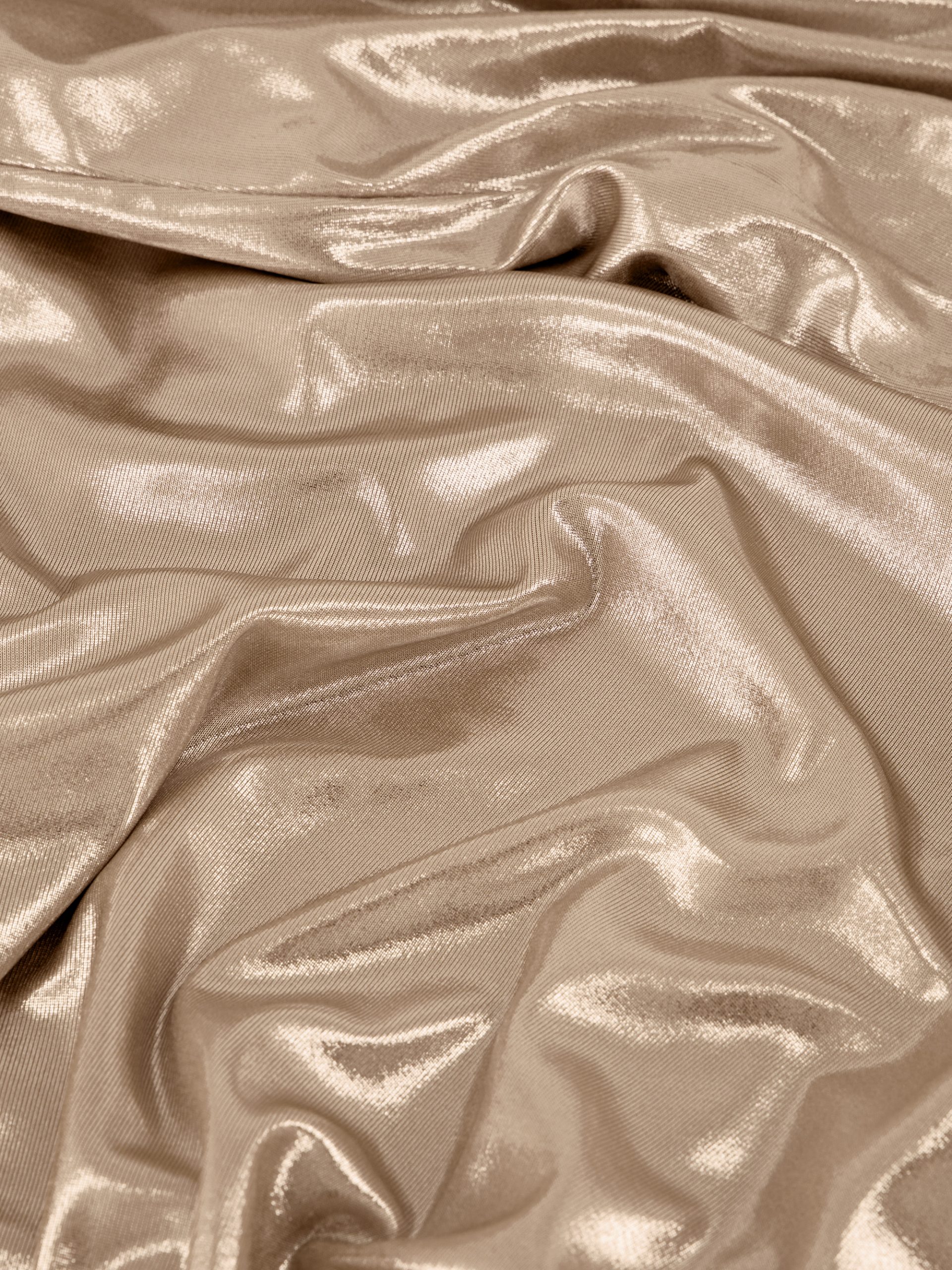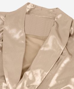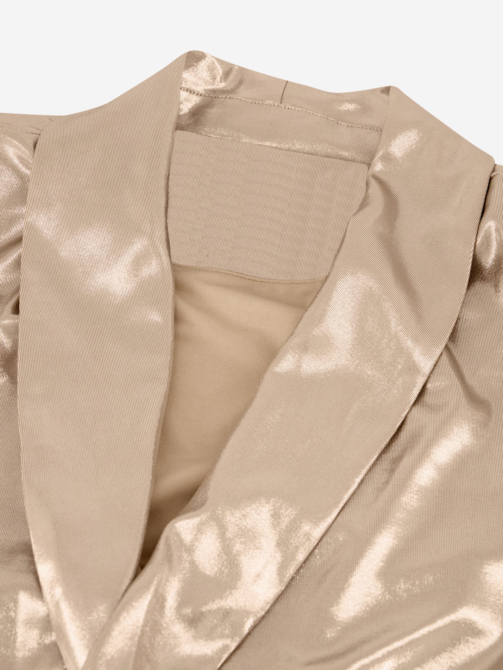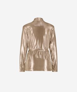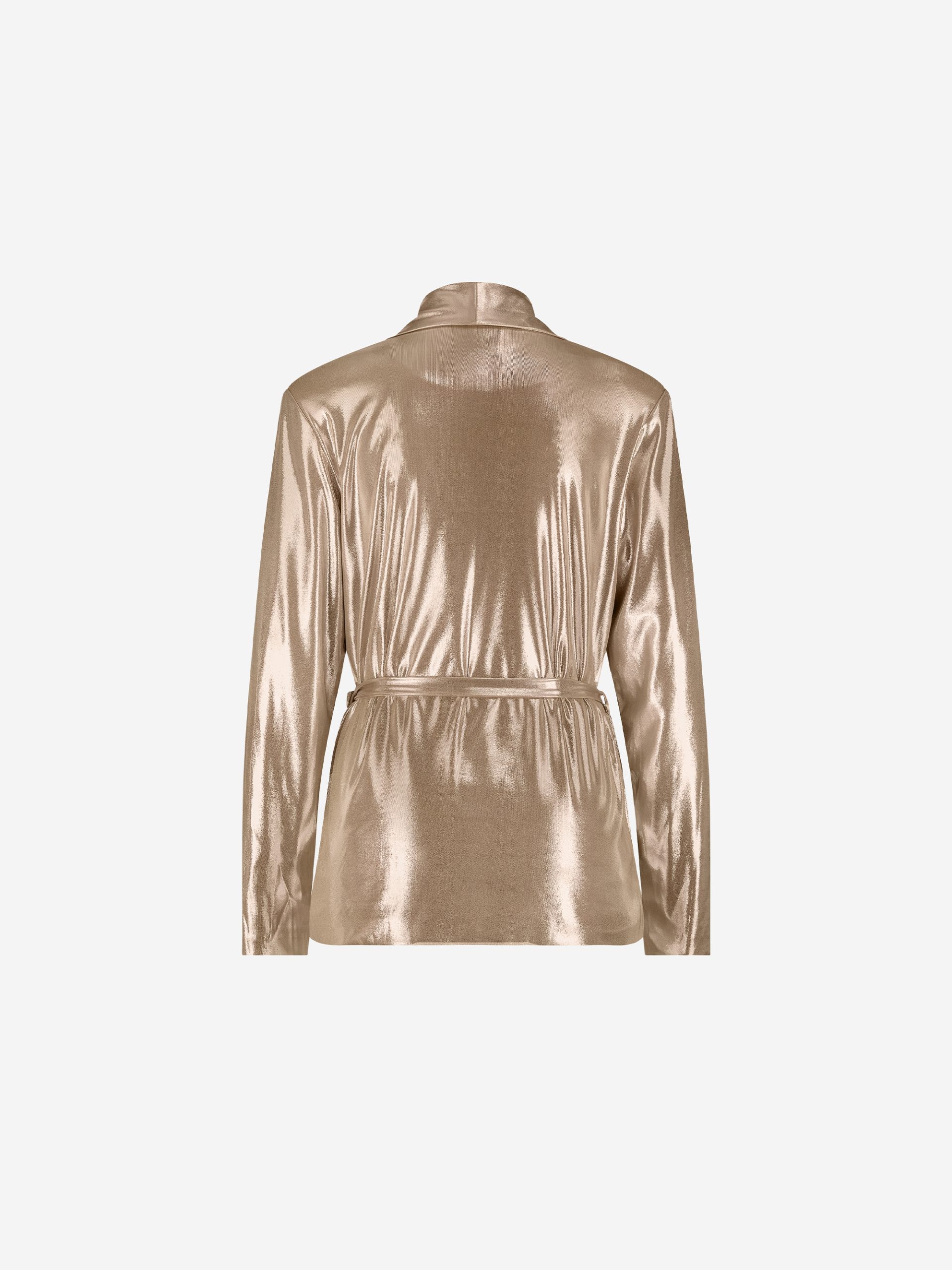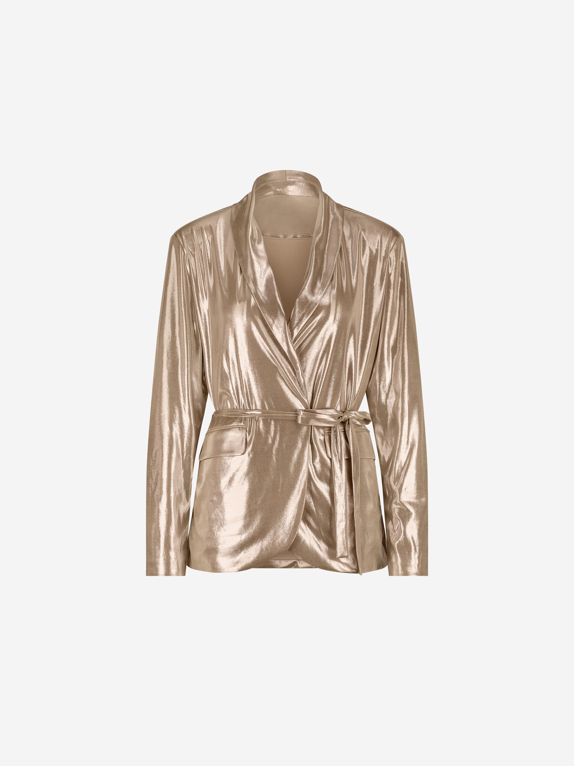 Metallic look blazer with a tie belt, a lapel collar and a loose fit.