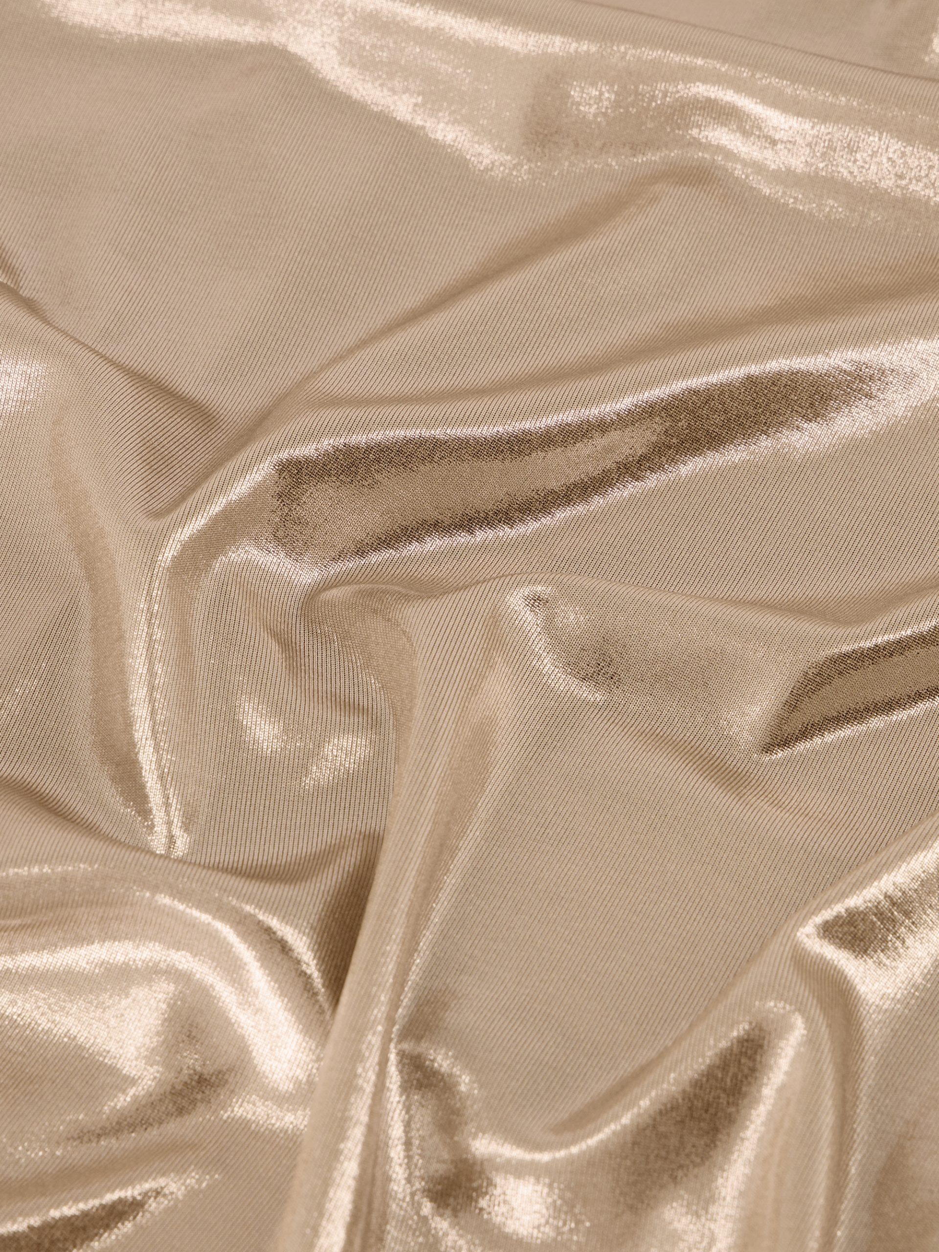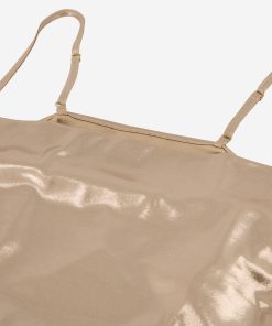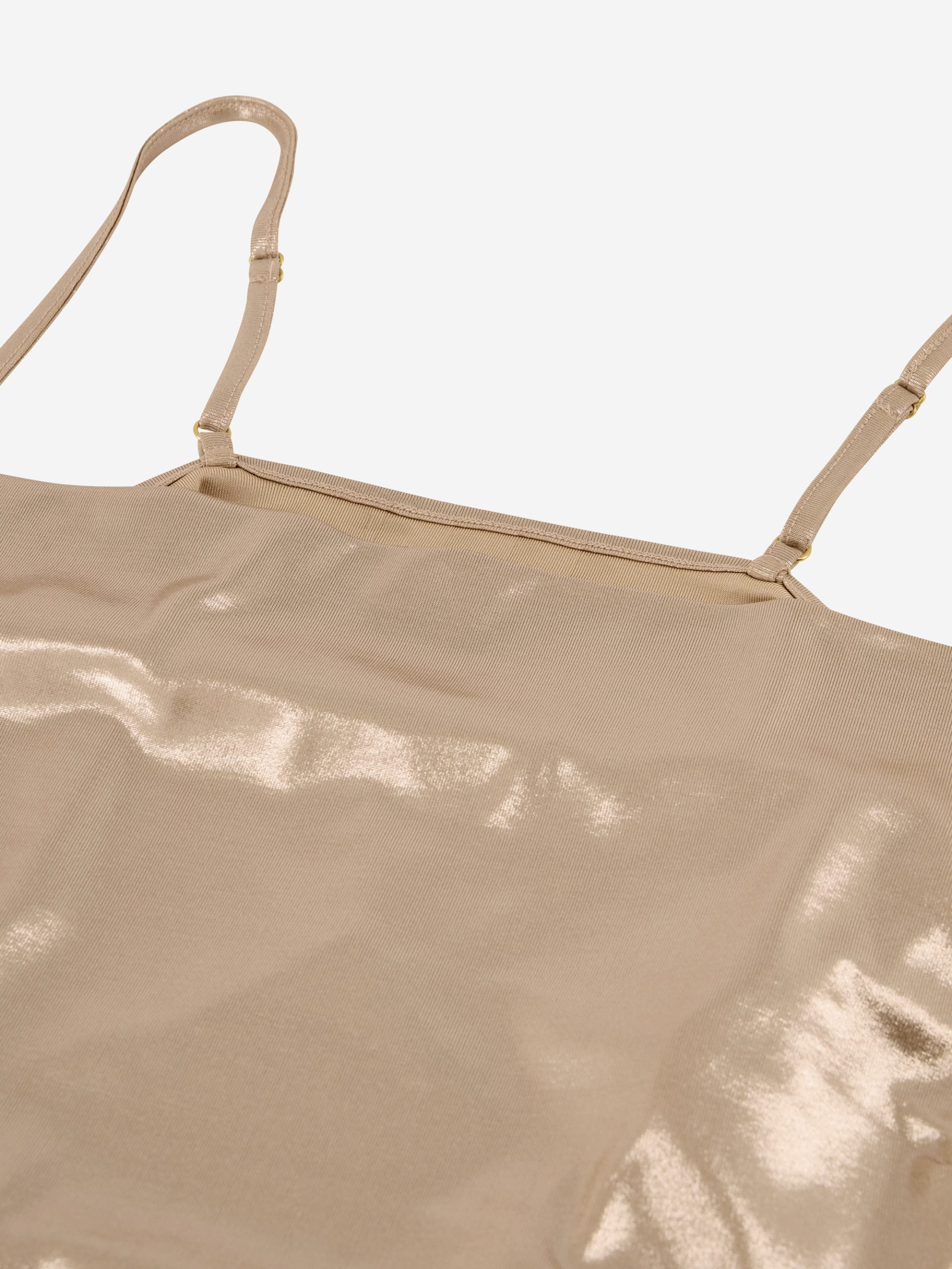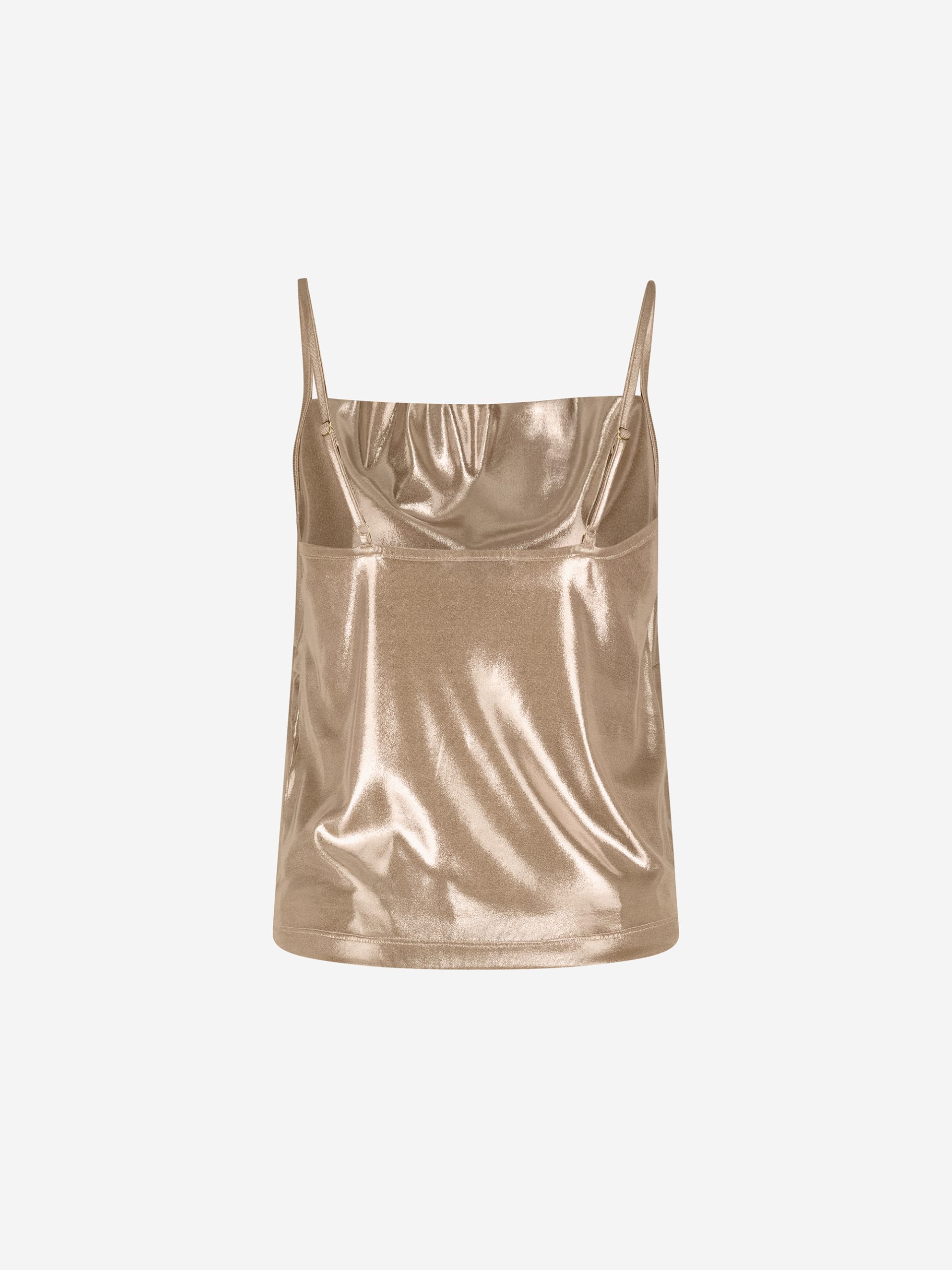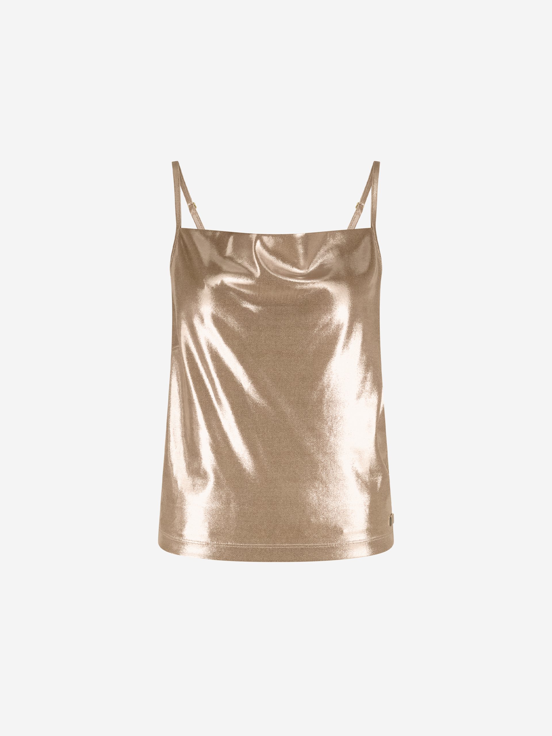 Metallic look top with adjustable shoulder straps, a waterfall neck and a regular fit.