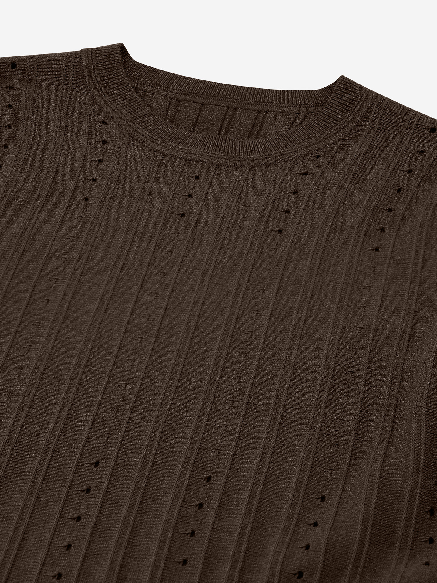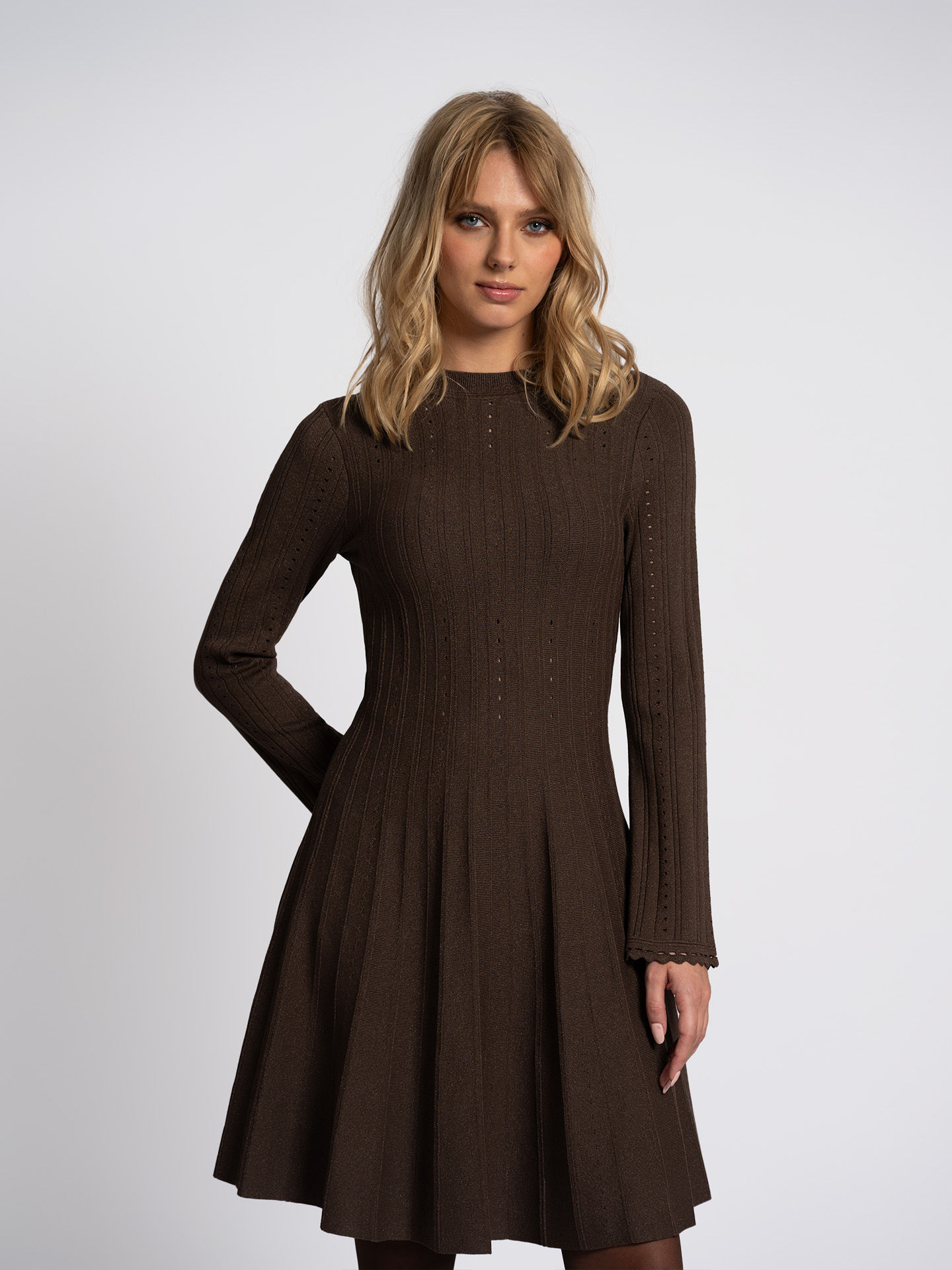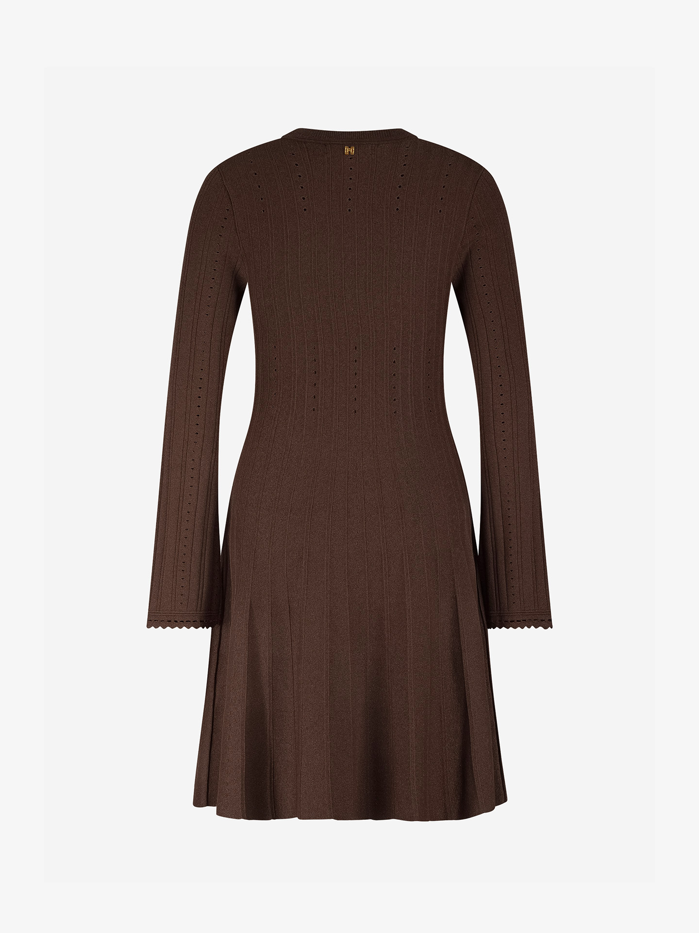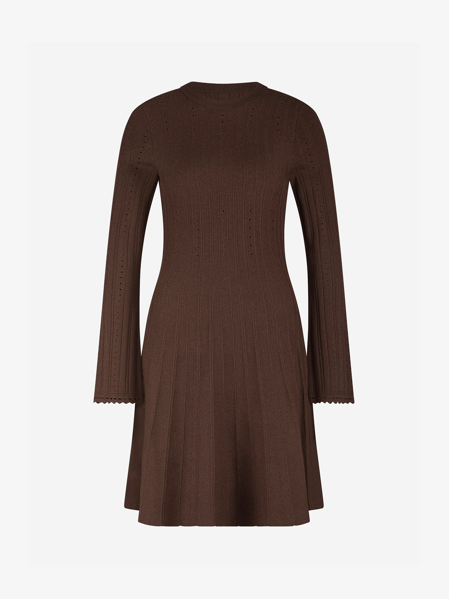 Product descriptionAjour knit A-line dress with a round neckline, a flowing sleeve trim, and a fitted waist.