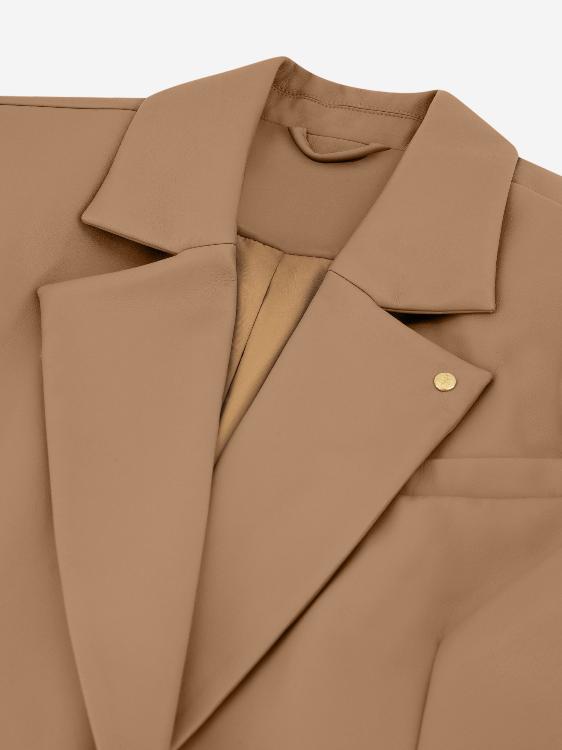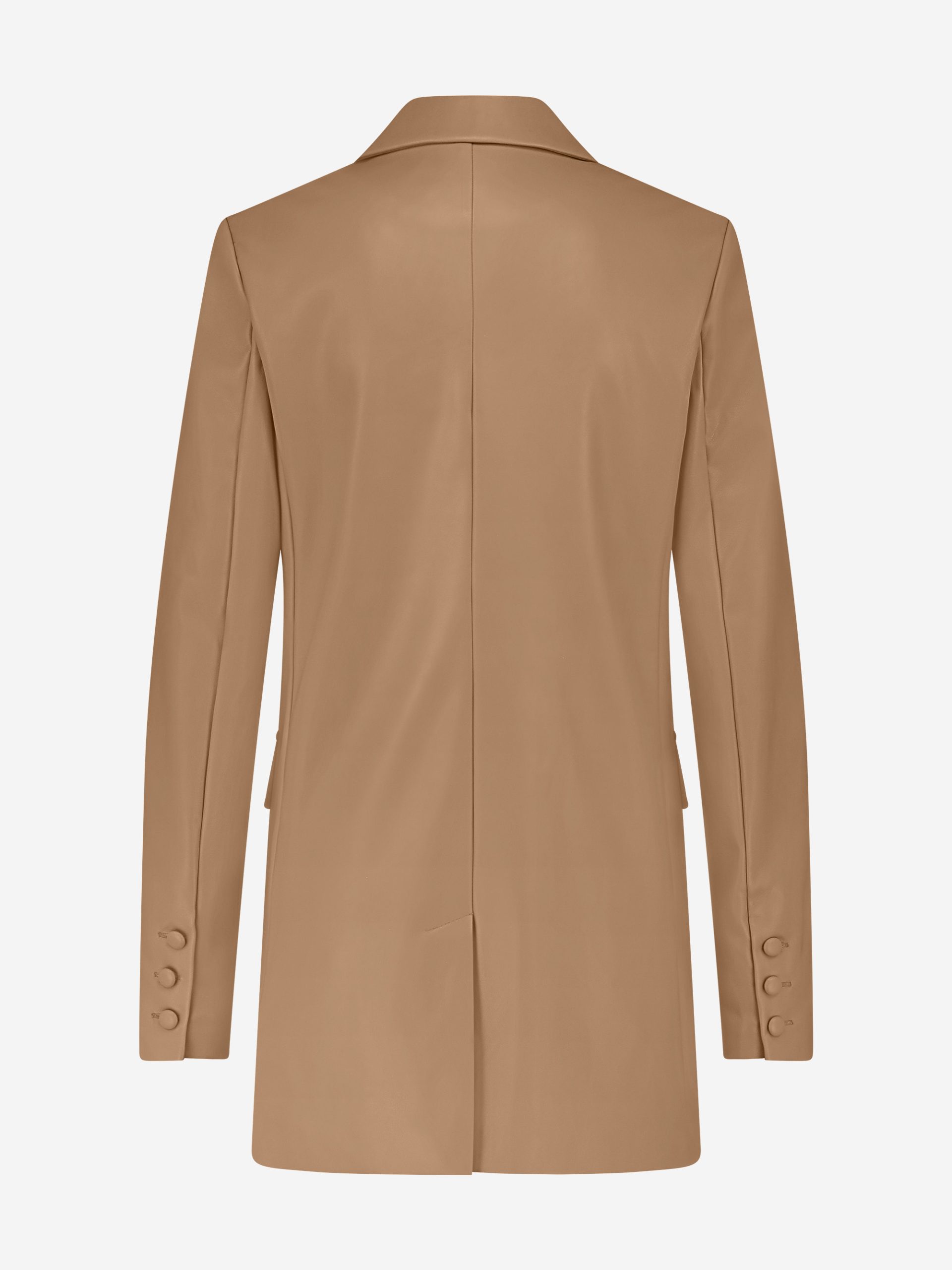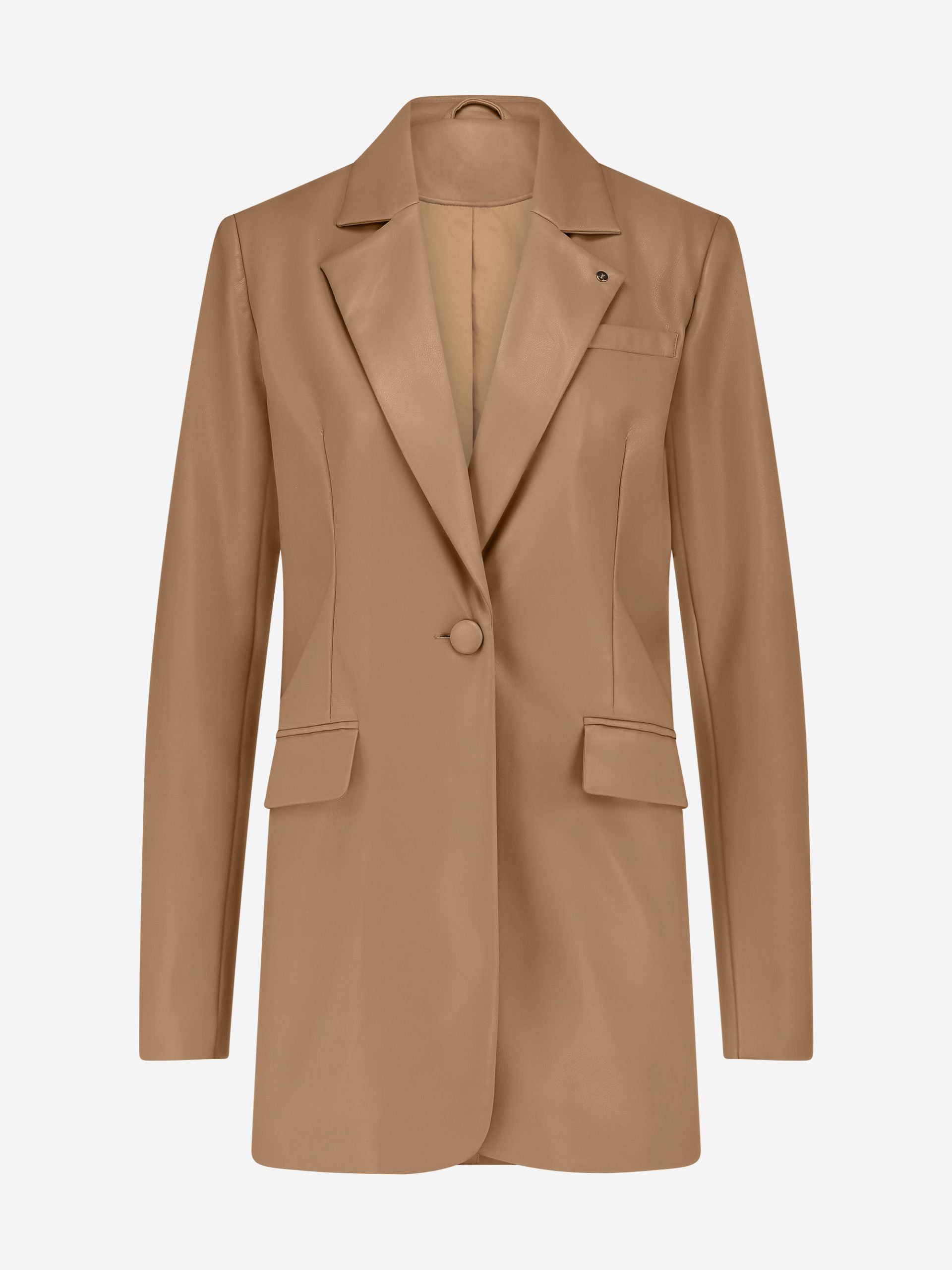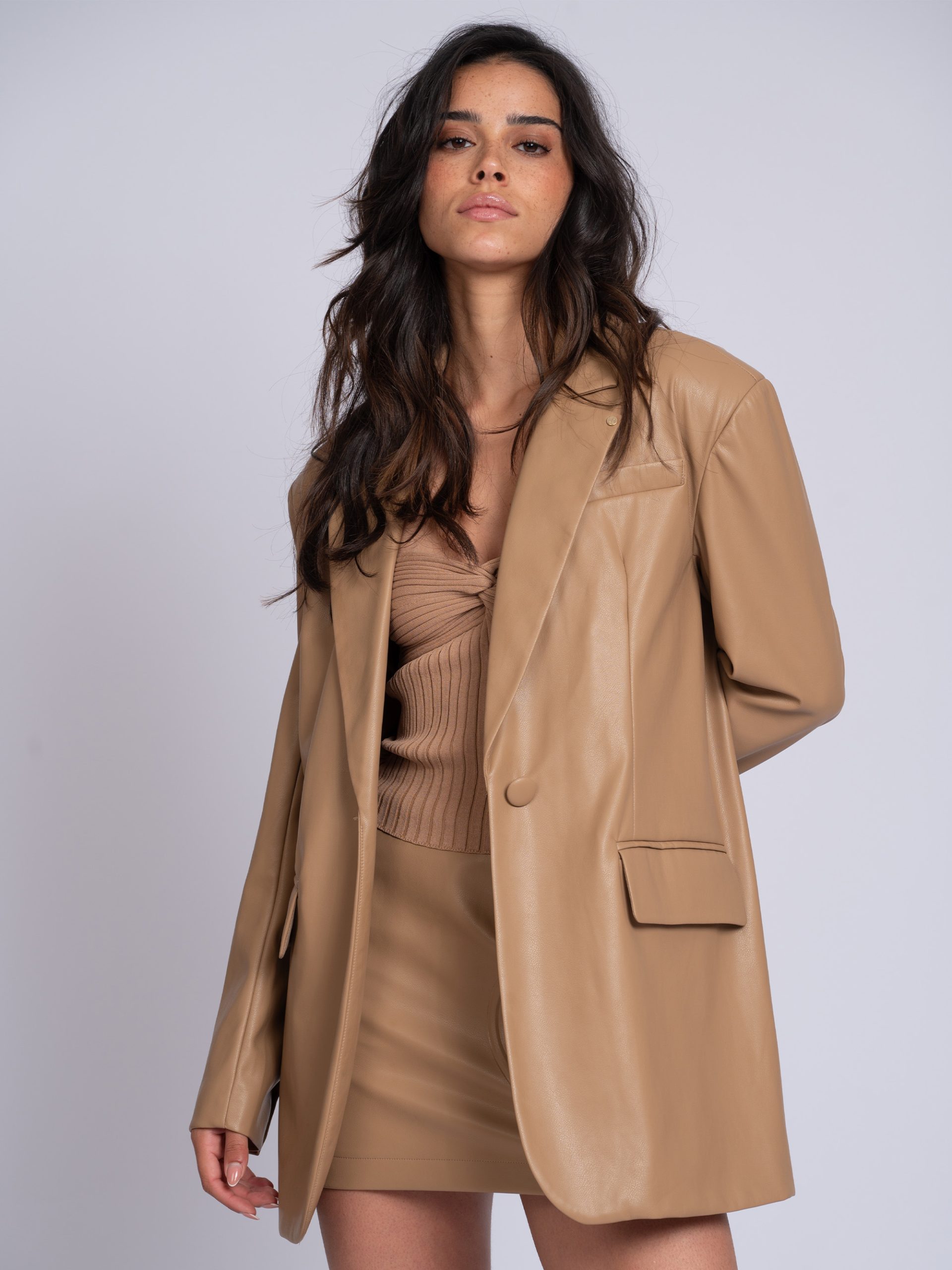 Oversized blazer in faux leather with a lapel collar, a button closure and flap pockets.