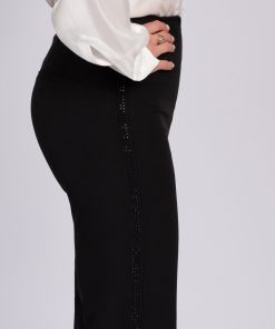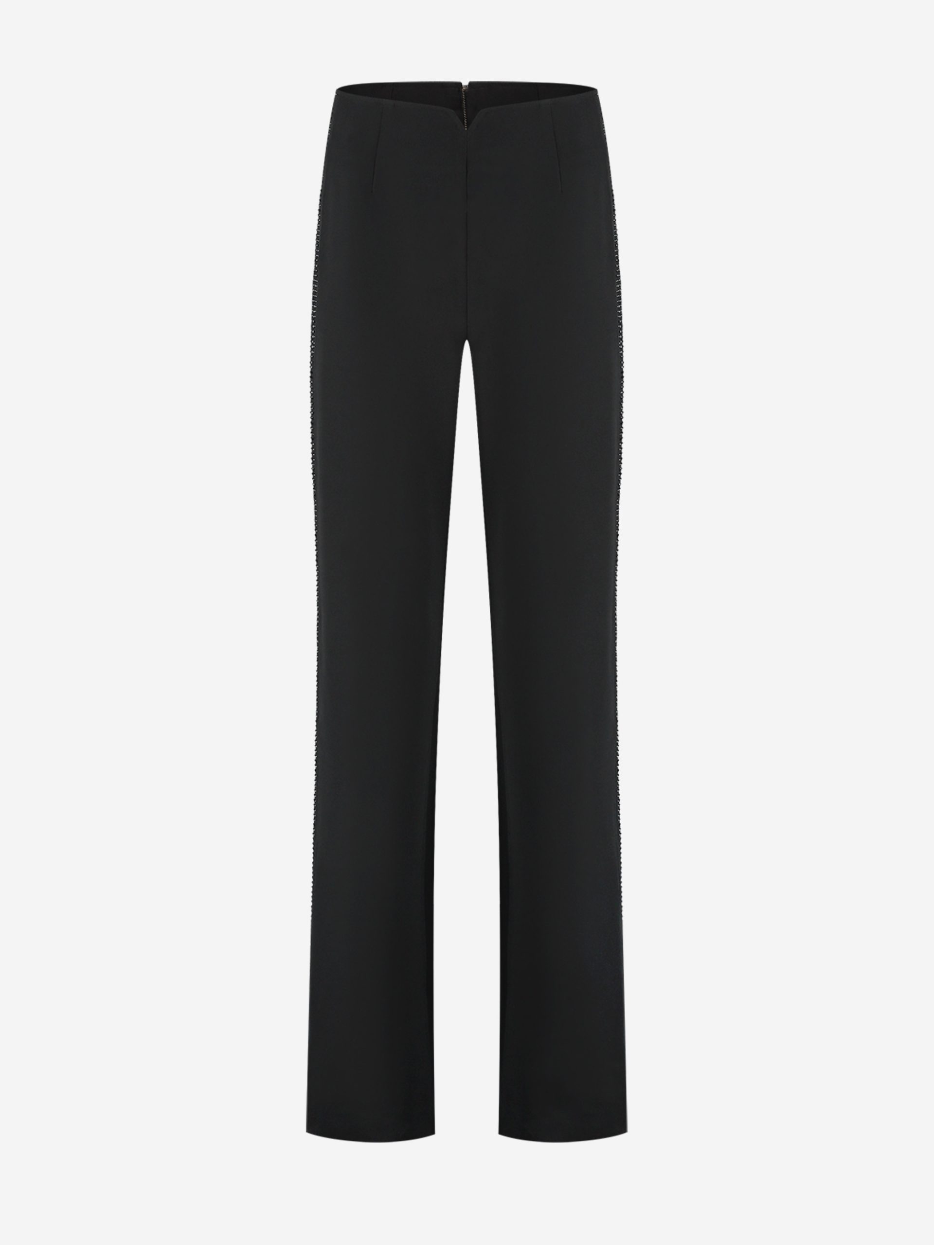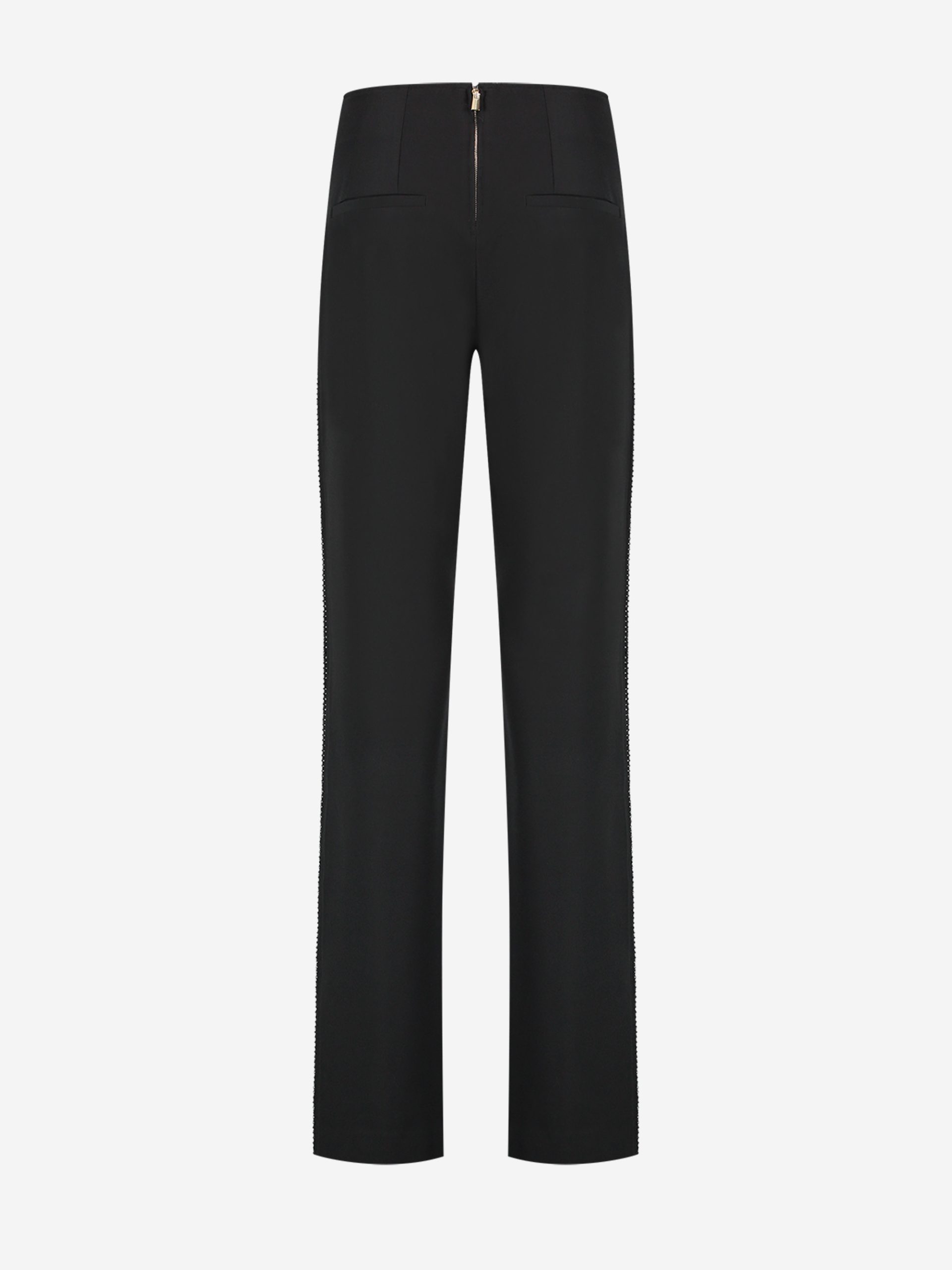 Product descriptionPants with a high waist, a zipper on the back and glitter studs on the side. The pants have a normal fit and a little stretch.