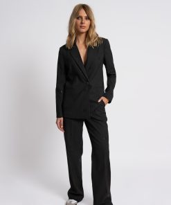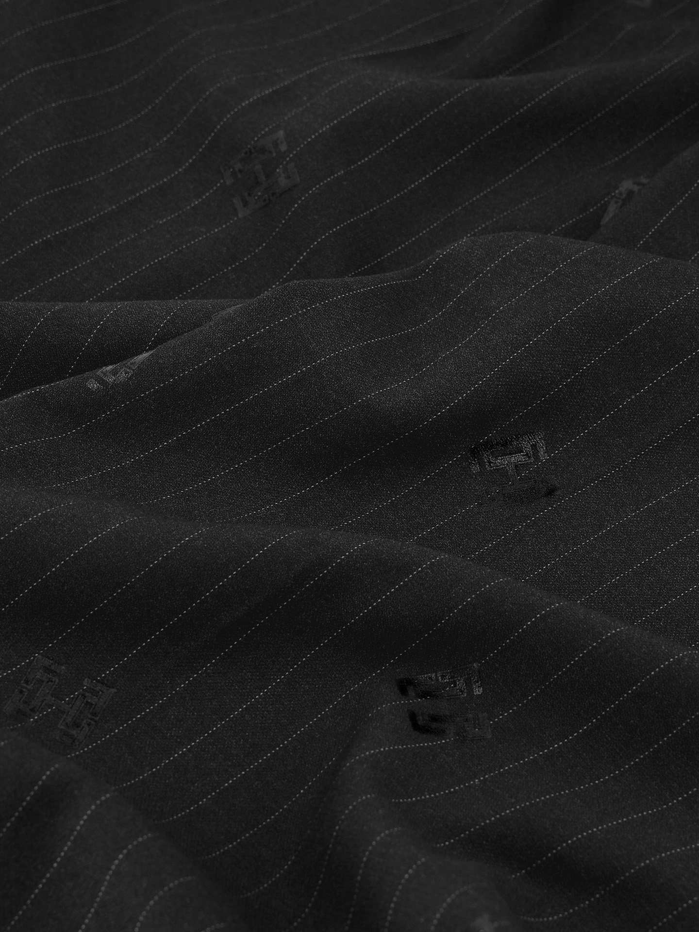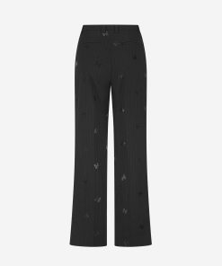 Product descriptionPants with pinstripe stripes, subtle FH logos, and a mid-rise waist. The pants have pockets and a zipper with a hook-and-eye closure.