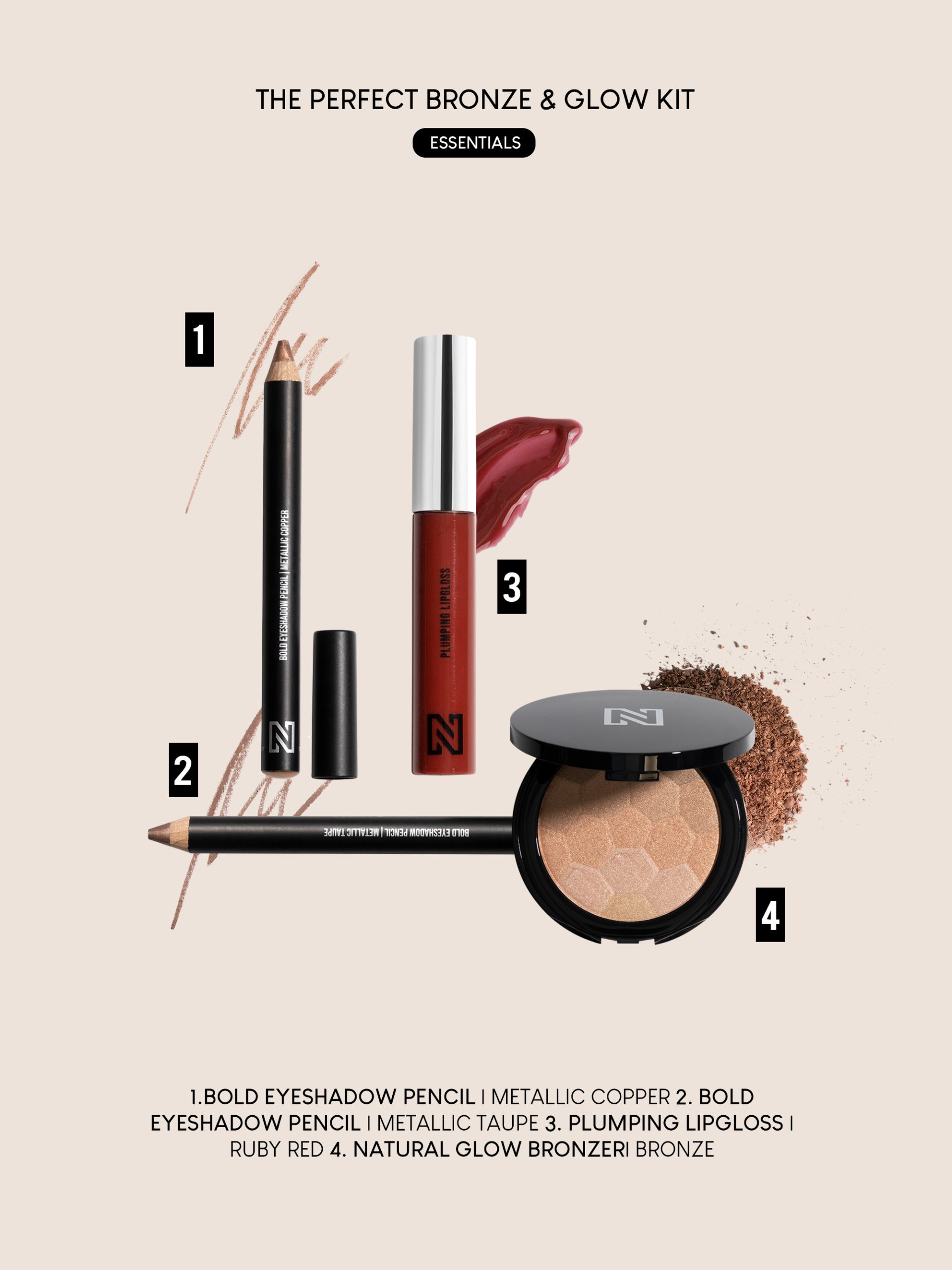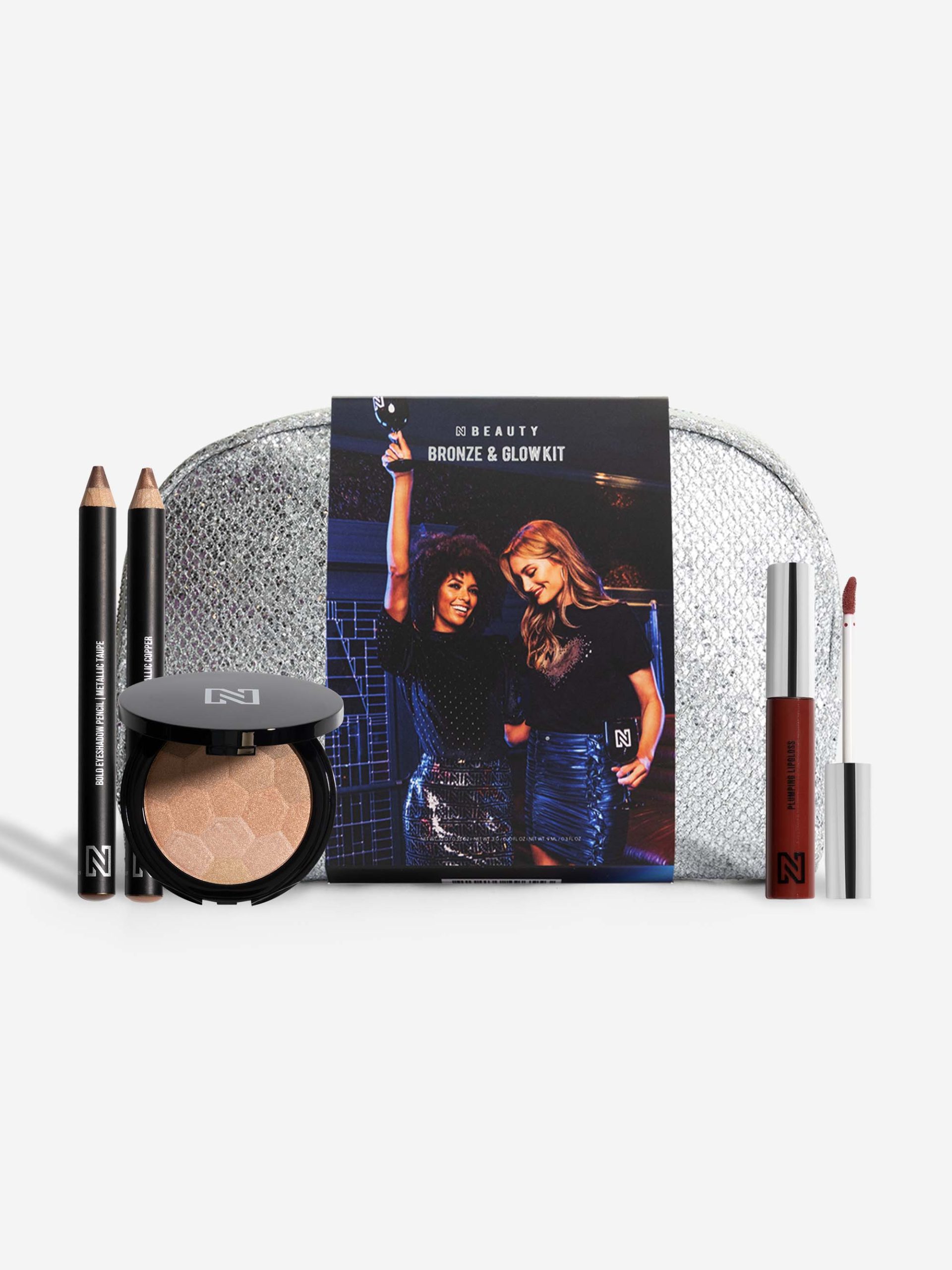 Discover the secret behind a glamorous and bright make-up look with The Perfect Bronze & Glow Kit! The secret is our Plumping Lipgloss, Natural Glow Bronzer and our Bold Eyeshadow Pencils. Perfectly packed in a metallic make-up bag! Can also be used as a clutch to combine with your party outfit. At N BEAUTY we love a shiny and bronzed look, especially for the holidays! Three products that together provide a luminous make-up look. Add The Perfect Bronze & Glow Kit now to your shopping cart and treat yourself or someone else!