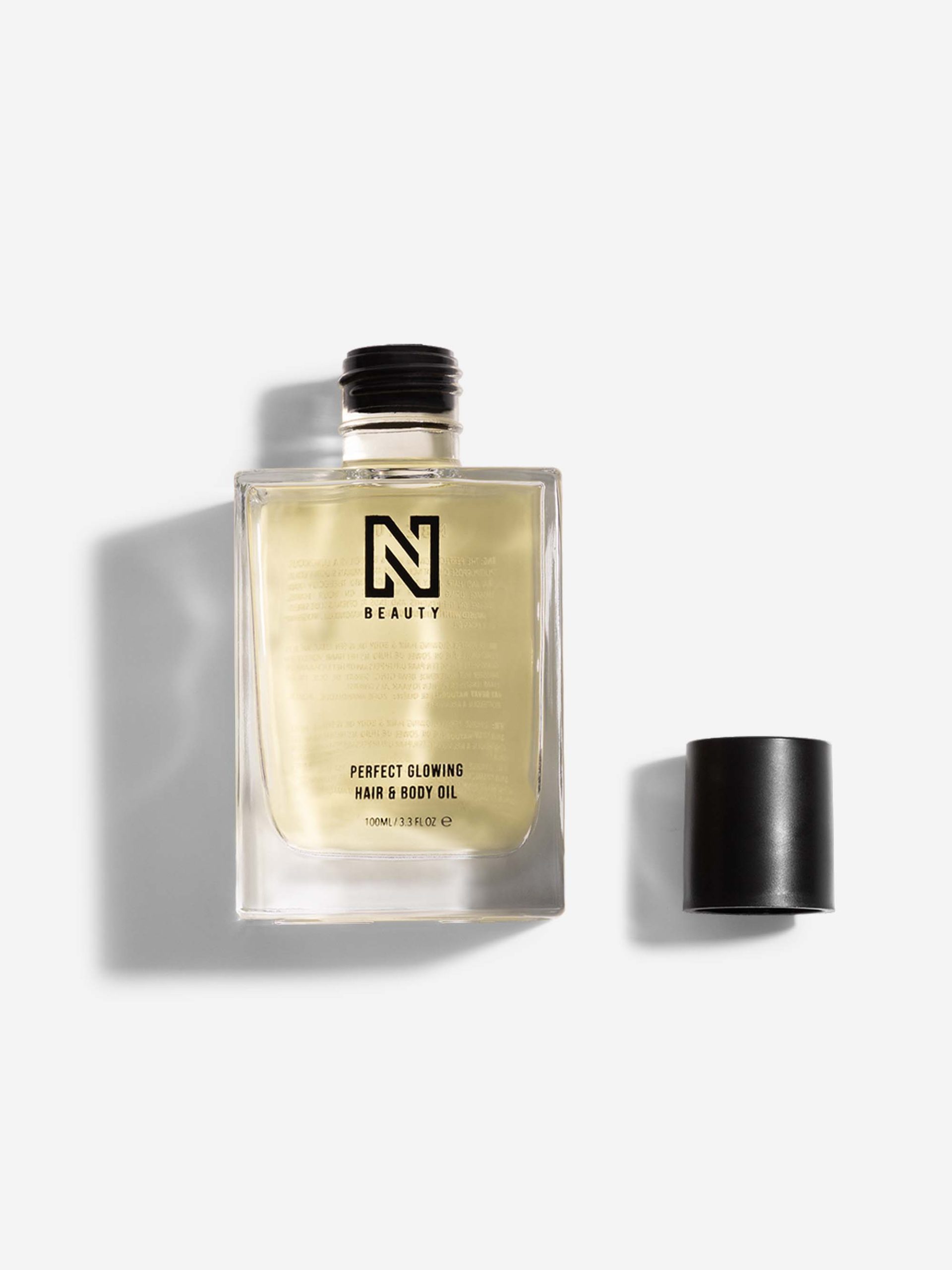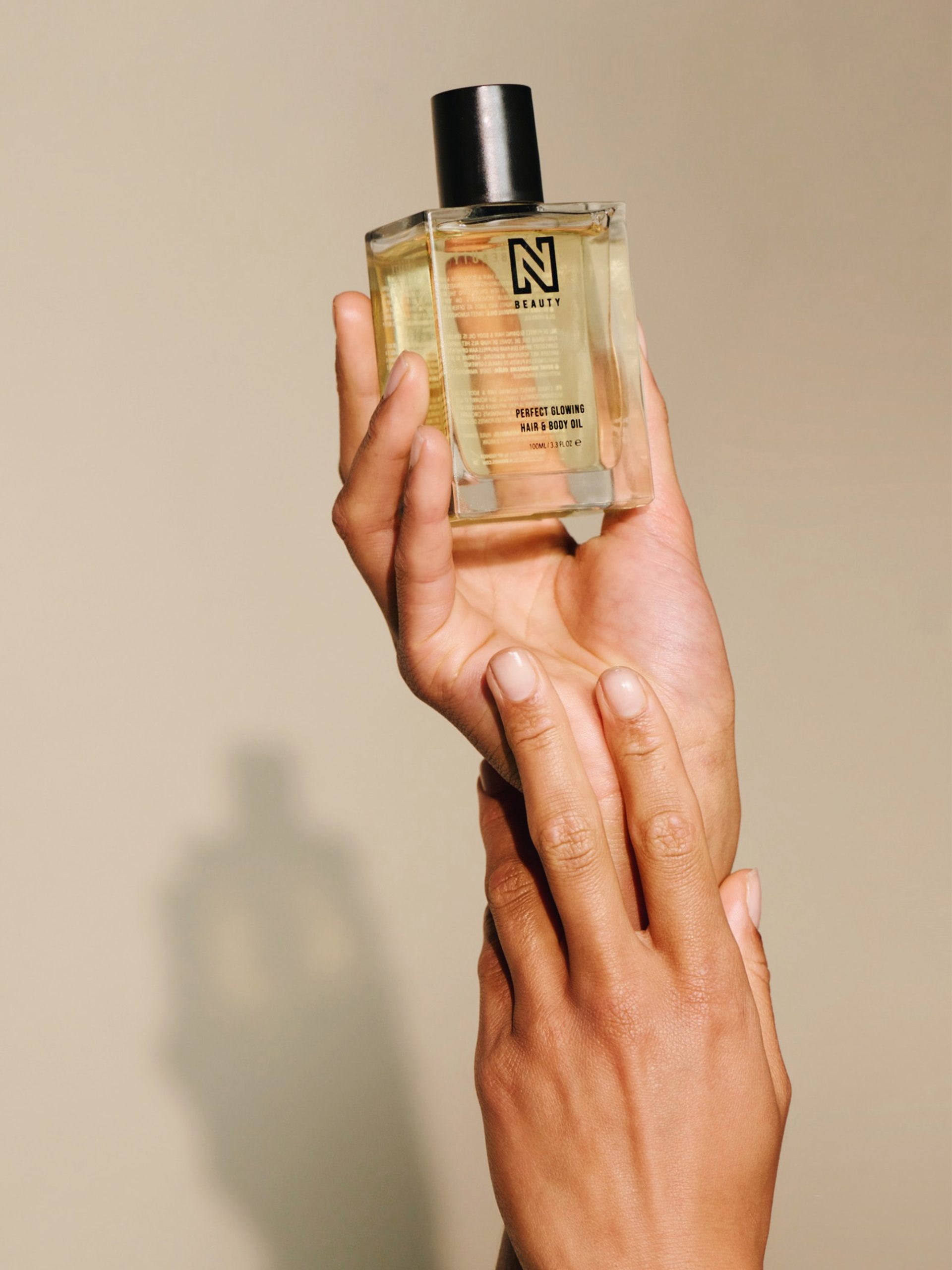 Discover now the N BEAUTY hair & body oils! The Perfect Glowing Hair & Body Oil is a luxurious, multifunctional oil that nourishes, softens and luminates both skin and hair. This oil contains natural ingredients, such us almond oil, argan oil and rosehip oil. These ingredients provide hydration, softening, calming and more resistance of the skin and they help to prevent skin aging. Enjoy the subtle scent of oranges, magnolias and vanilla. The oil absorbs quickly and stimulates renewal of the skin. This oil is suitable for all skin and hair types.