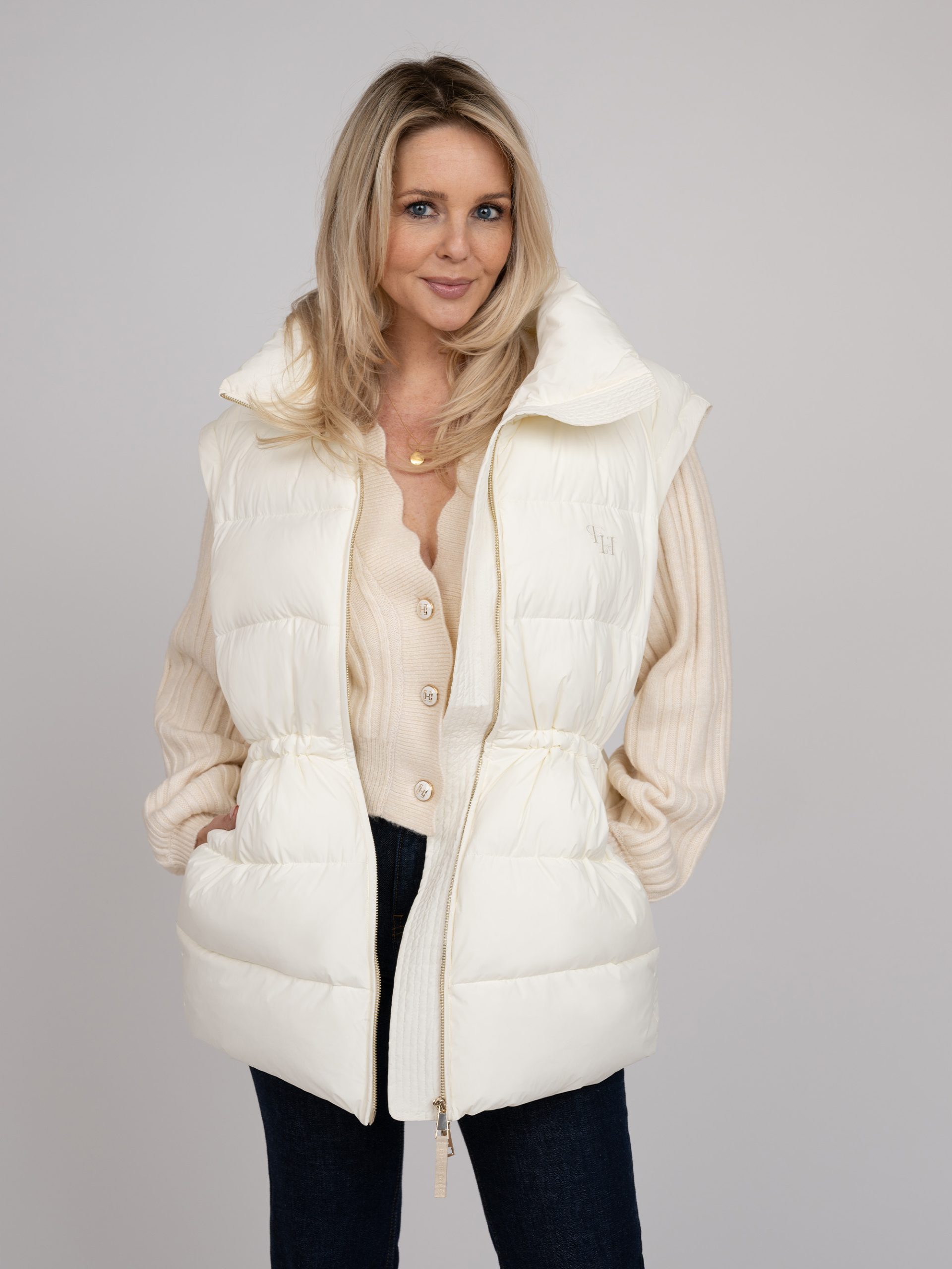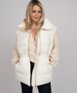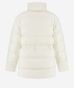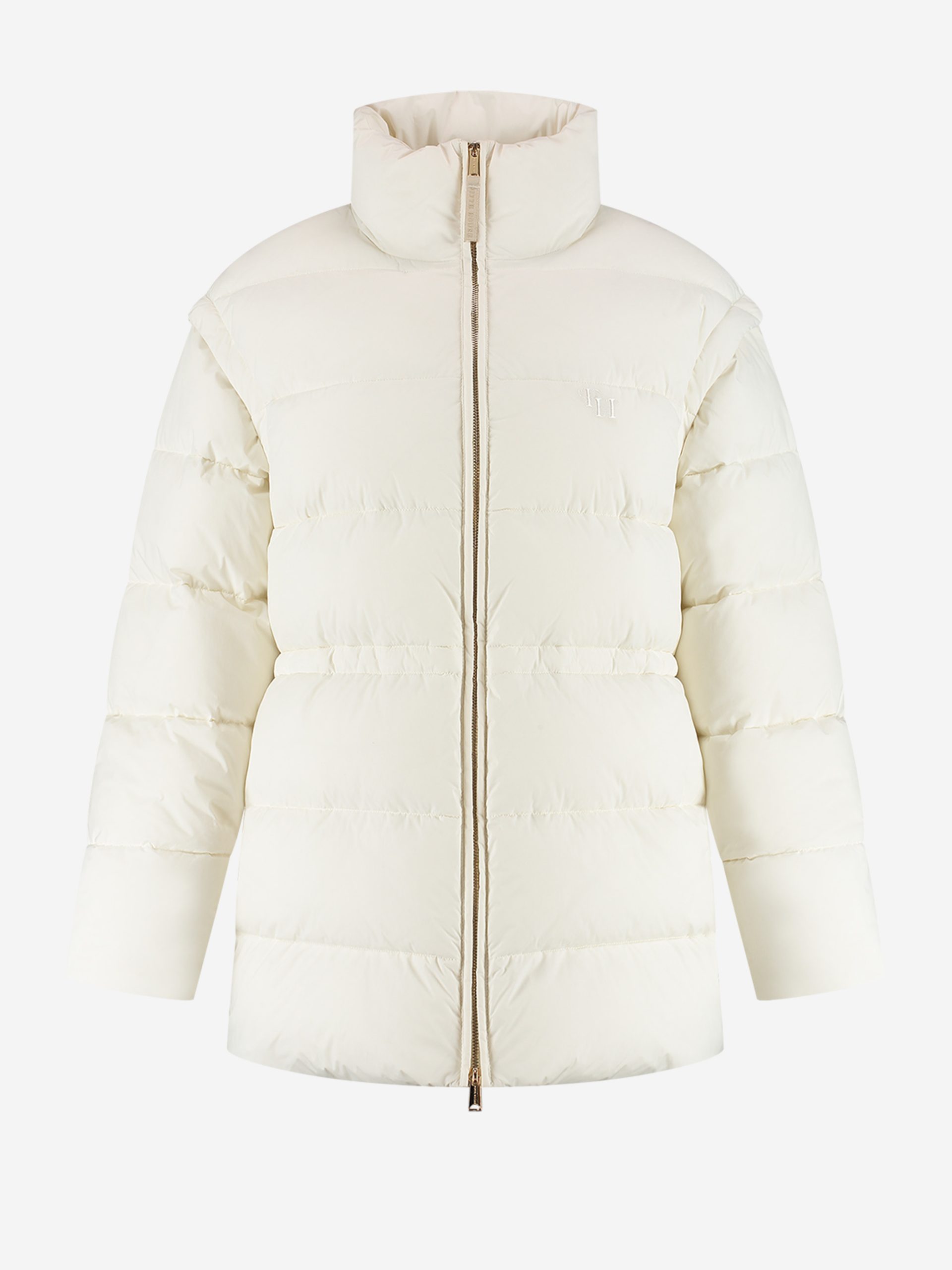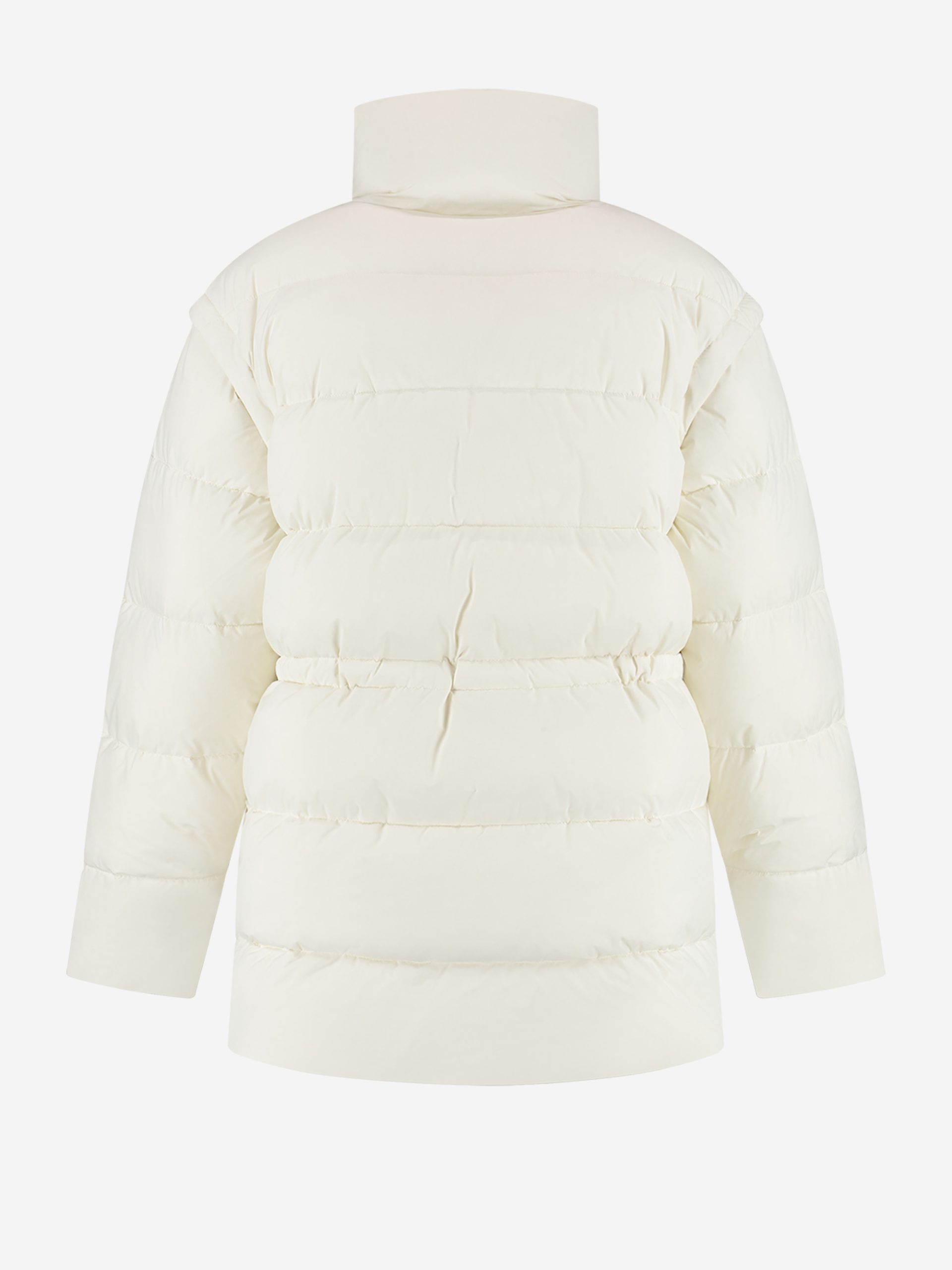 Short puffer jacketwith tailored waist and detachable sleeves. The jacket has a zipper closure,handy pockets and a high neck.