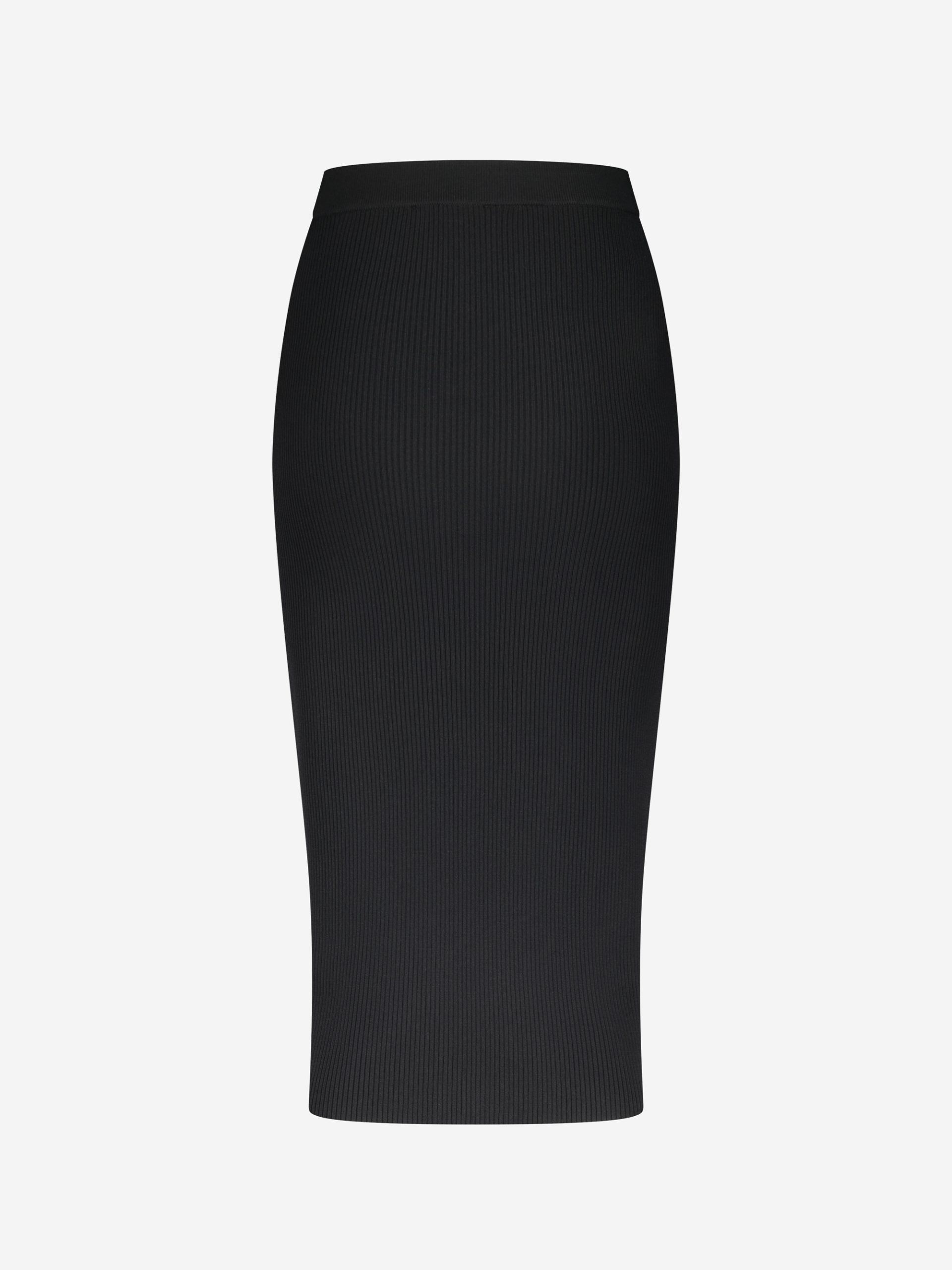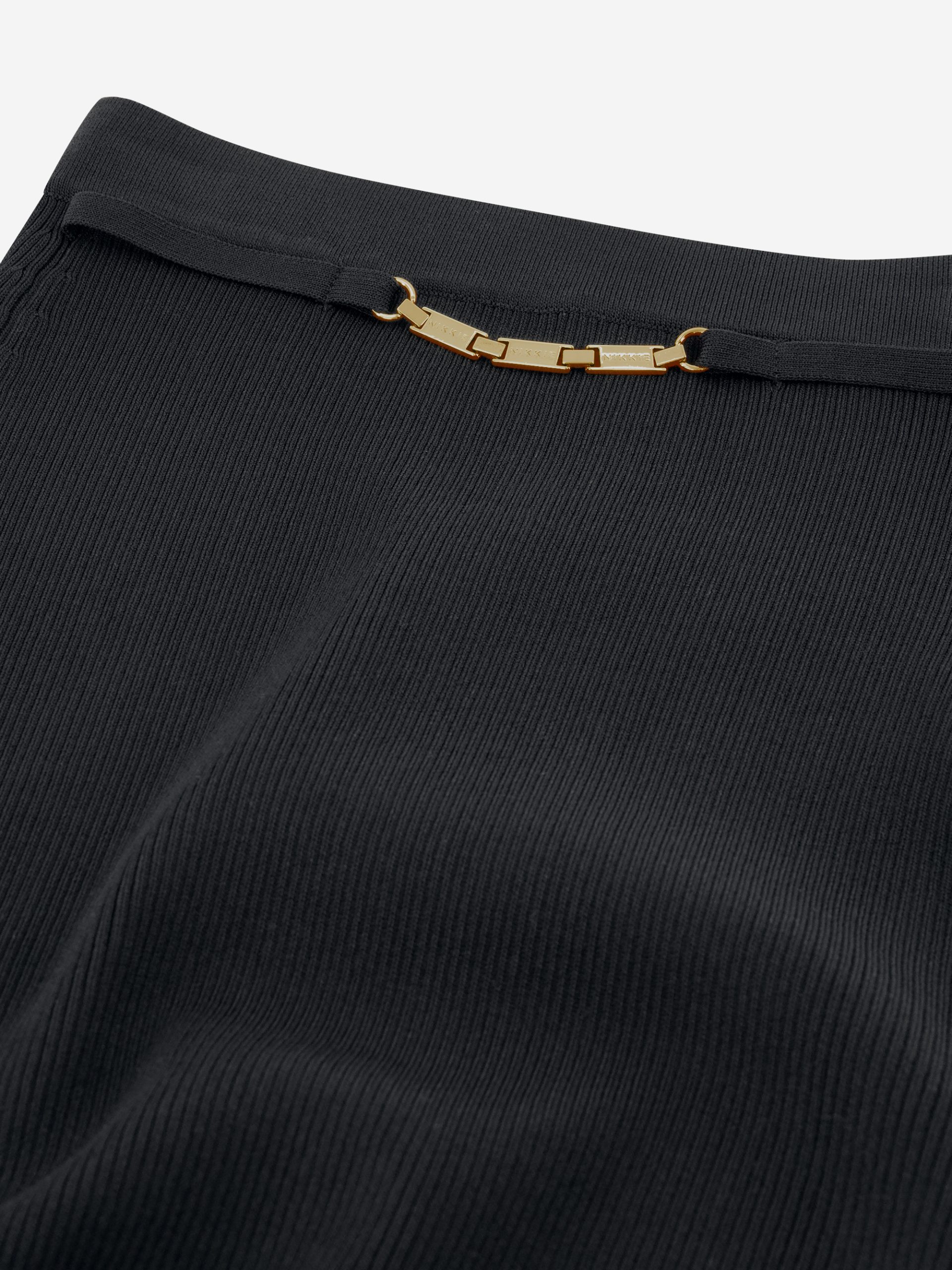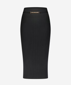 Product descriptionRibbed midi skirt with an elastic waistband, a chain detail and a fitted fit.
