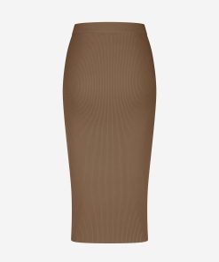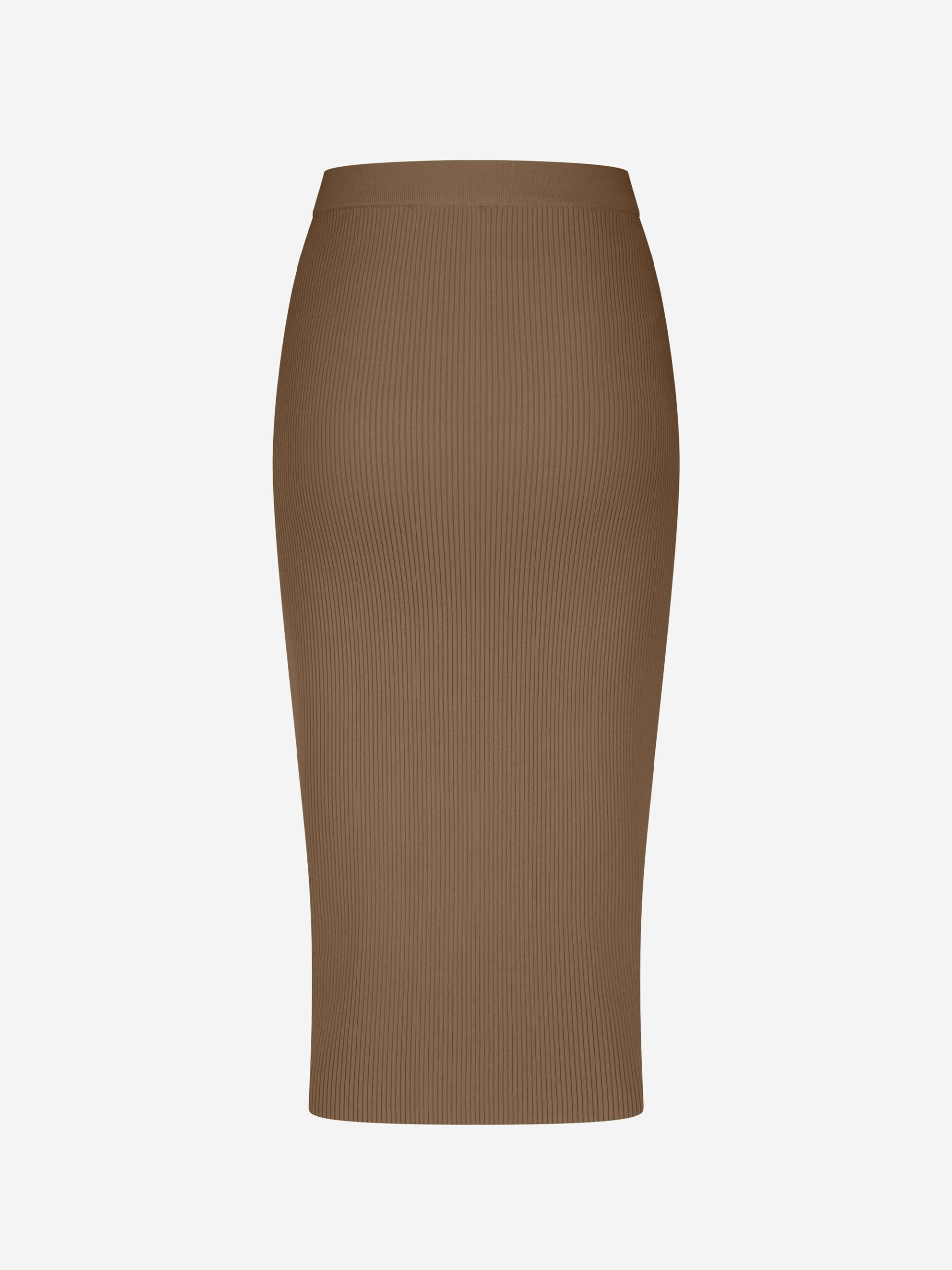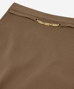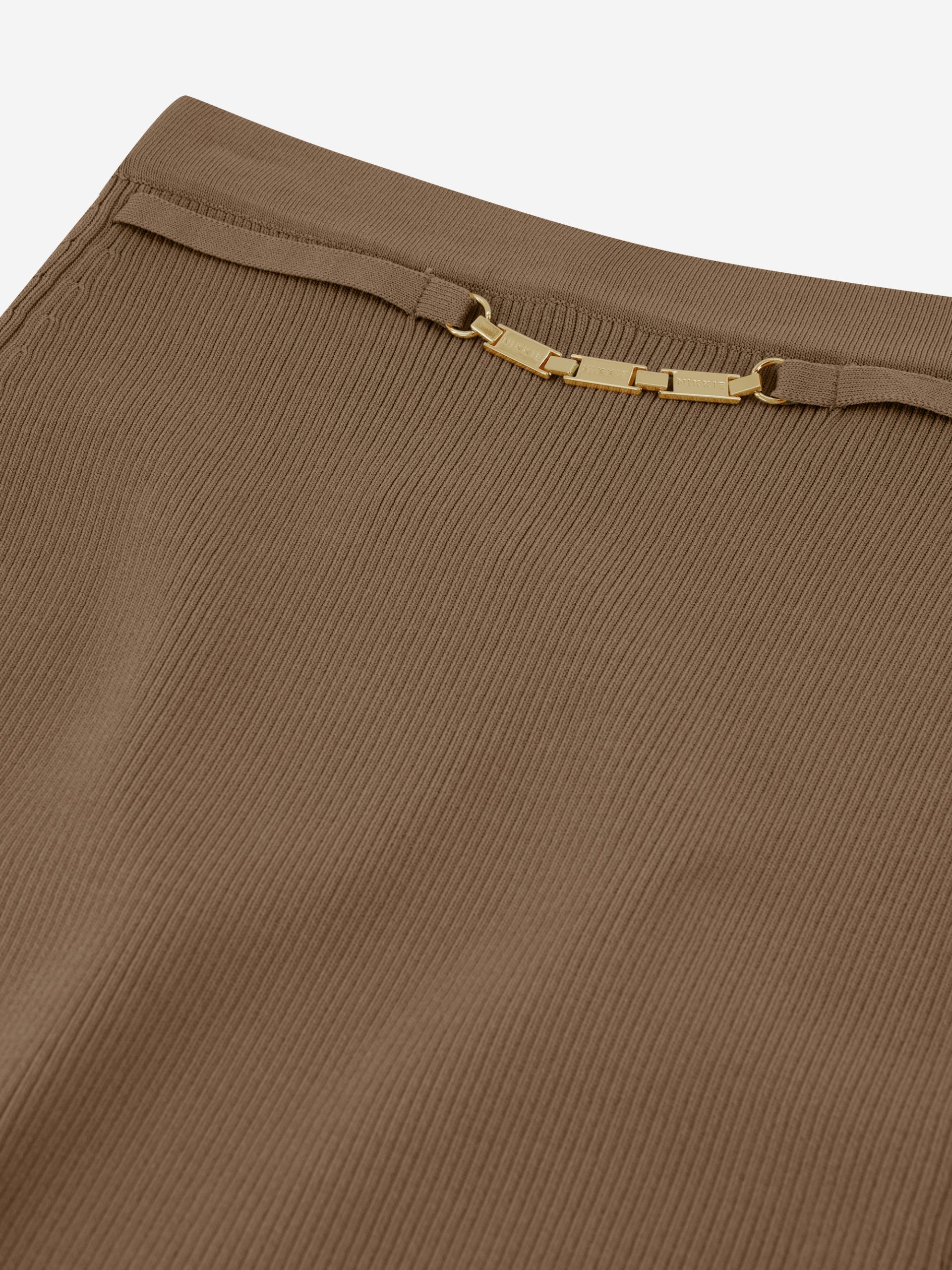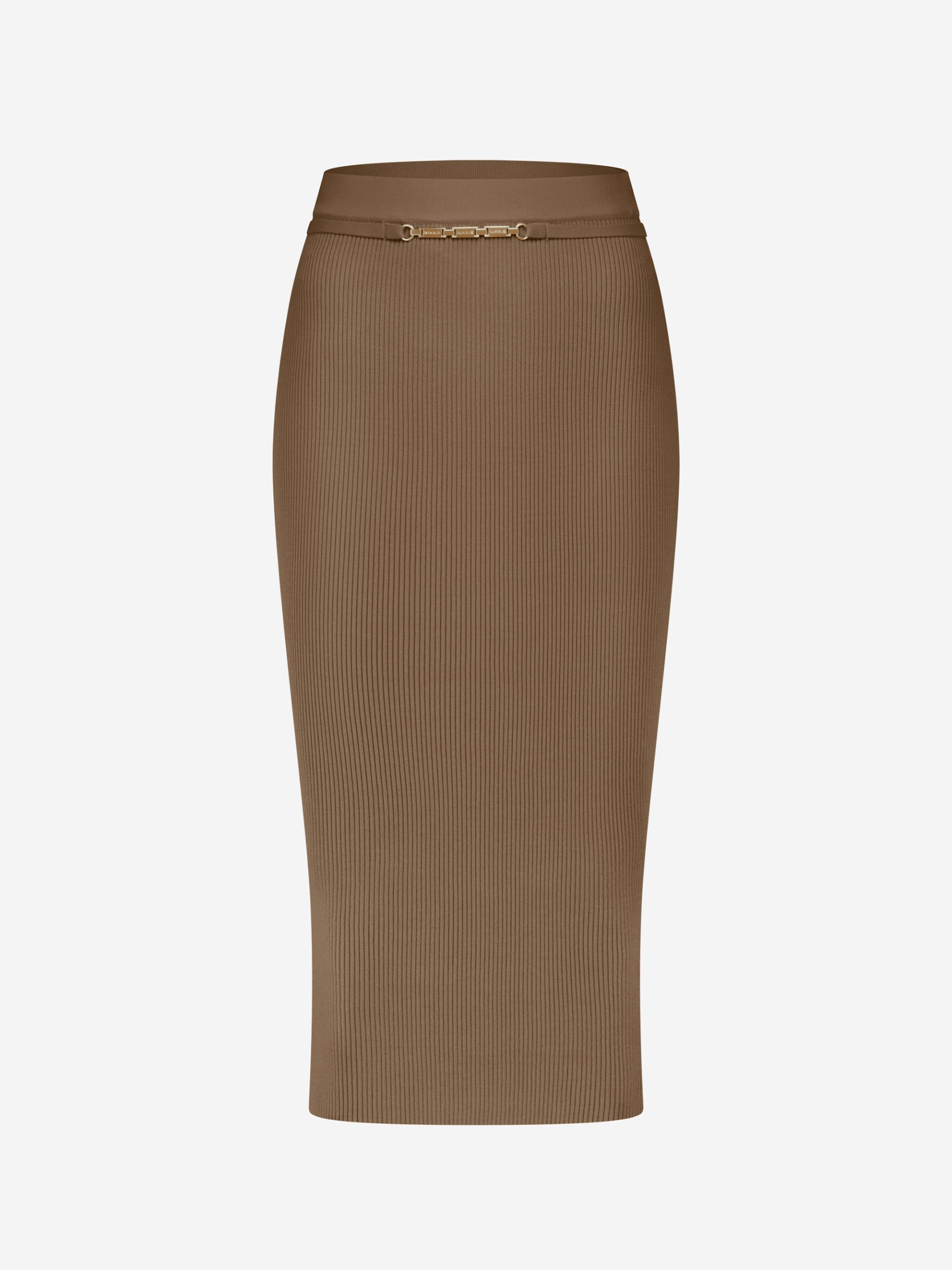 Product descriptionRibbed midi skirt with an elastic waistband, a chain detail and a fitted fit.