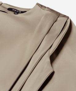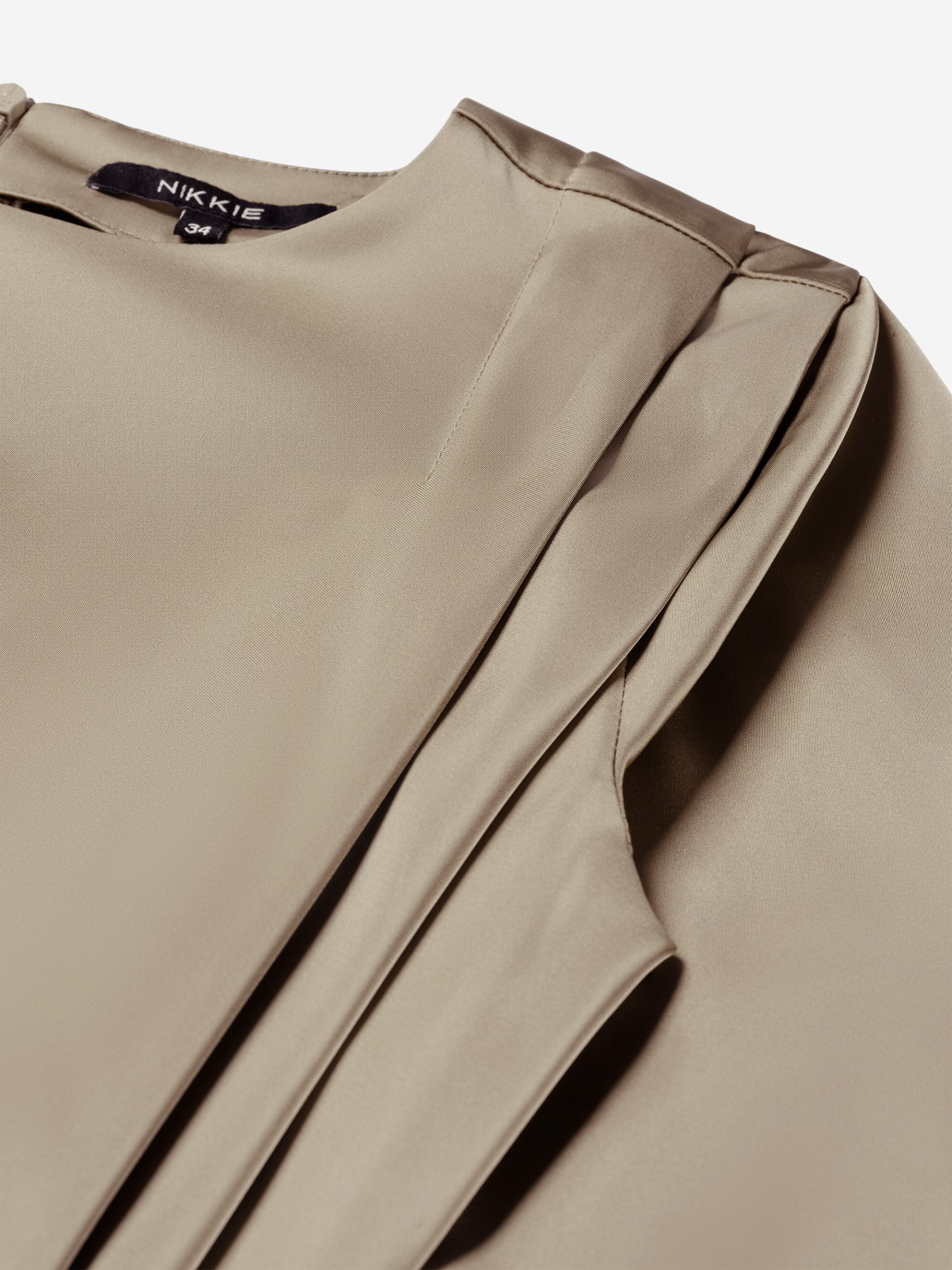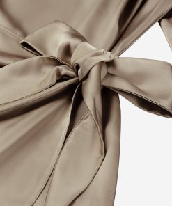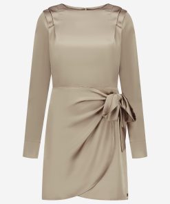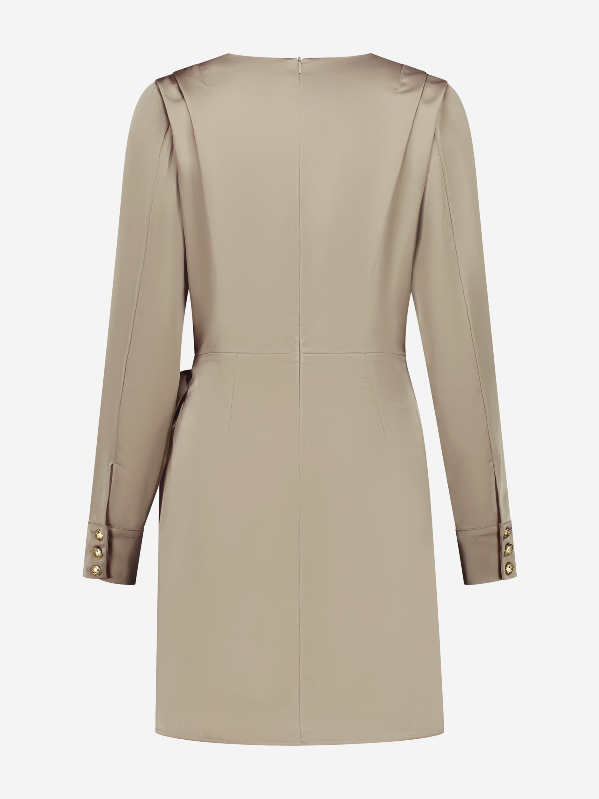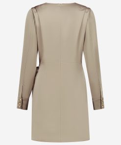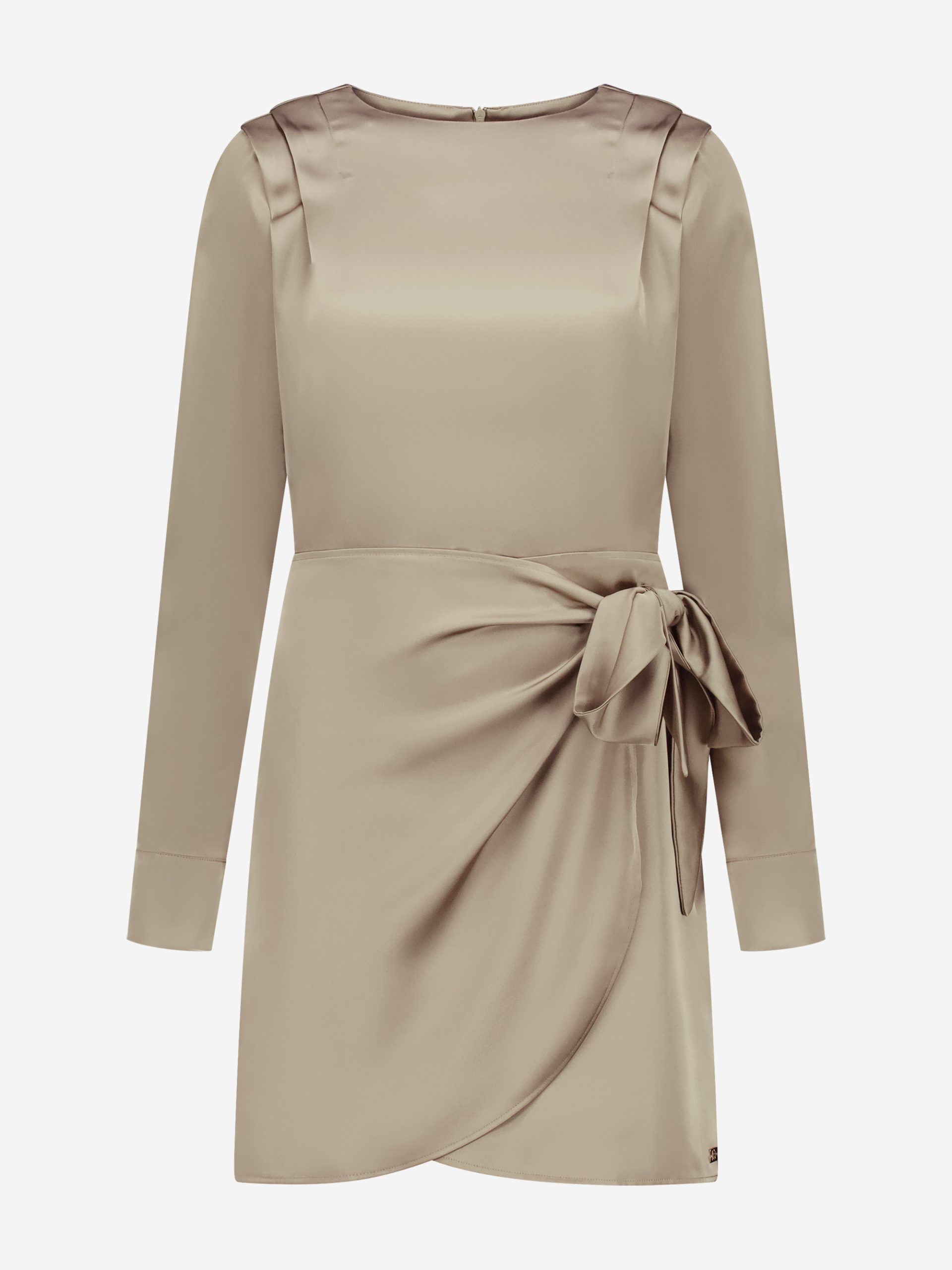 Product descriptionWrap dress with a satin look, a round neck and shoulder details. The dress has a zipper and no stretch.