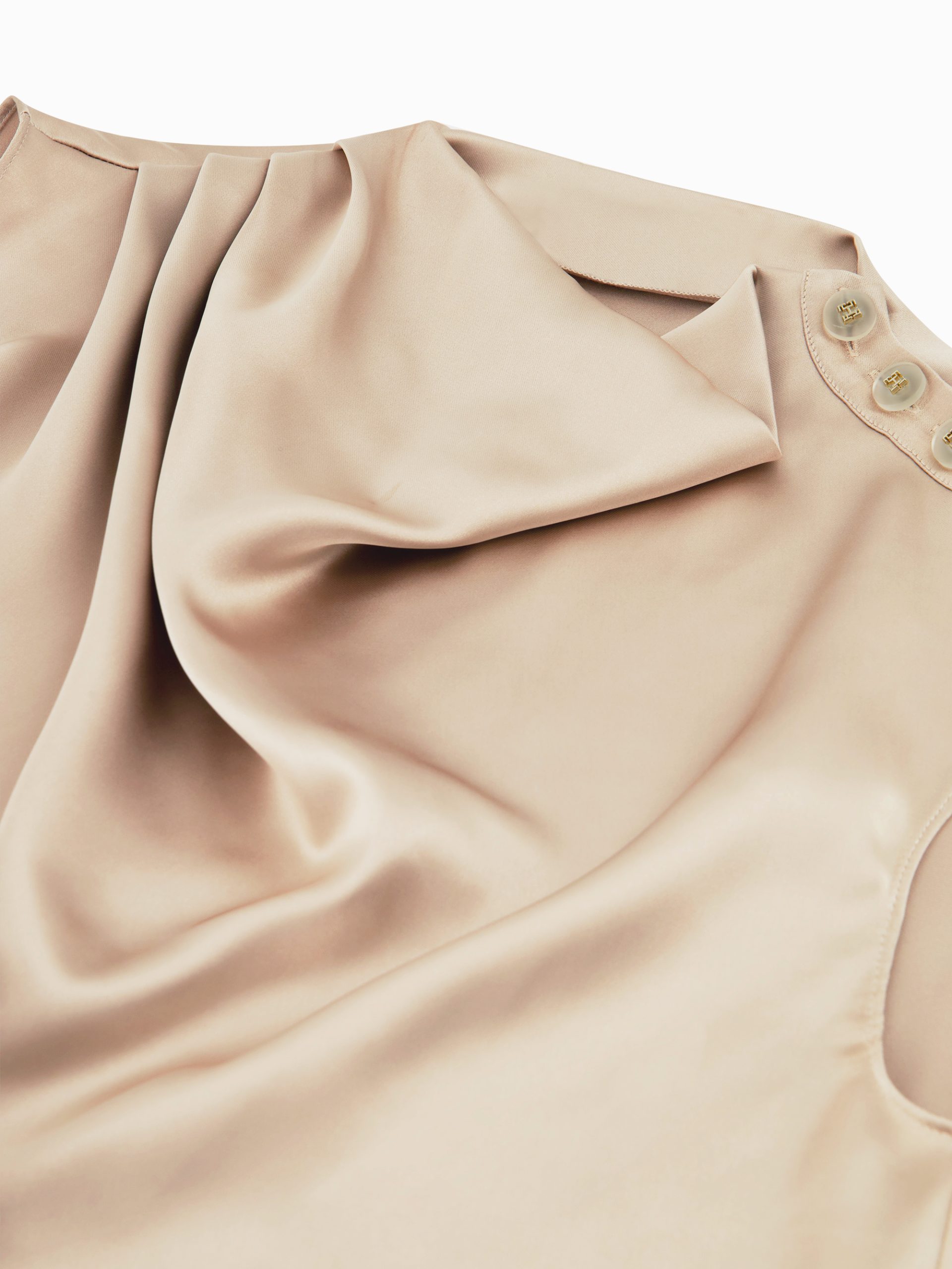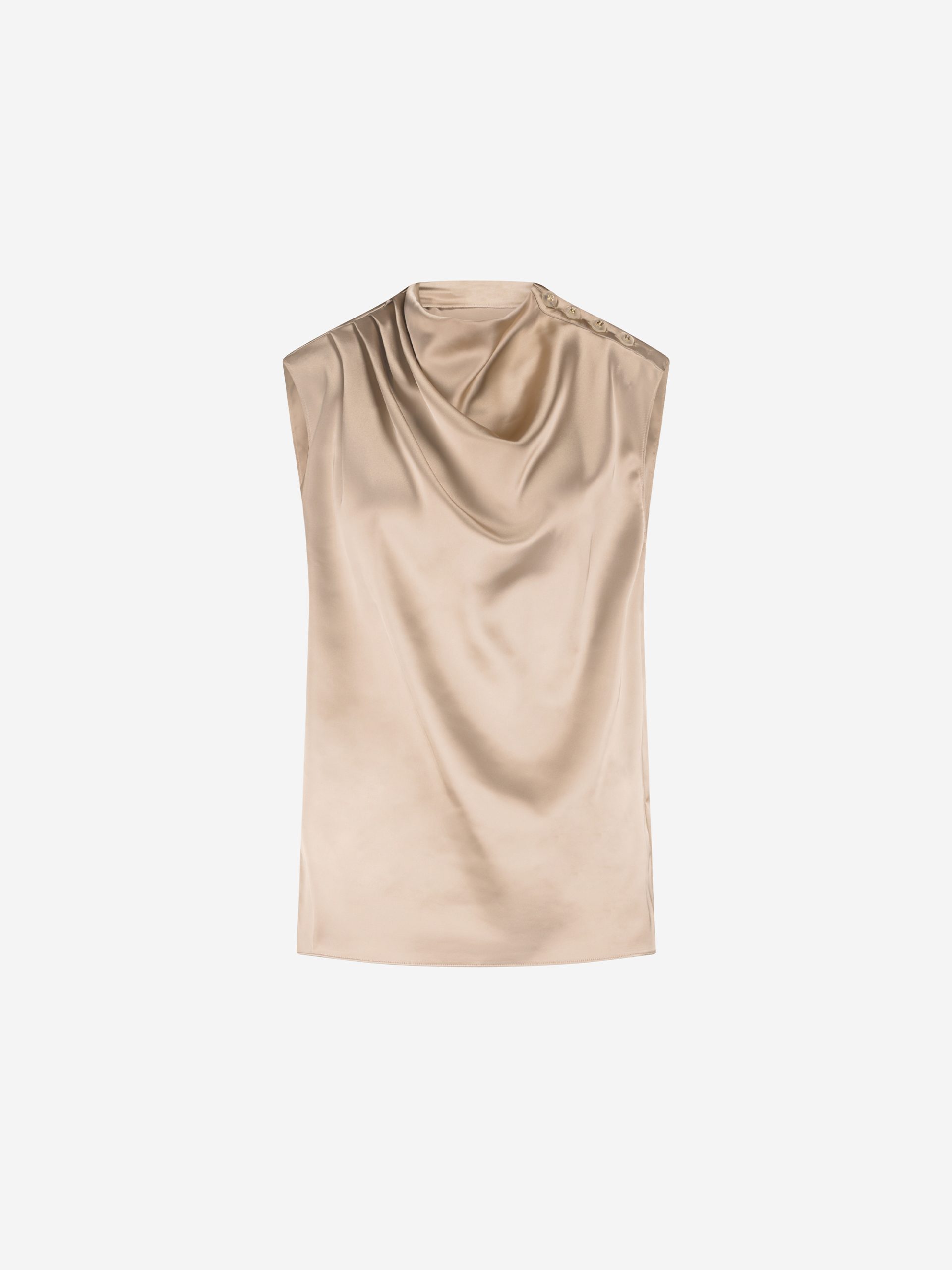 NIKKIE Women’s Satin Top With A Waterfall Neckline | Savannah Tan