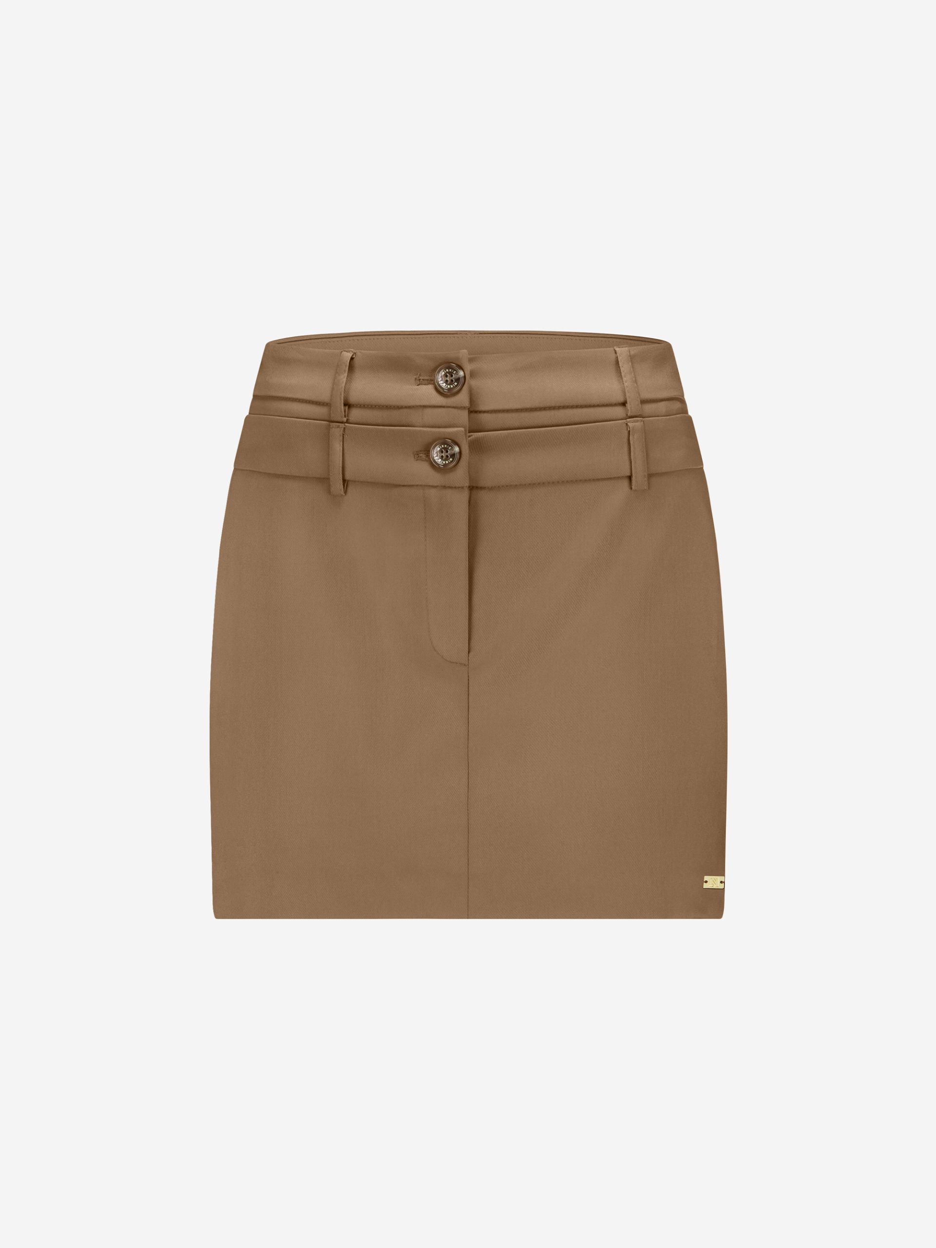 Short skort with a double waistband, decorative pockets and a subtle logo detail. The skirt has a zip and button closure and a regular fit.