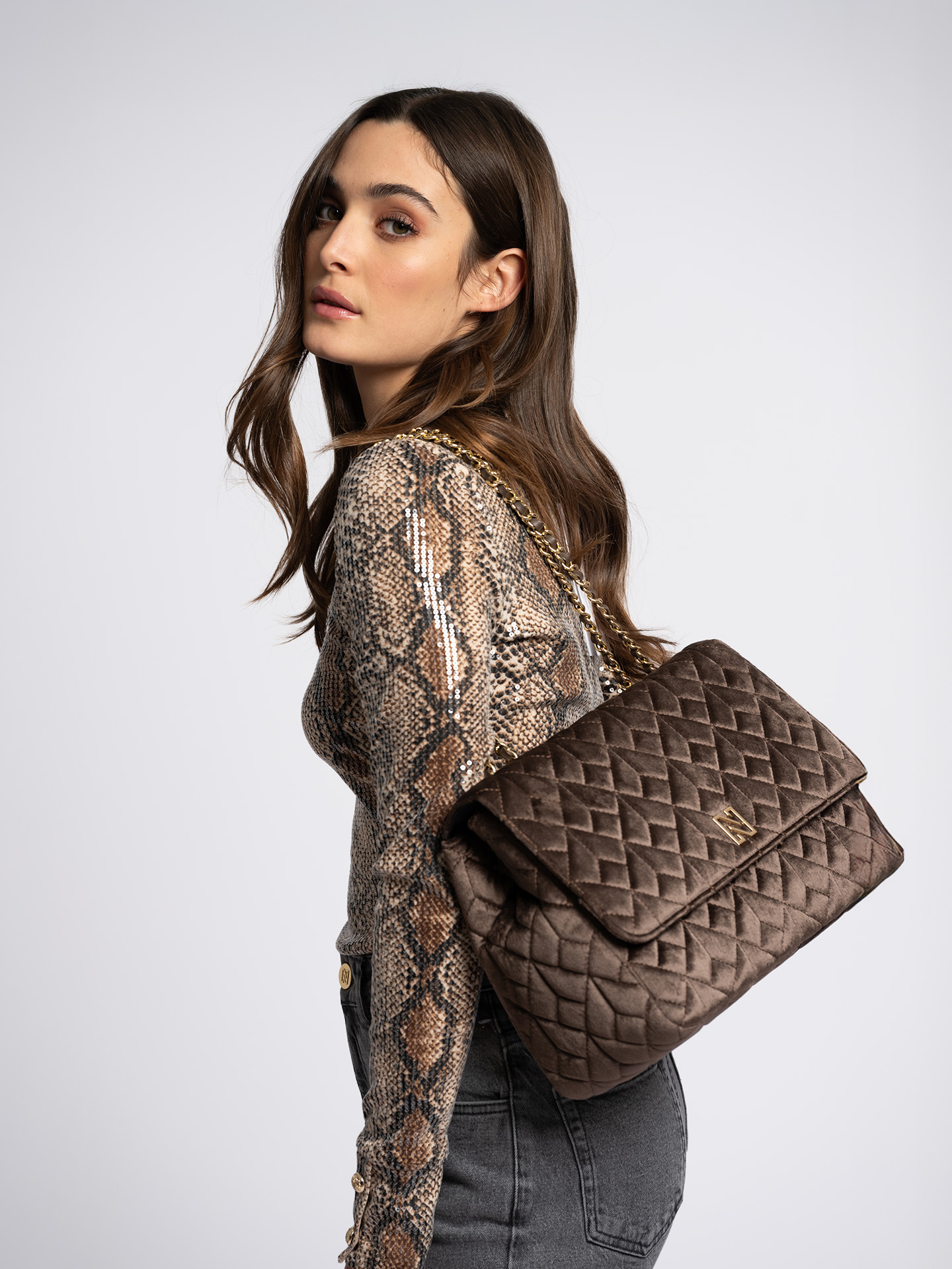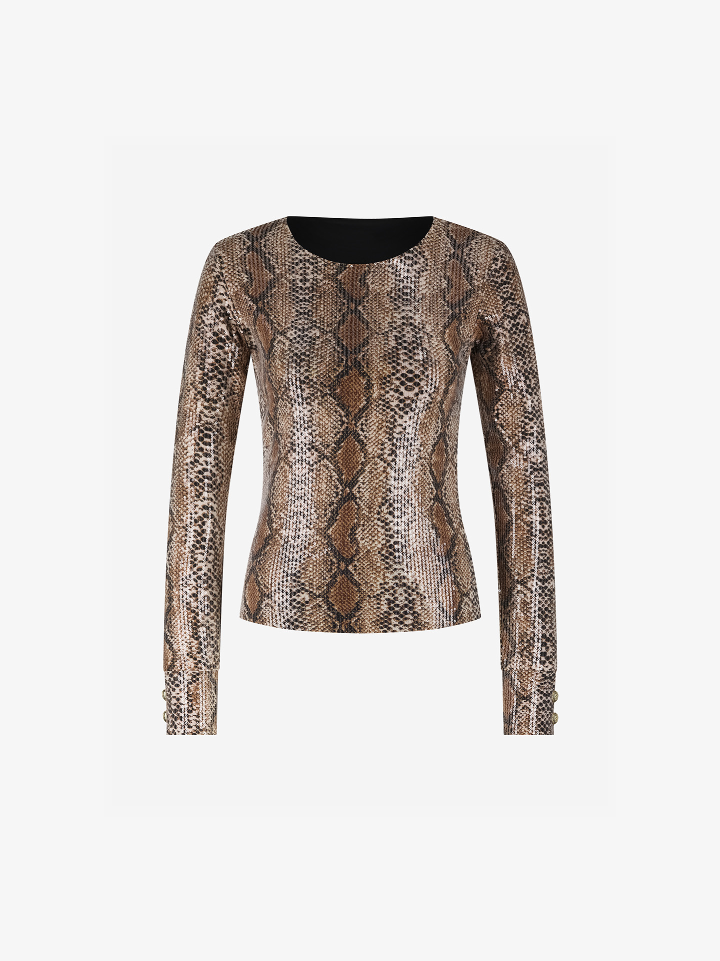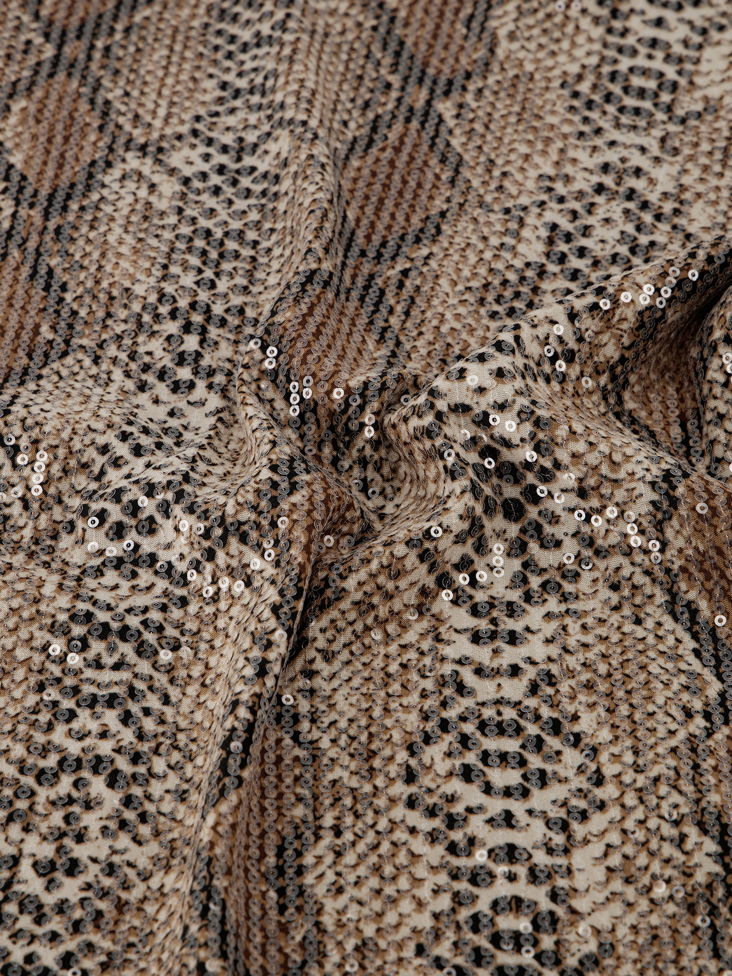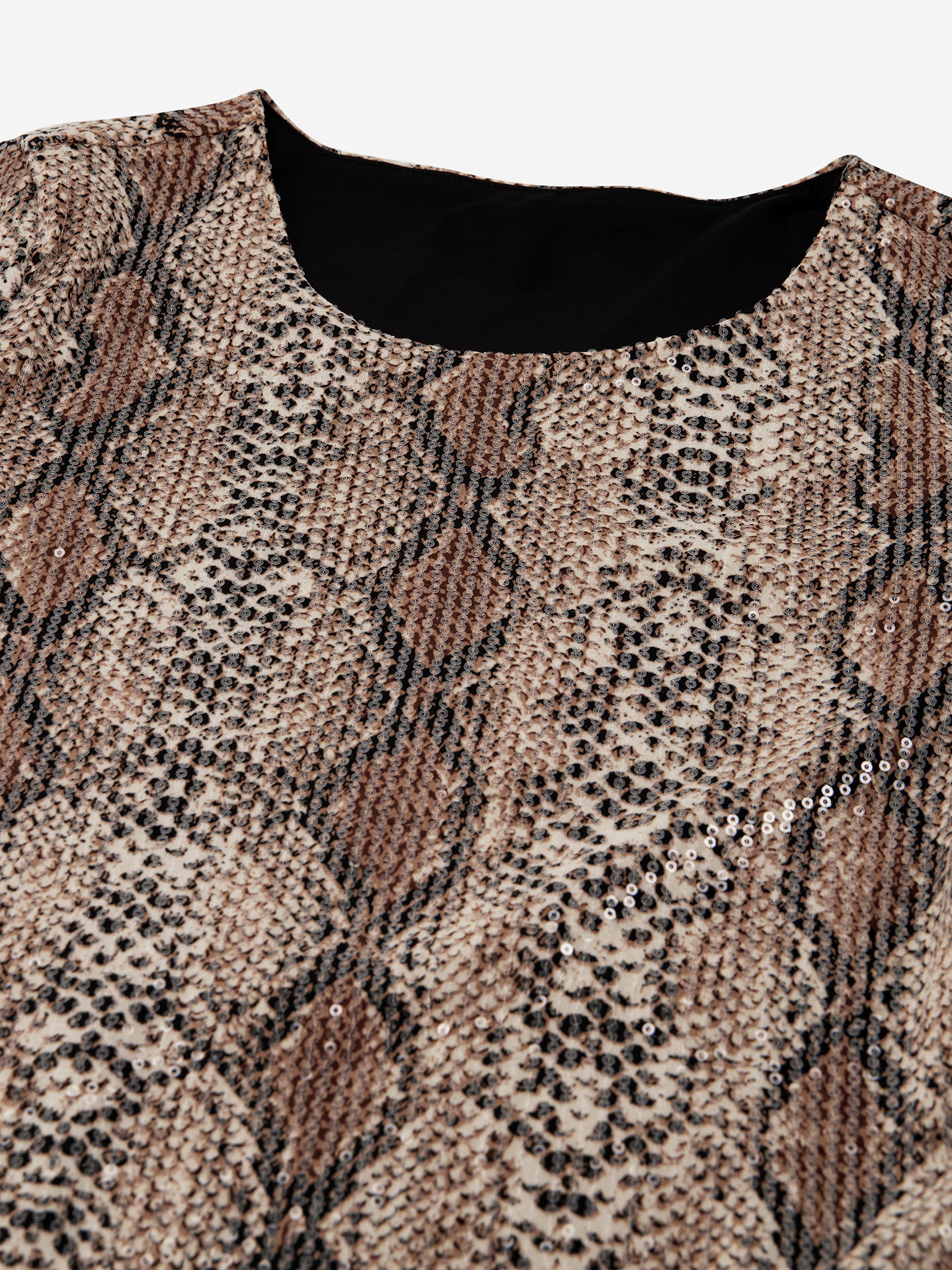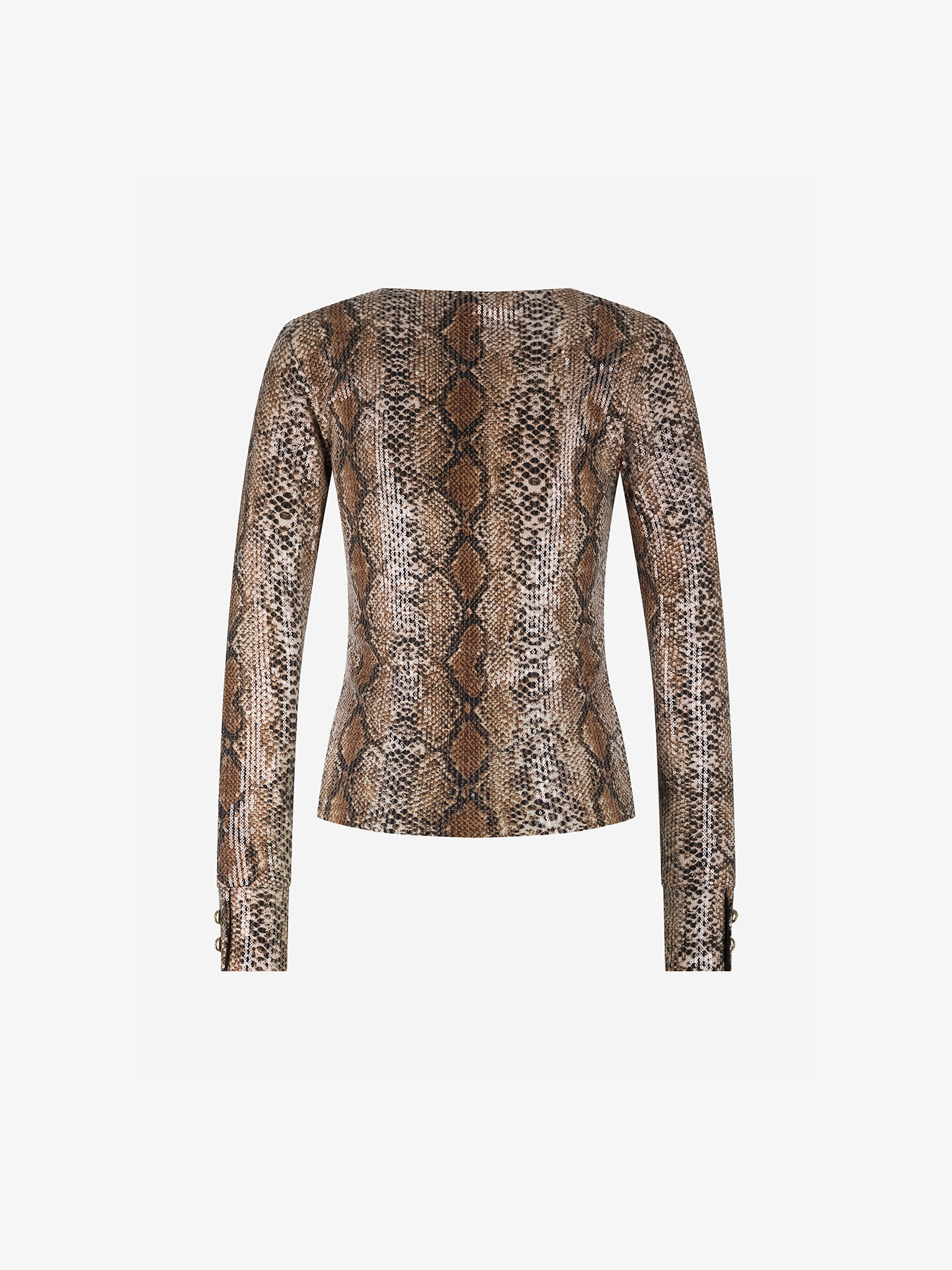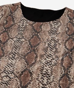 Product descriptionFitted top with an all-over snakeskin print, a shimmering sequined fabric, and a high neck.