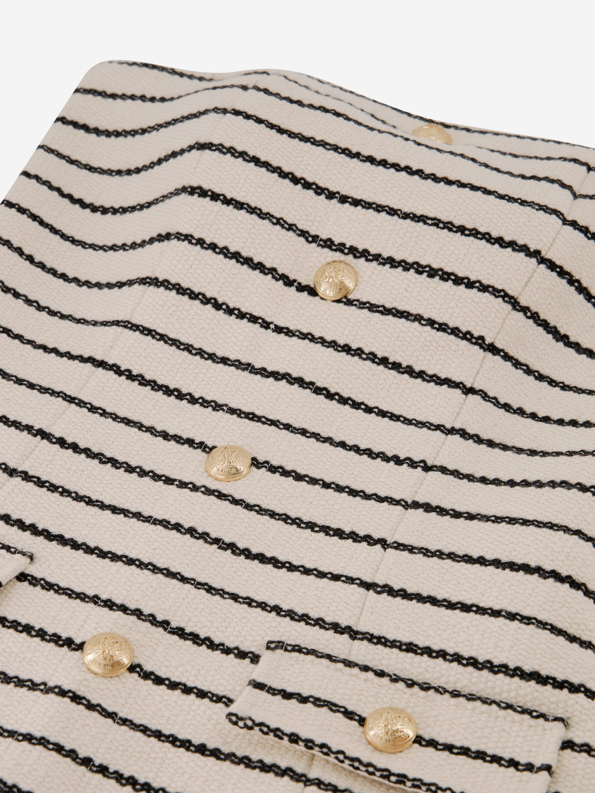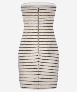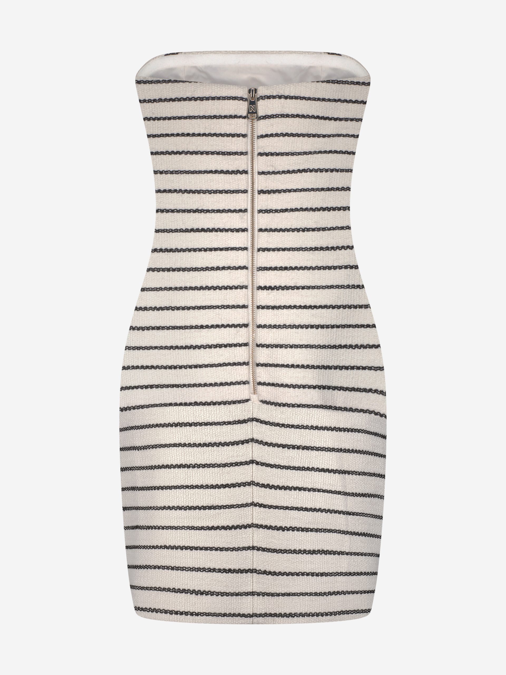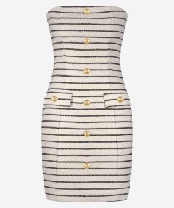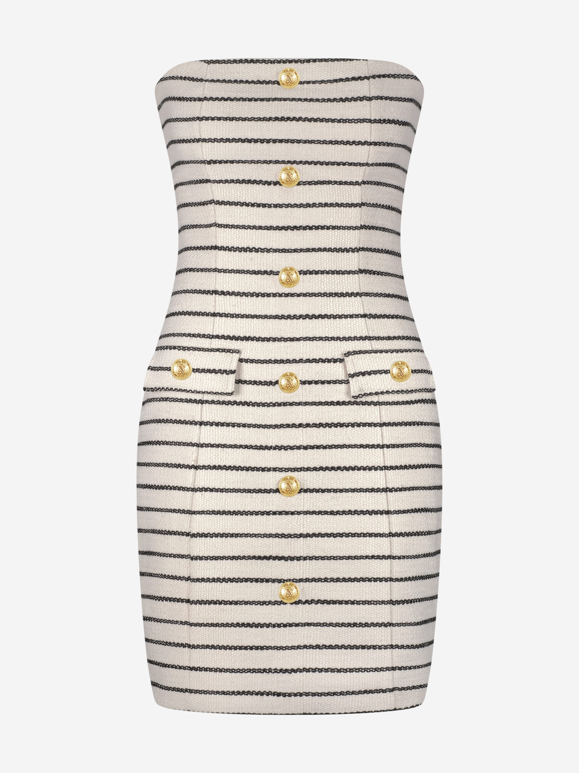 Product descriptionFitted woven dress with a striped pattern and decorative buttons. The dress is strapless and has no stretch.