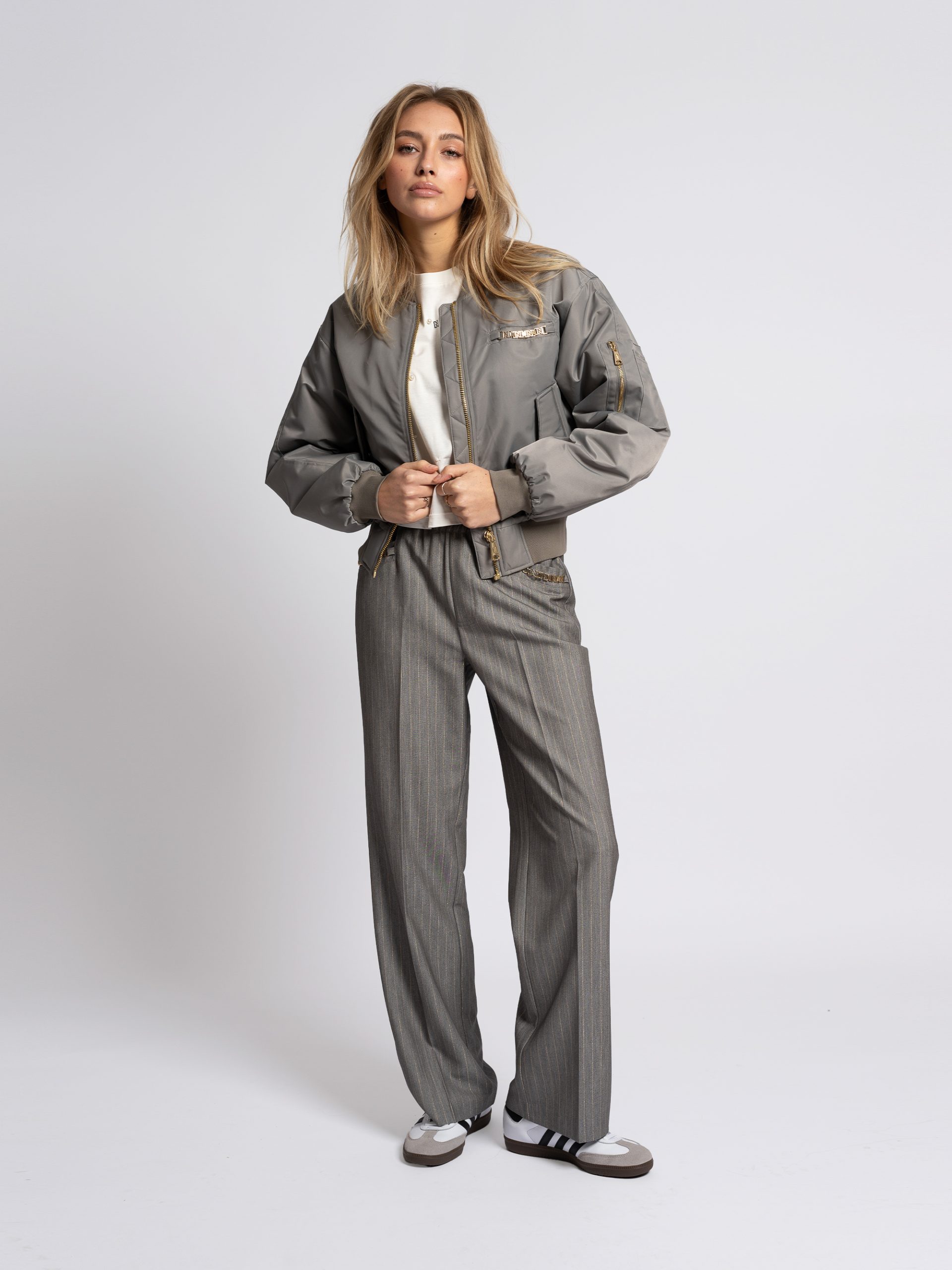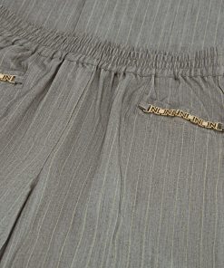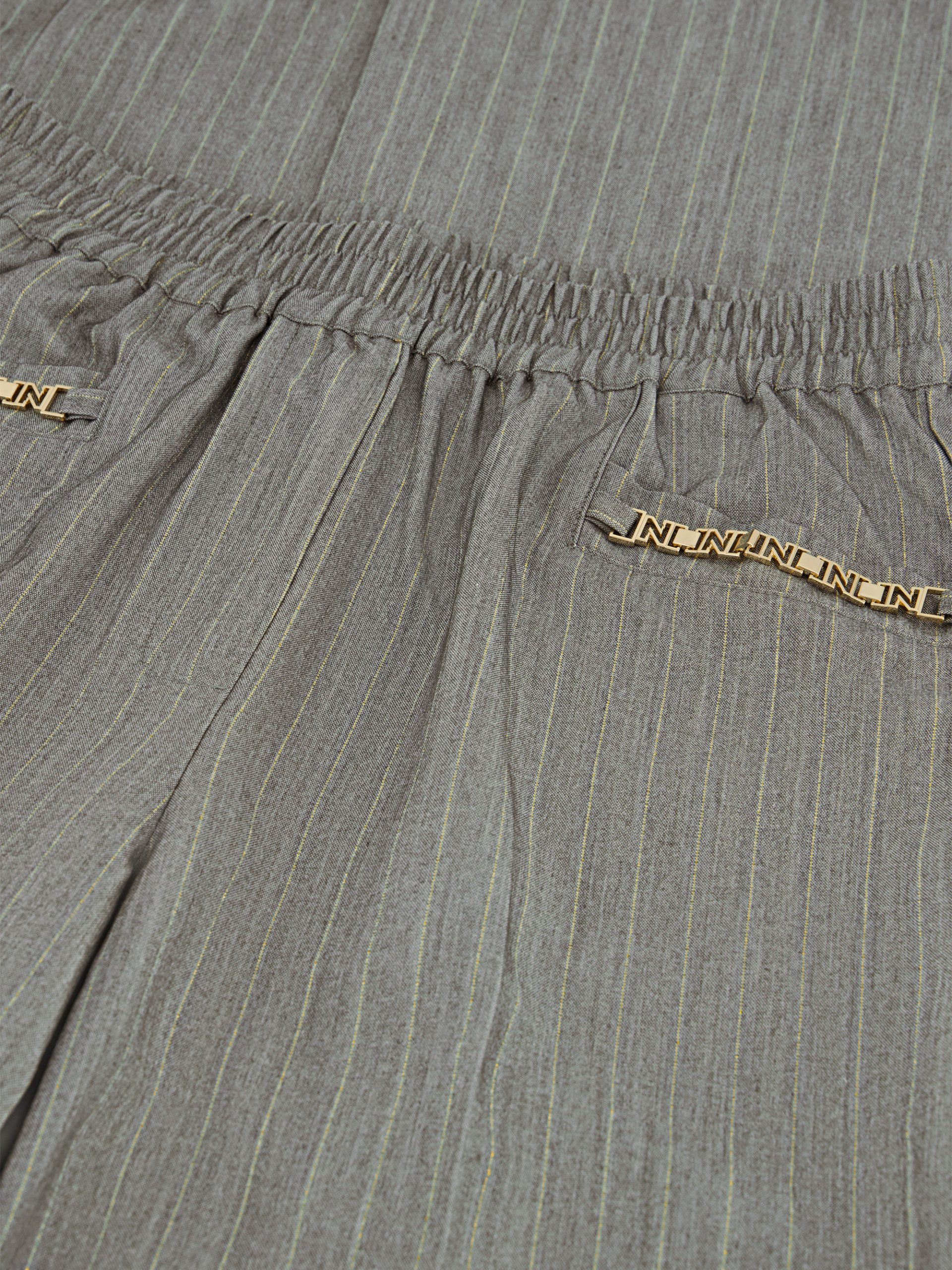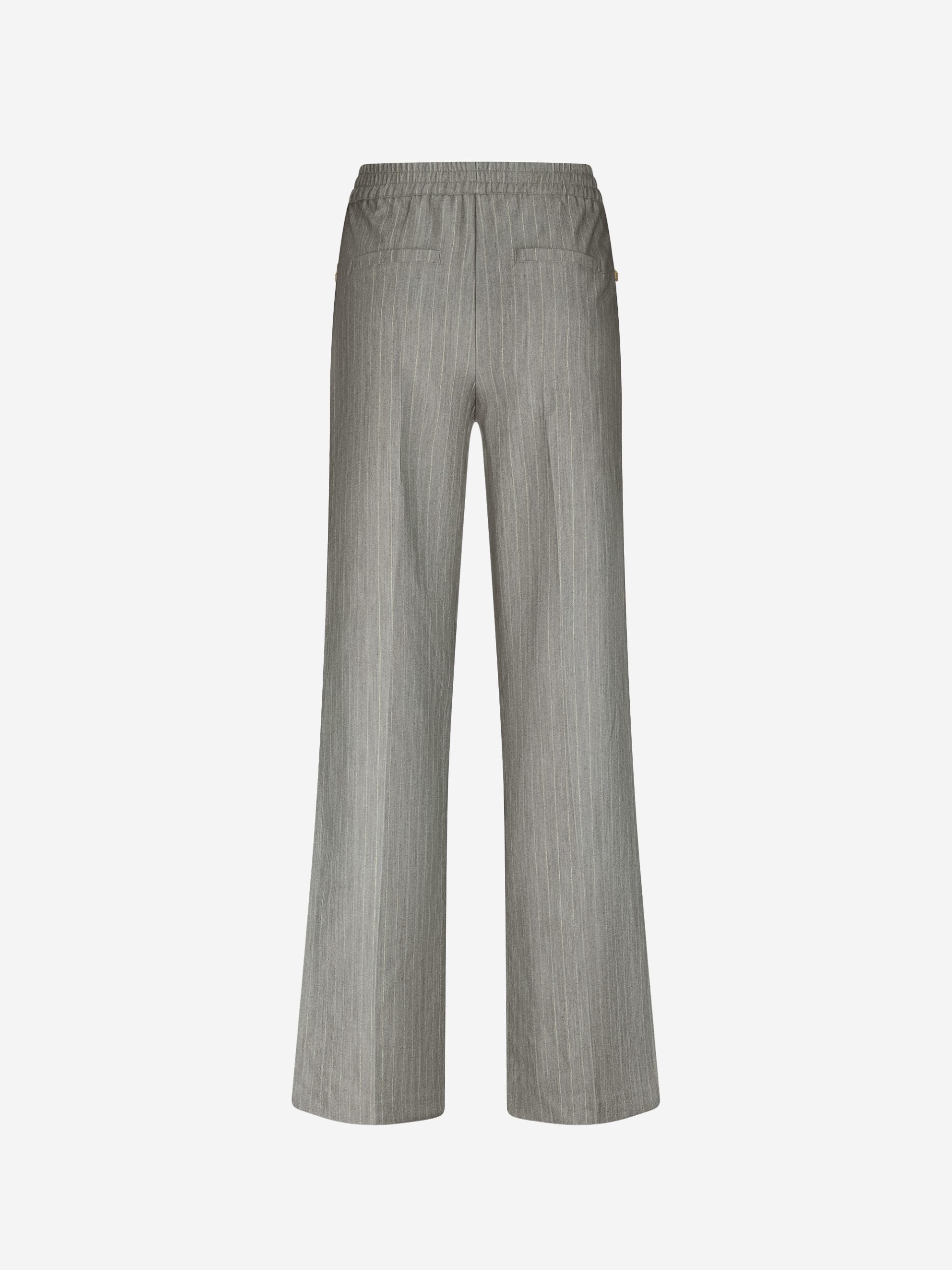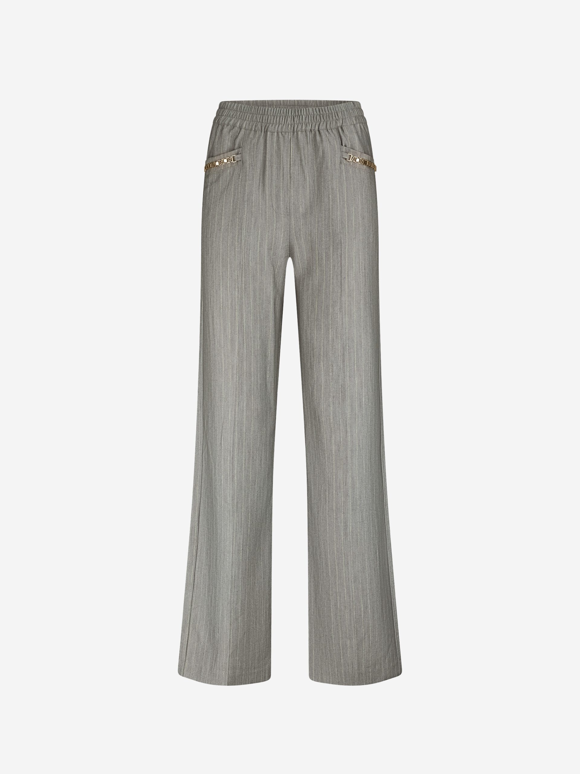 Product descriptionStriped trousers with an elastic waistband, chain details and pockets. The trousers have a high waist and straight legs.