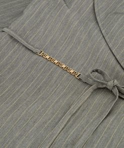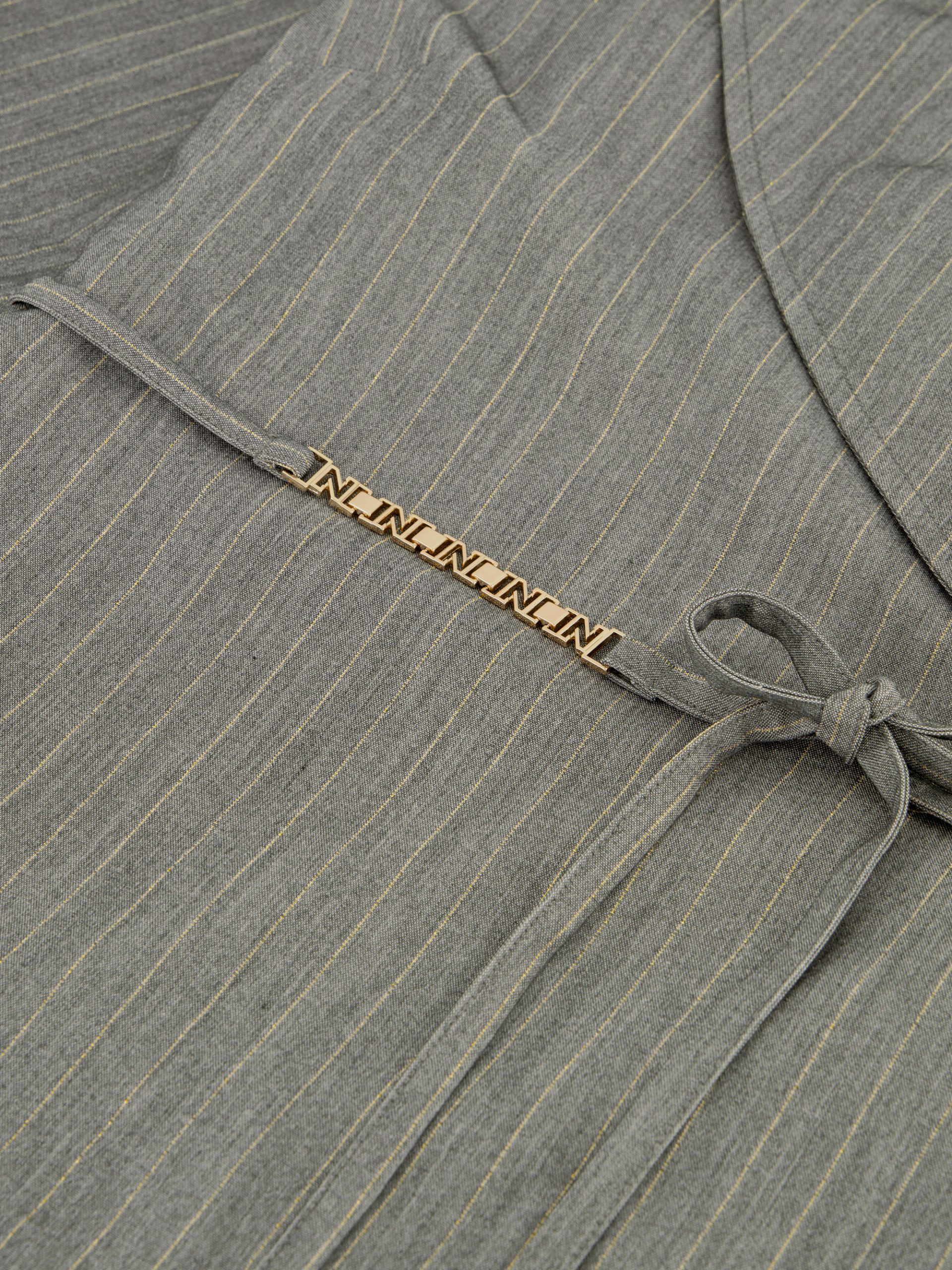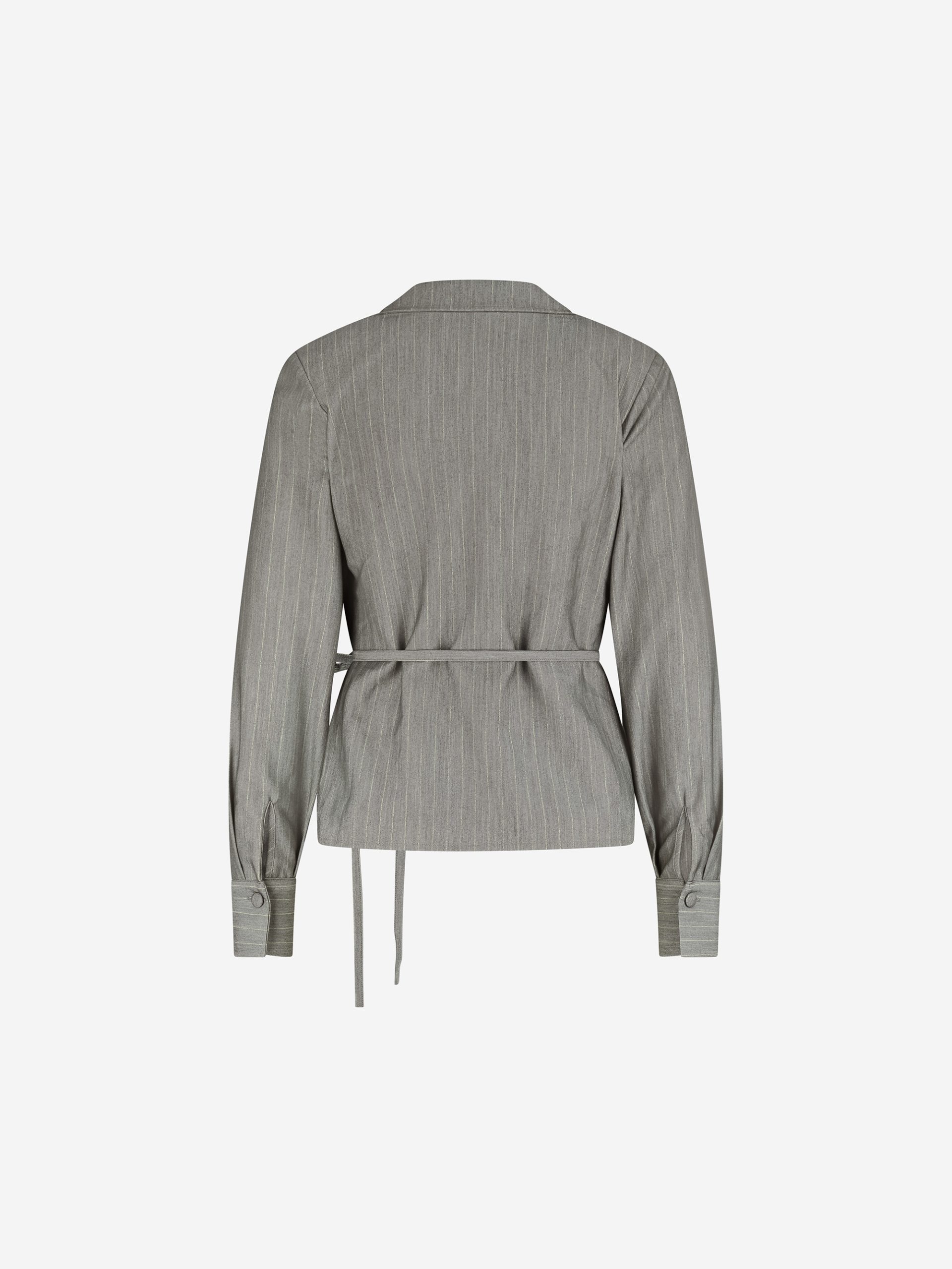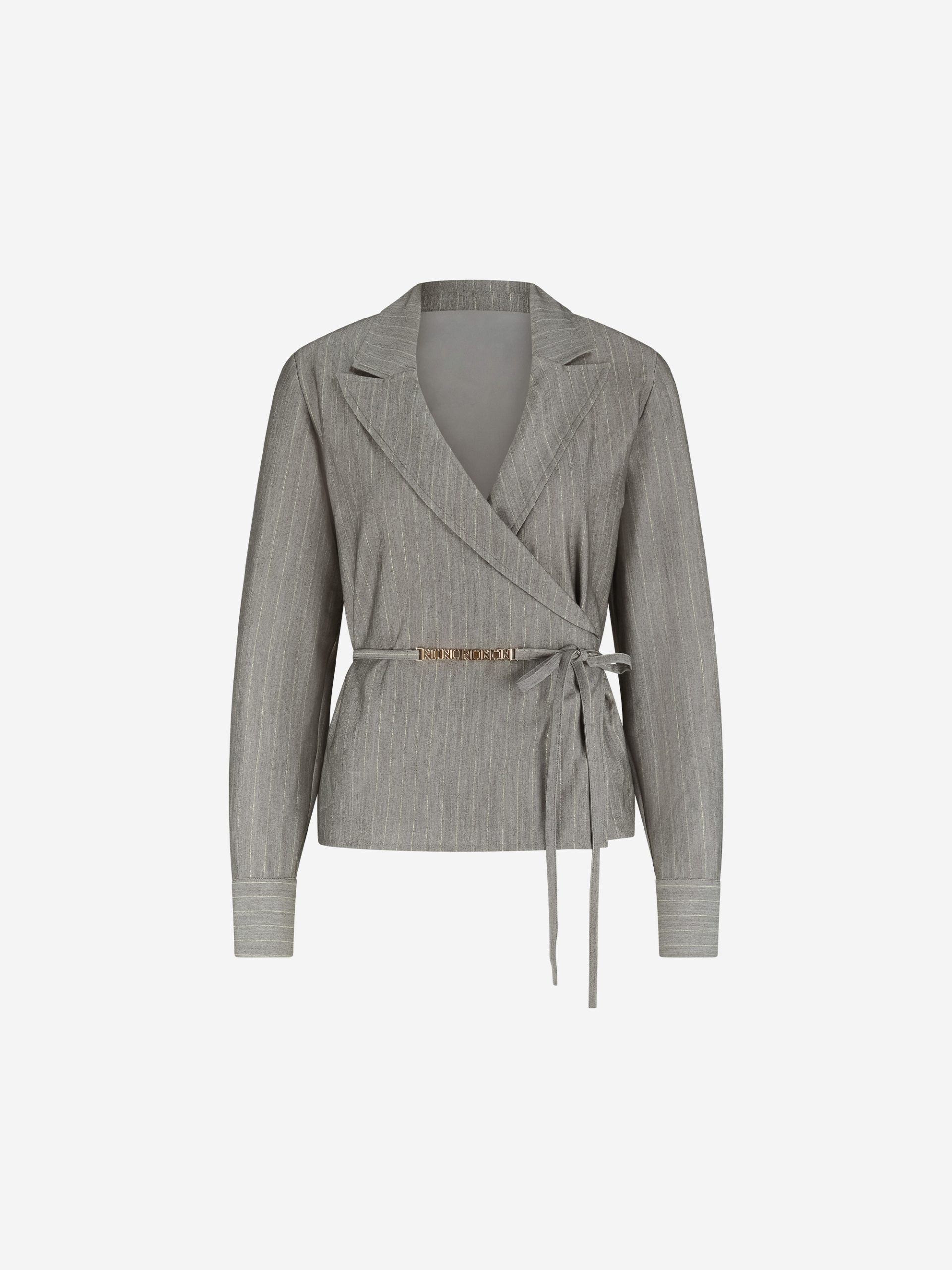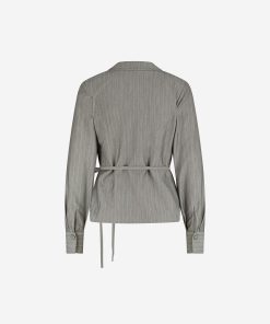 Product descriptionStriped wrap blouse with a belt with chain detail, a collar and a regular fit.