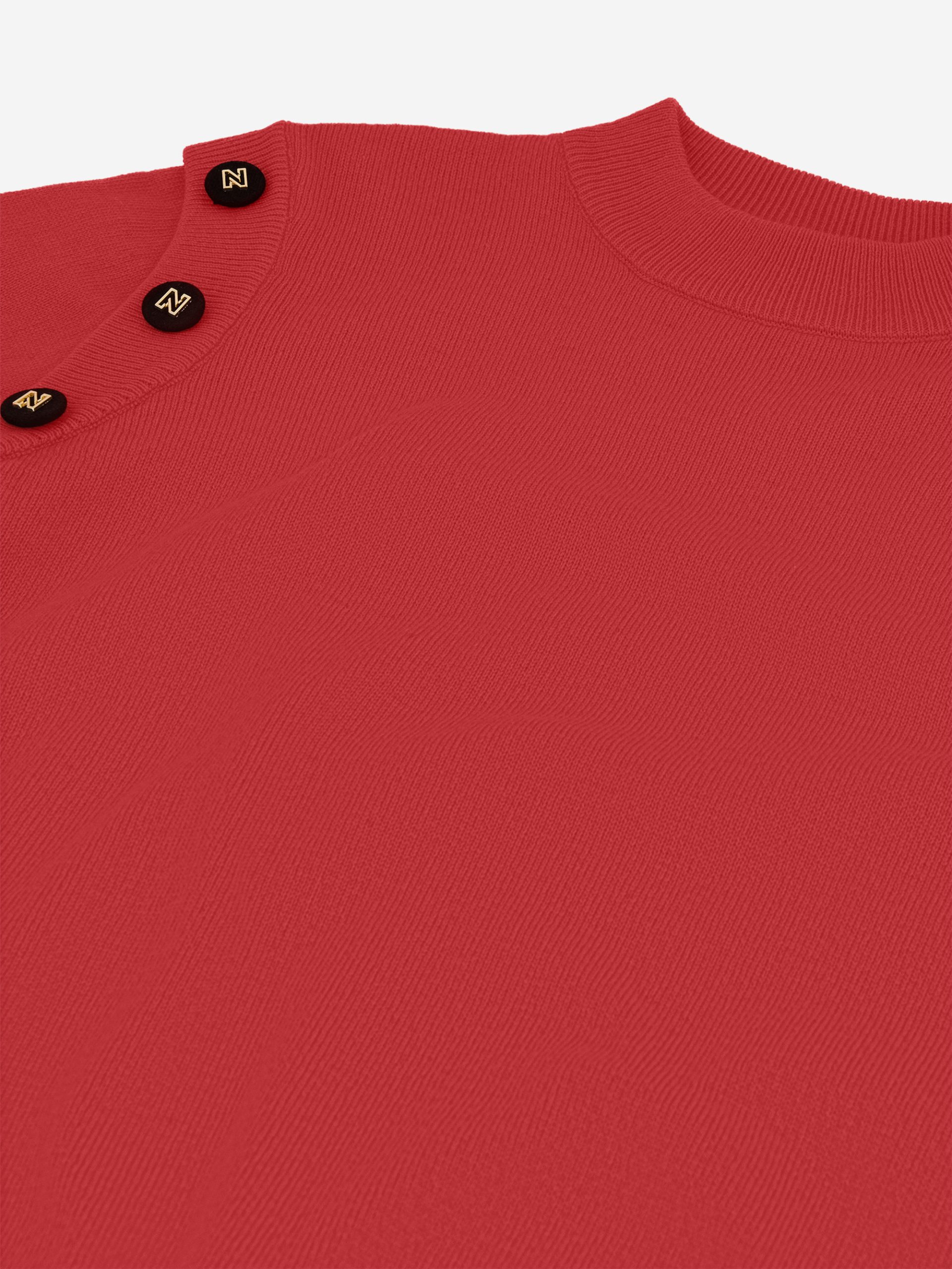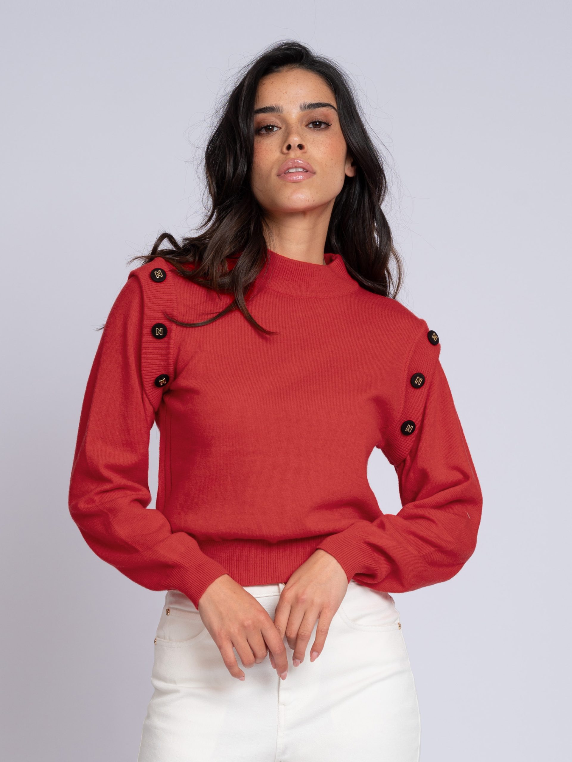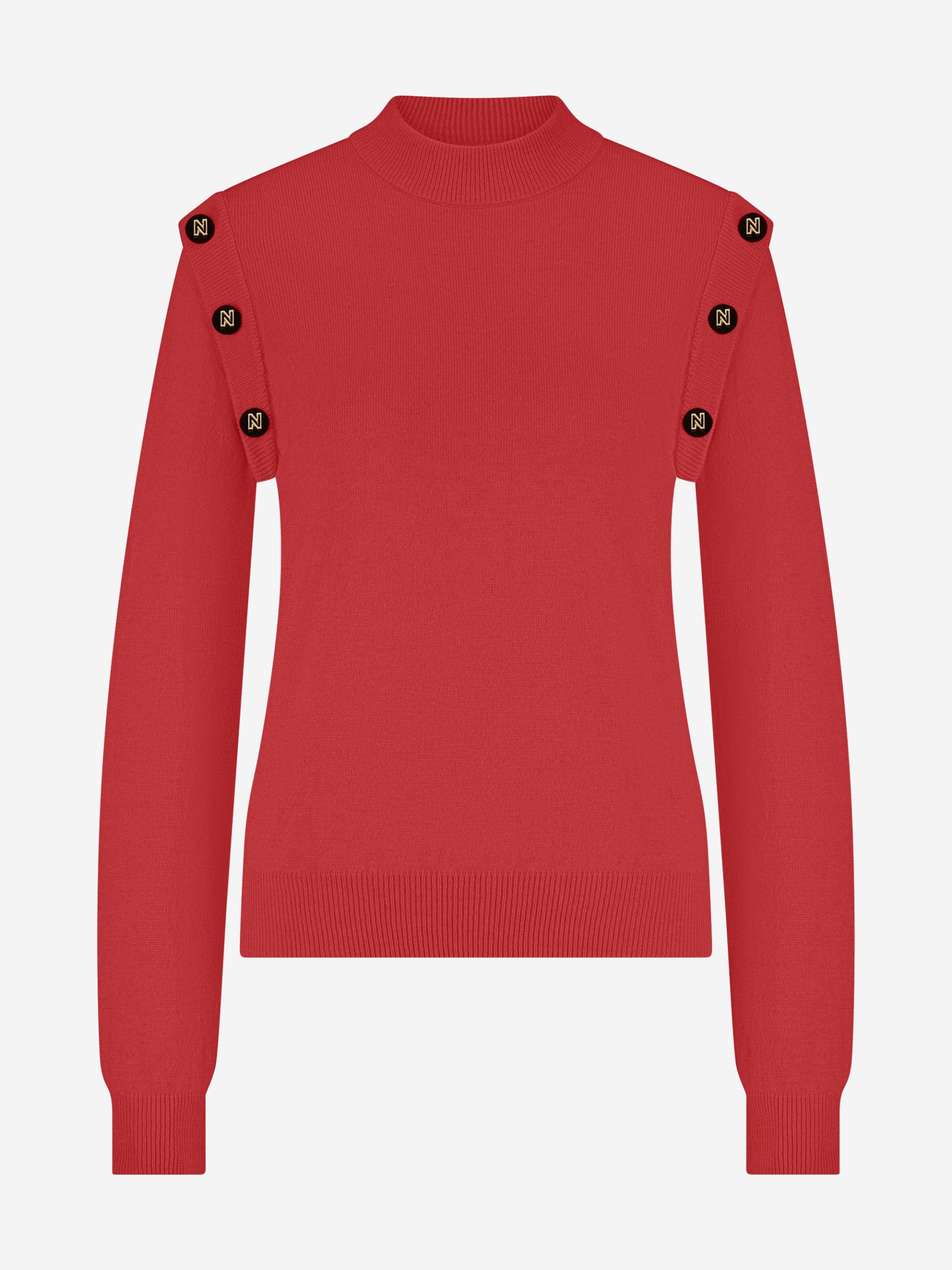 Product descriptionSweater with a round, high neck, decorative N-buttons at the shoulders and a regular fit.