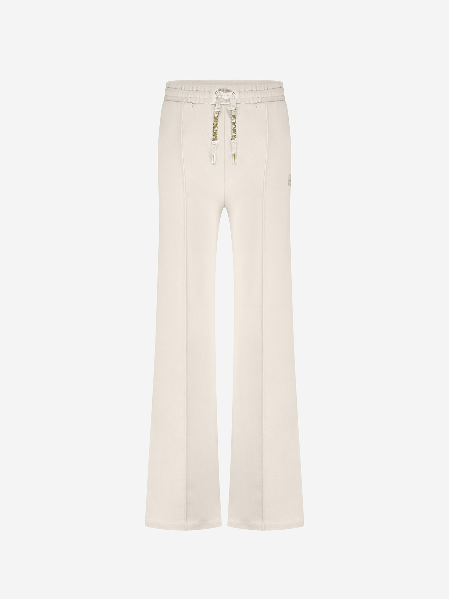 Product descriptionSweatpants with an elastic waistband, a drawstring with chain detailing, and a high waist. The pants feature an embroidered logo and pockets.