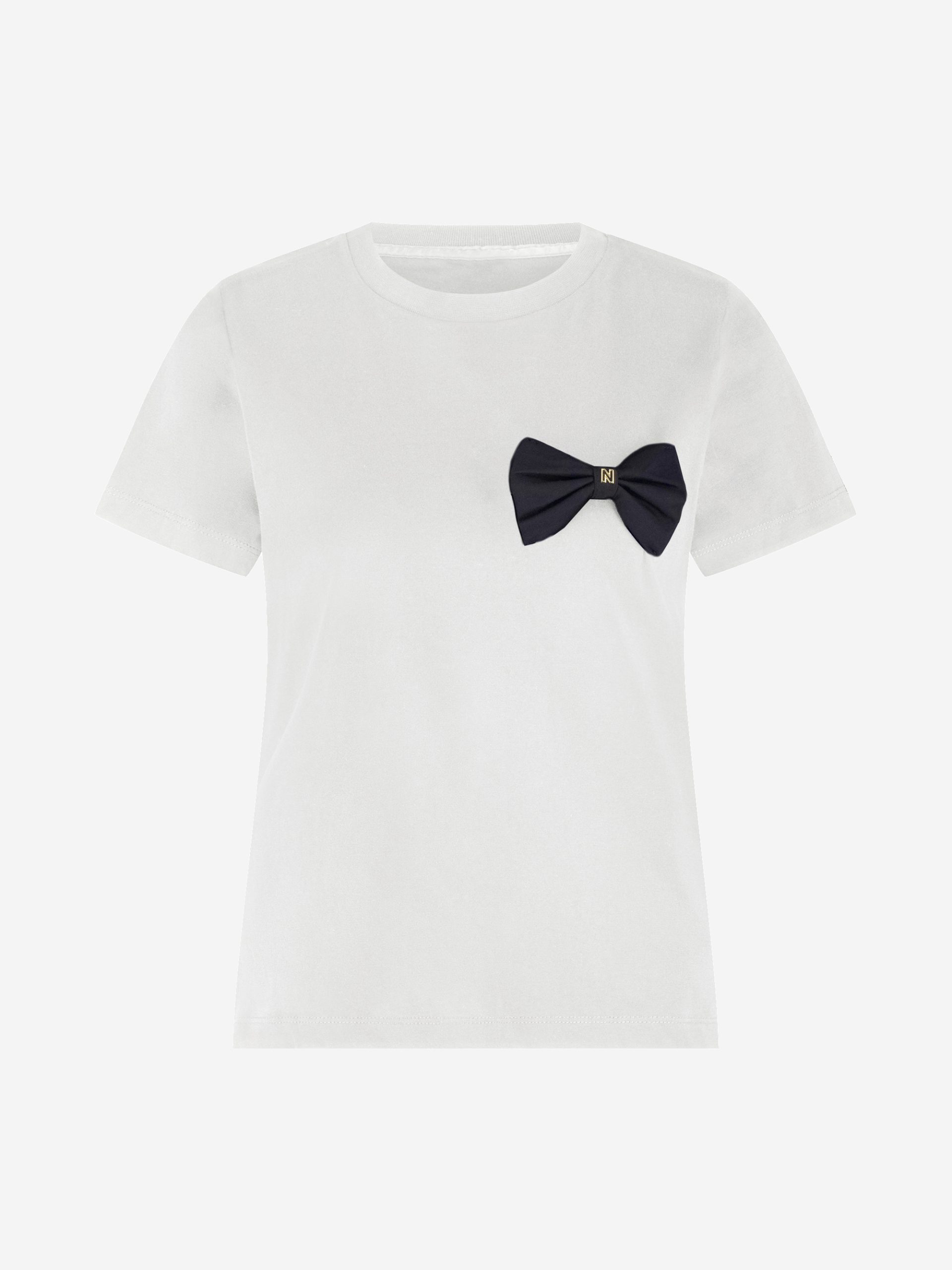 Product descriptionBasic T-shirt with a round neck and a decorative bow with a subtle N logo.