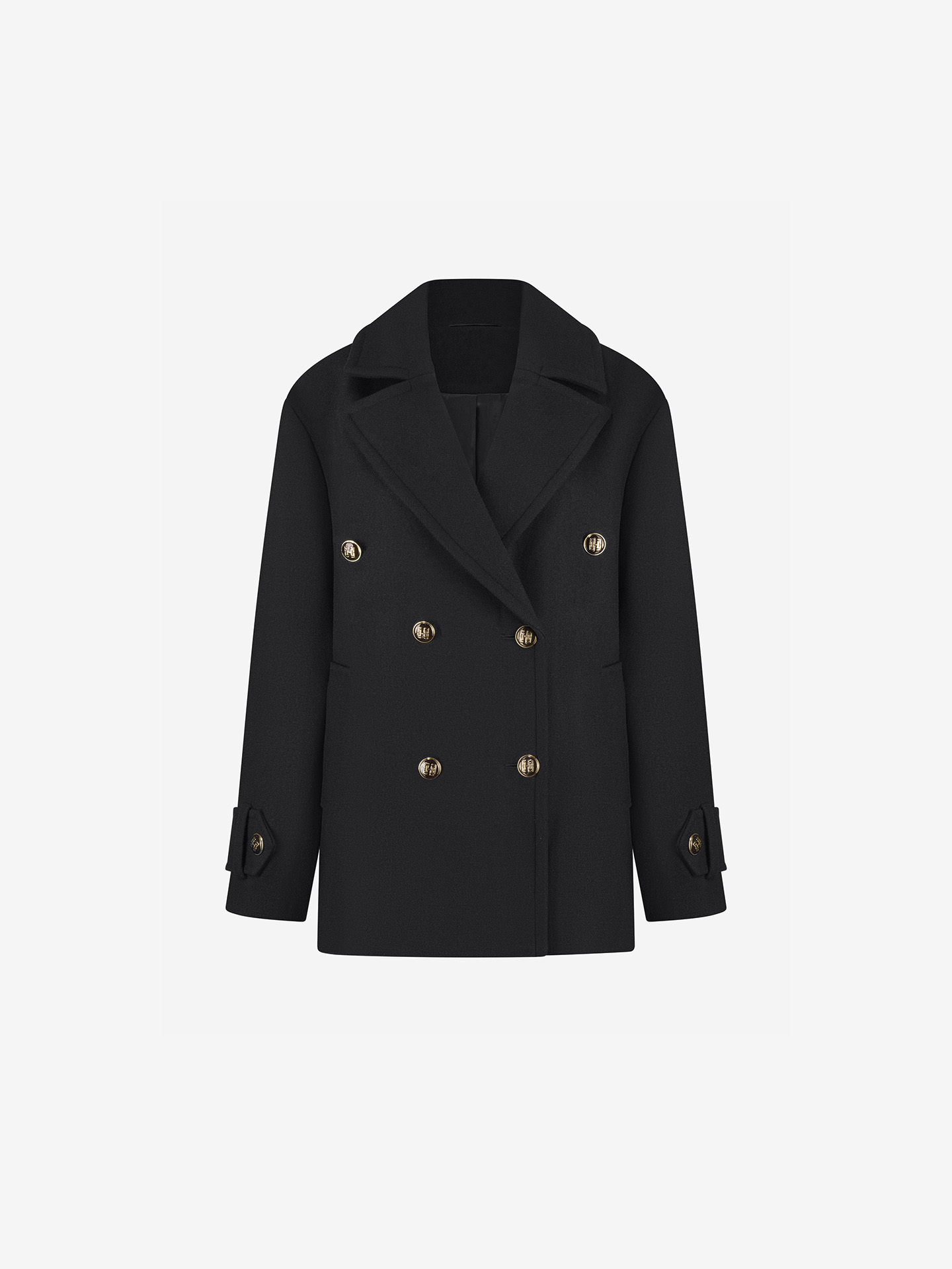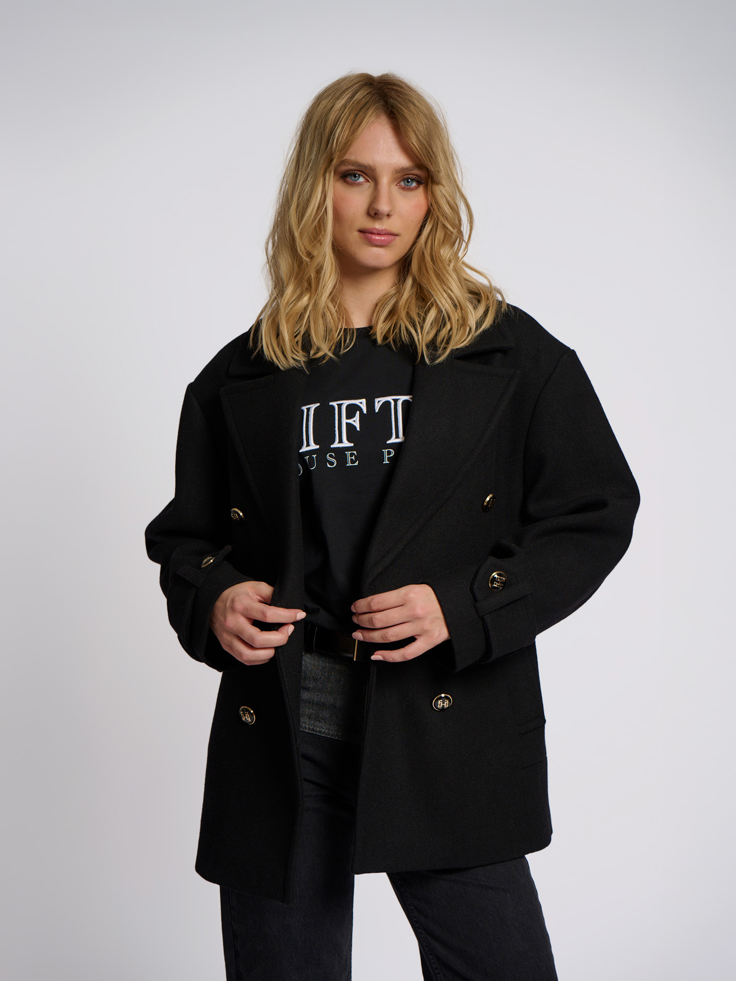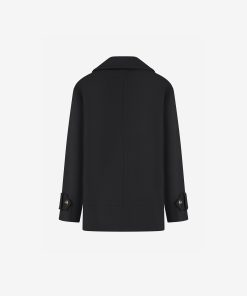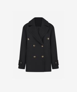 Product descriptionLoose-fitting wool blend coat with a double-breasted button closure, a collar, and pockets.