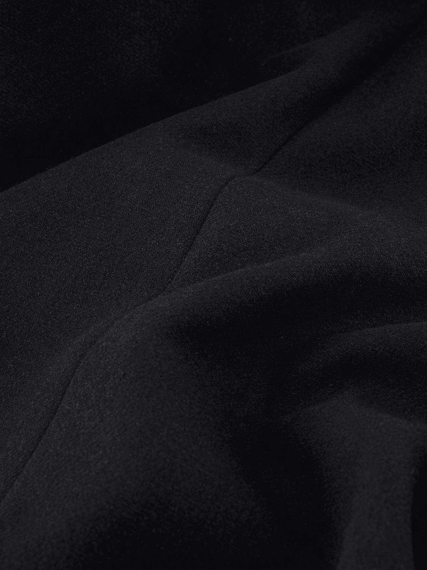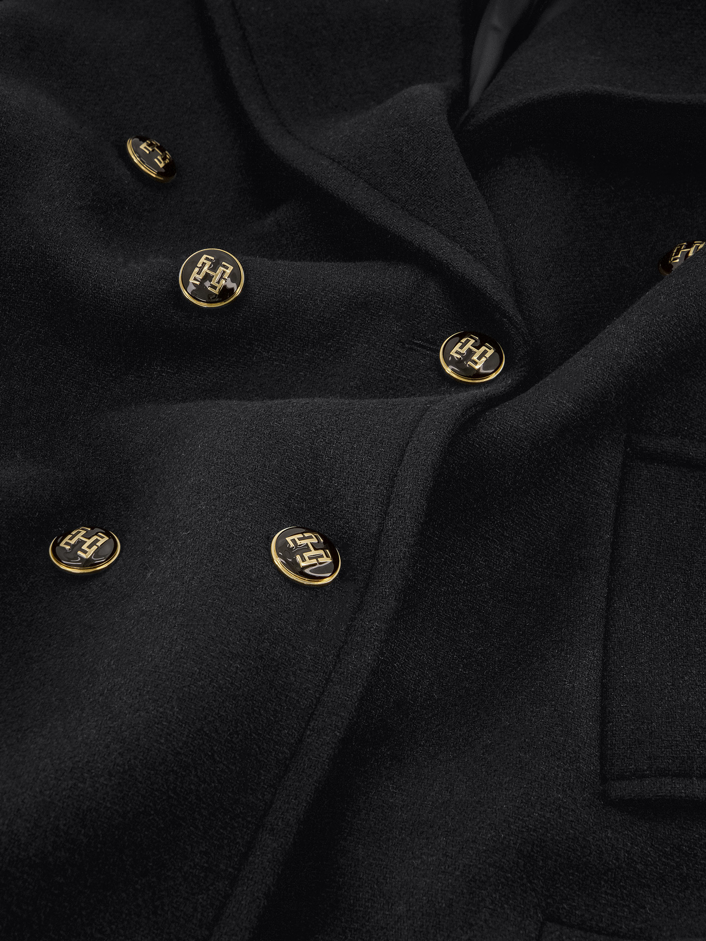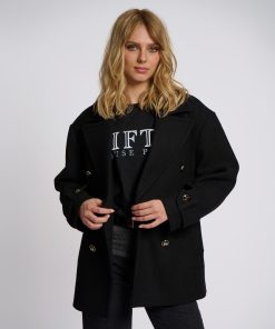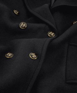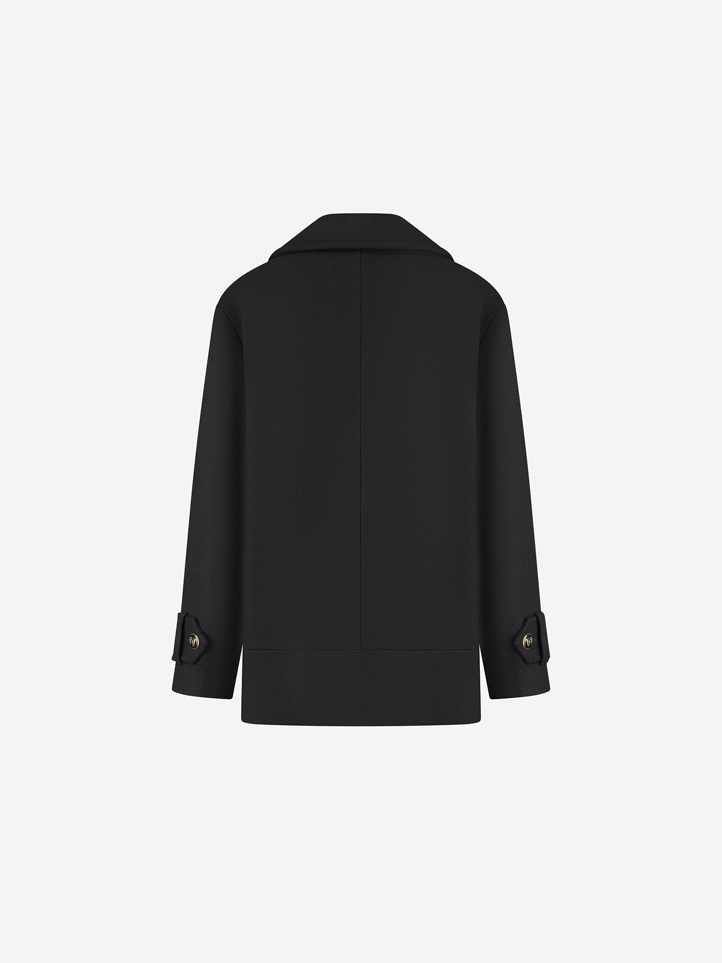Product descriptionLoose-fitting wool blend coat with a double-breasted button closure, a collar, and pockets.