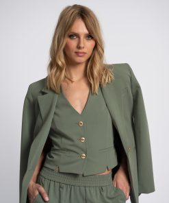 NIKKIE Women’s Waistcoat With Adjustable Waistband | Ash Green